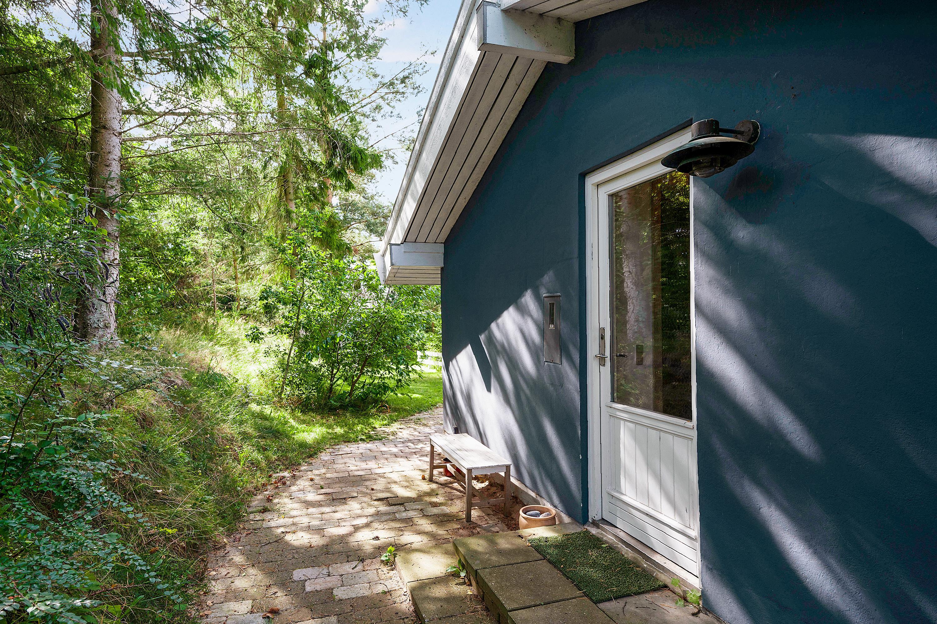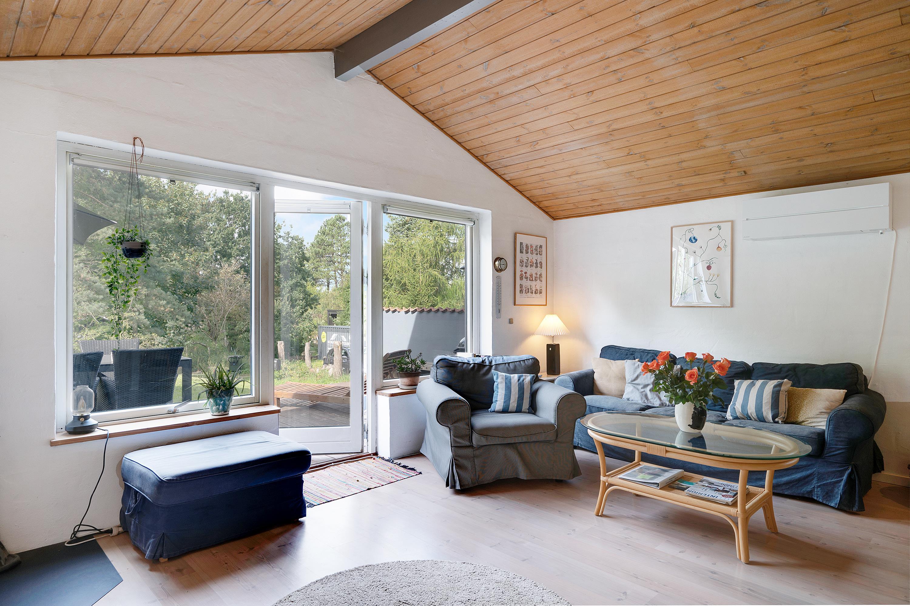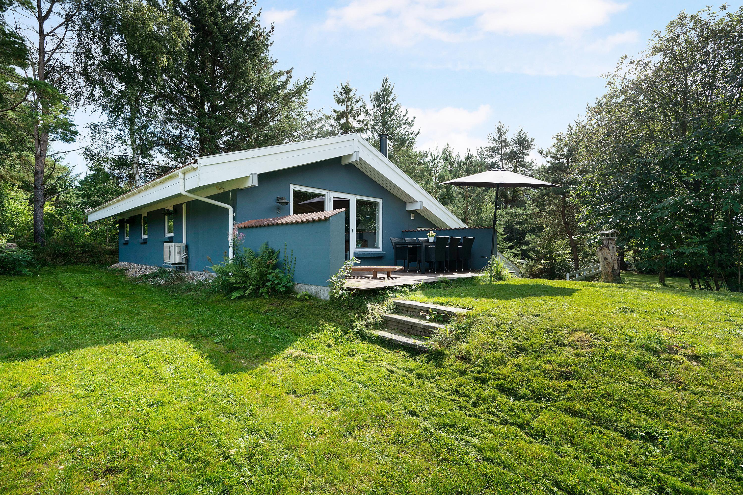 Hyggeligt feriehus i Handrup Bakker med to badeværelser, terrasse og nær børnevenlig strand i naturskønne omgivelser.