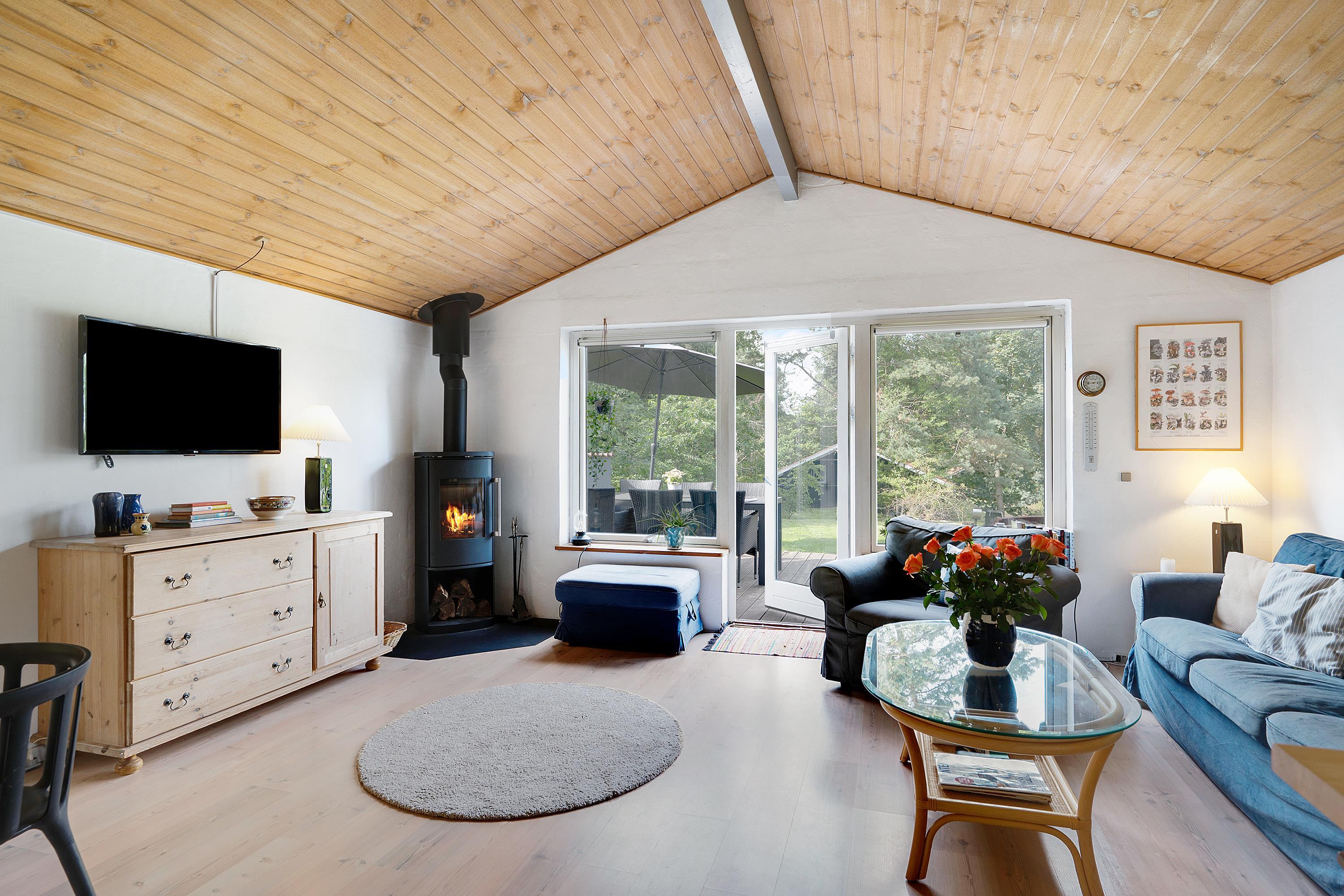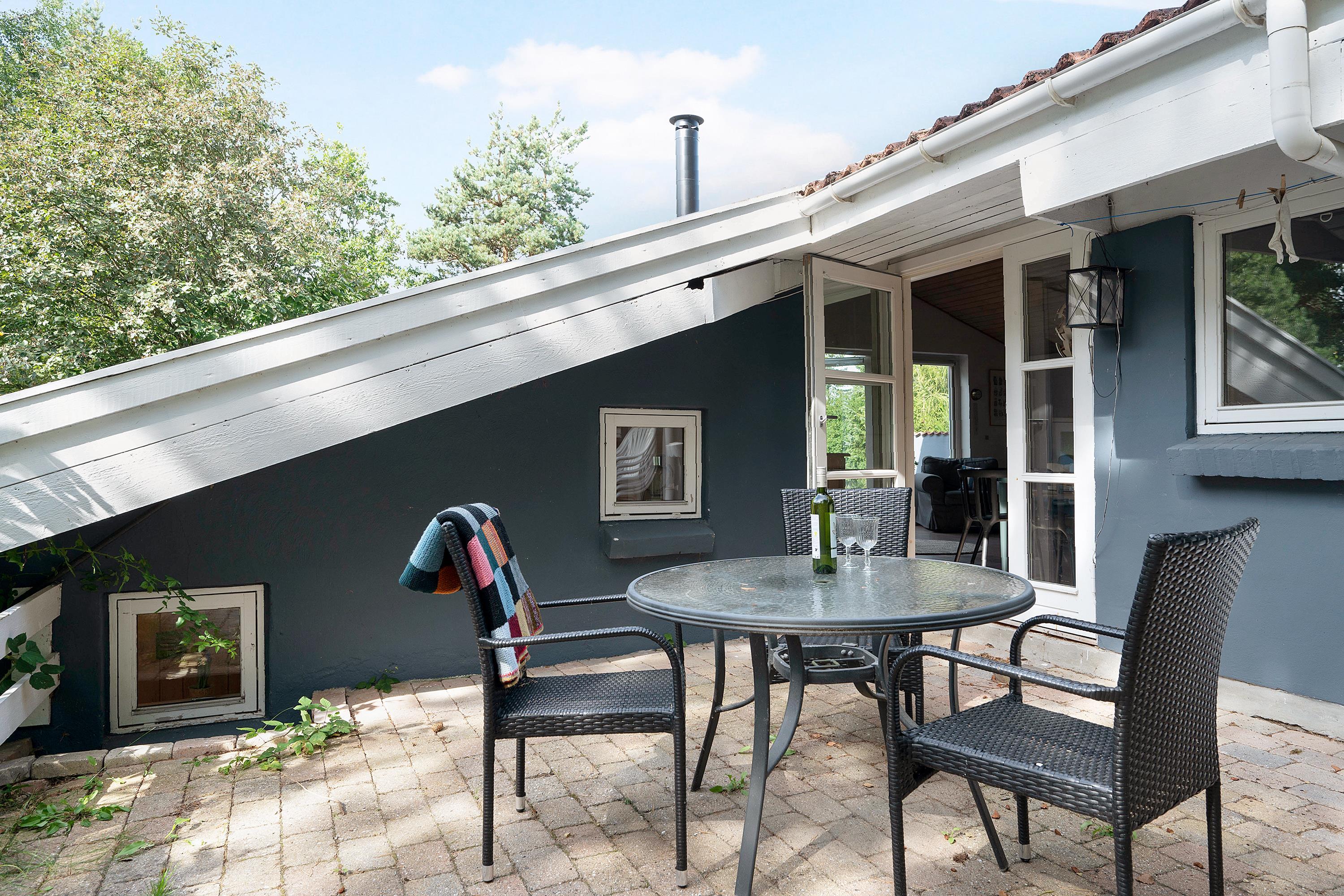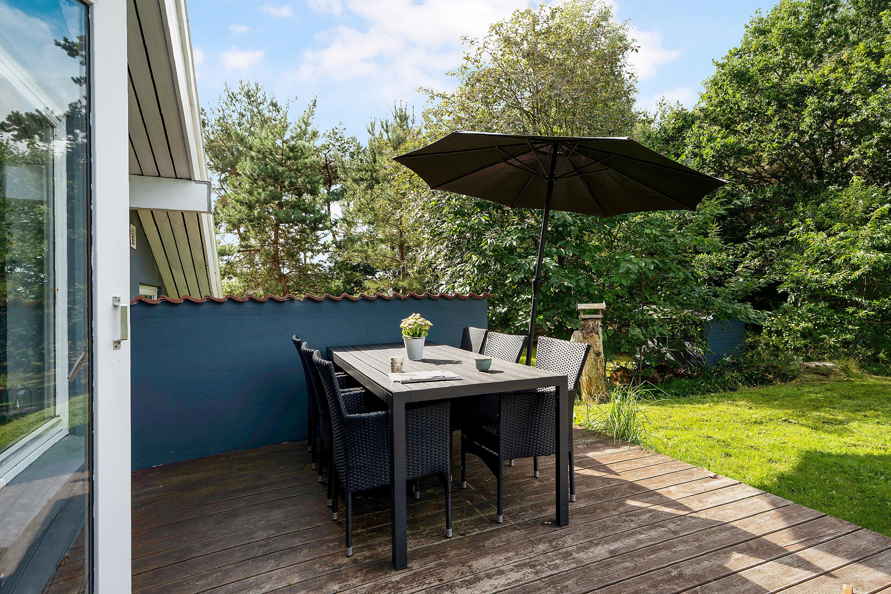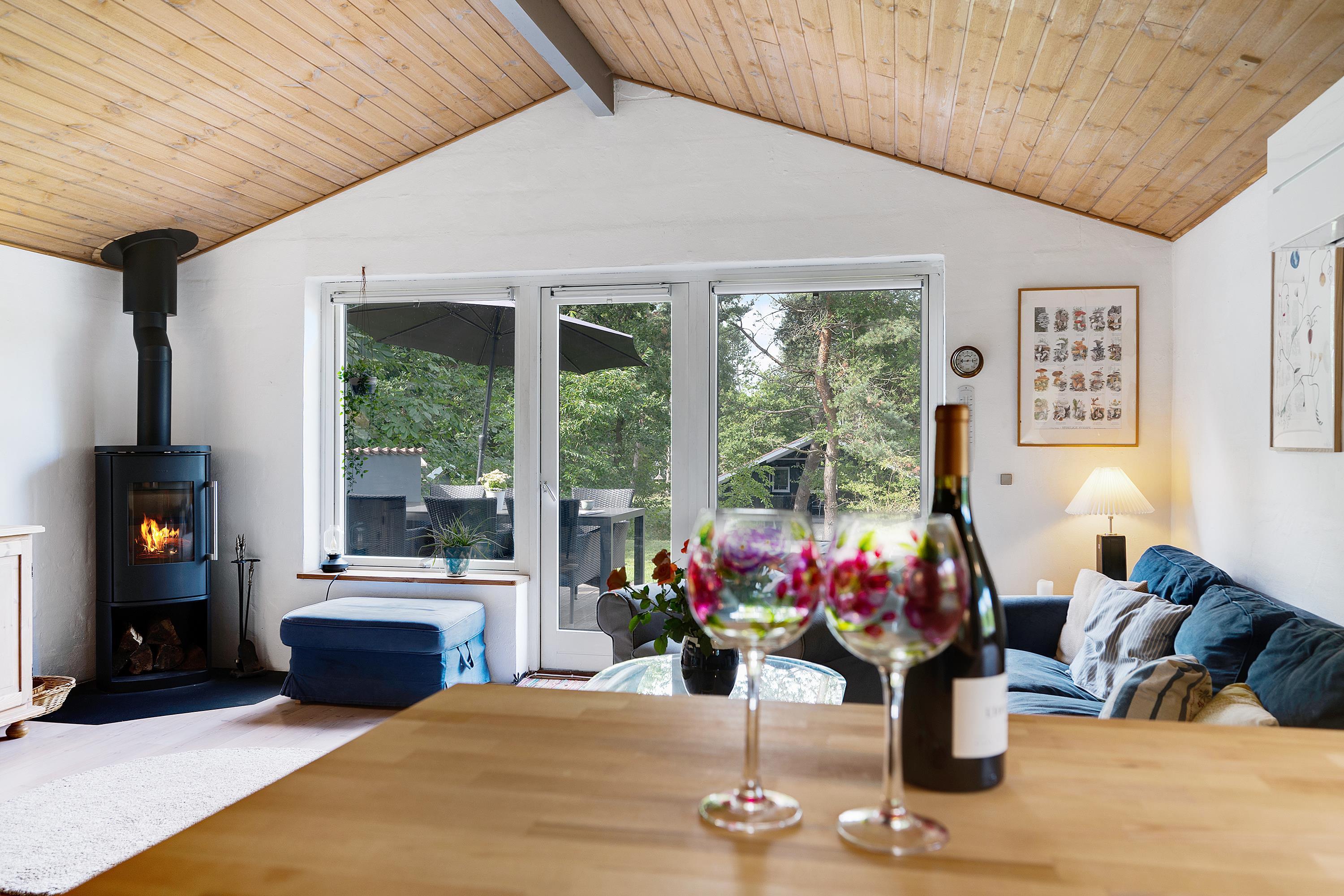 Hyggeligt feriehus i Handrup Bakker med to badeværelser, terrasse og nær børnevenlig strand i naturskønne omgivelser.