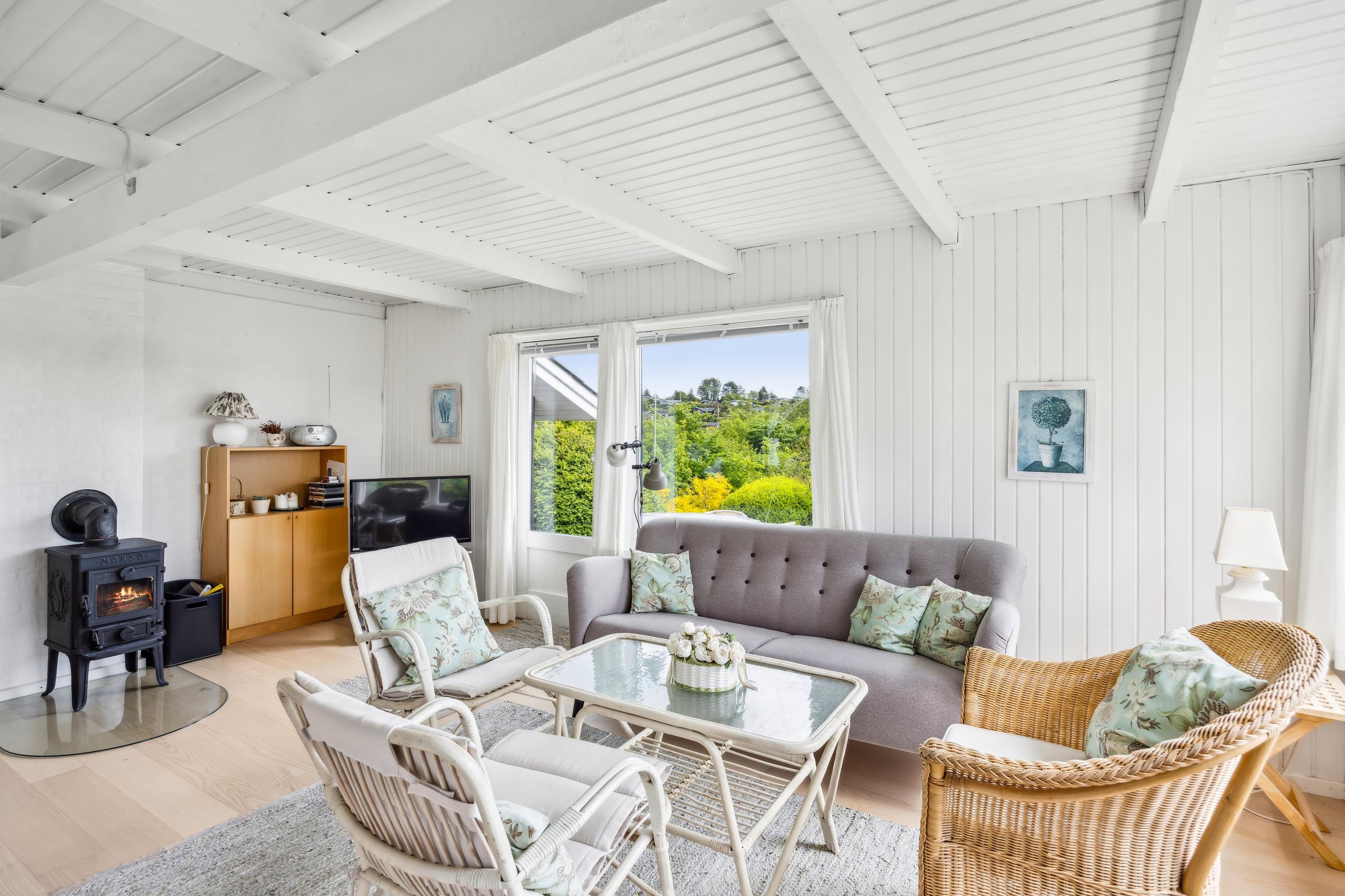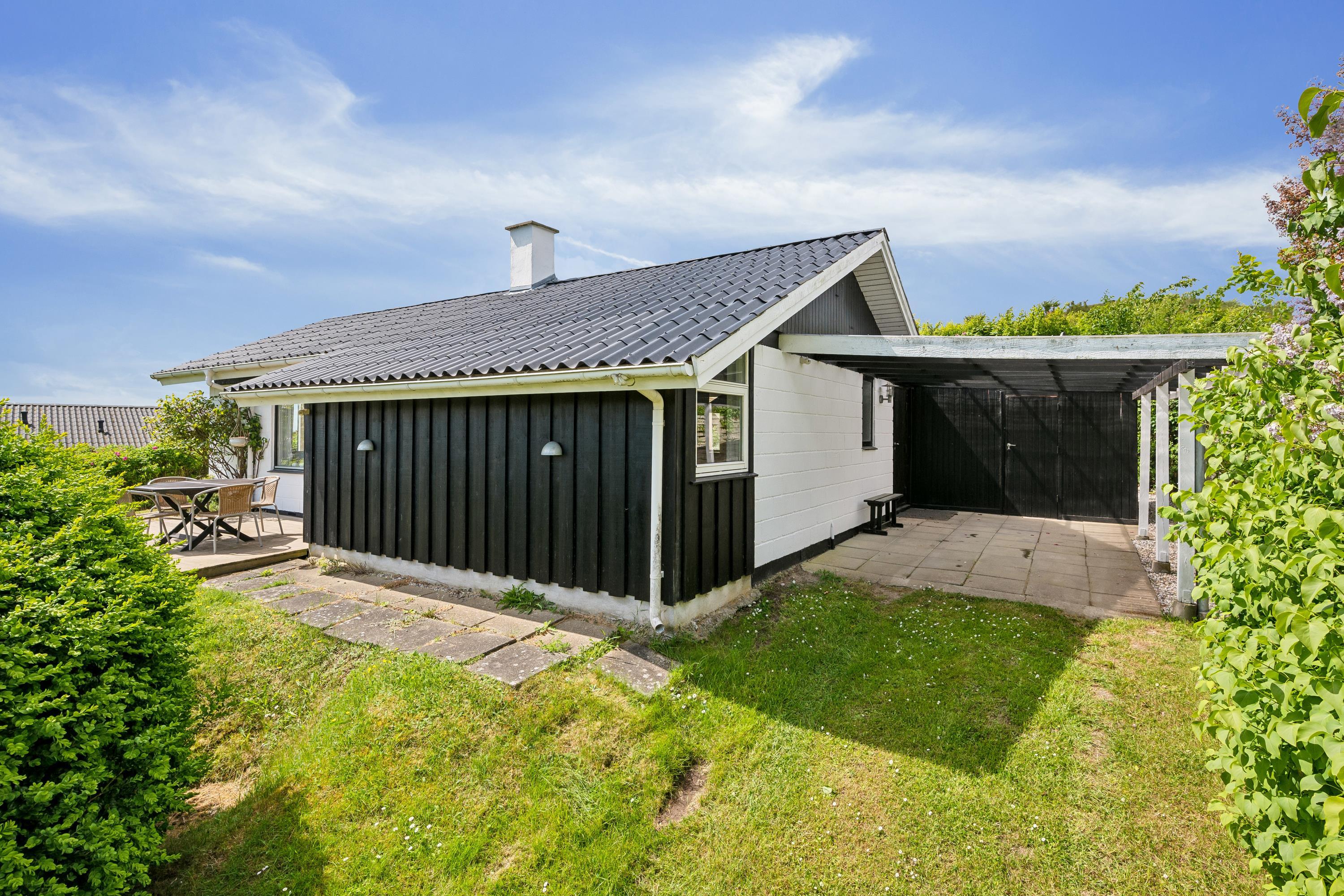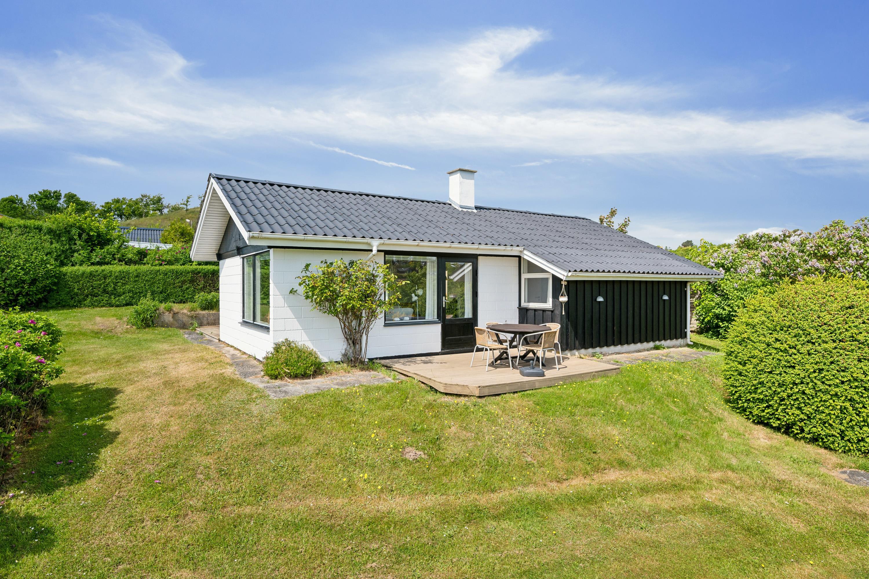 Ikke langt fra Ebeltoft finder man dette ældre, men velholdte hus. Huset er beliggende på en stor og velplejet grund, hvorfra der er kig til vandet. Her finder man en lys stue med brændeovn og med udgang til en dejlig terrasse med havemøbler og grill. Mindre men velfungerende køkkenafdeling med b.la.opvaskemaskine og mikrobølgeovn. Husets sovepladser fordeler sig i to hyggelige værelser, begge med to enkeltsenge. Derudover er der en god udestue med spiseplads. Badeværelse med bruseniche og gulvvarme. Internet kan lejes på vores kontor.