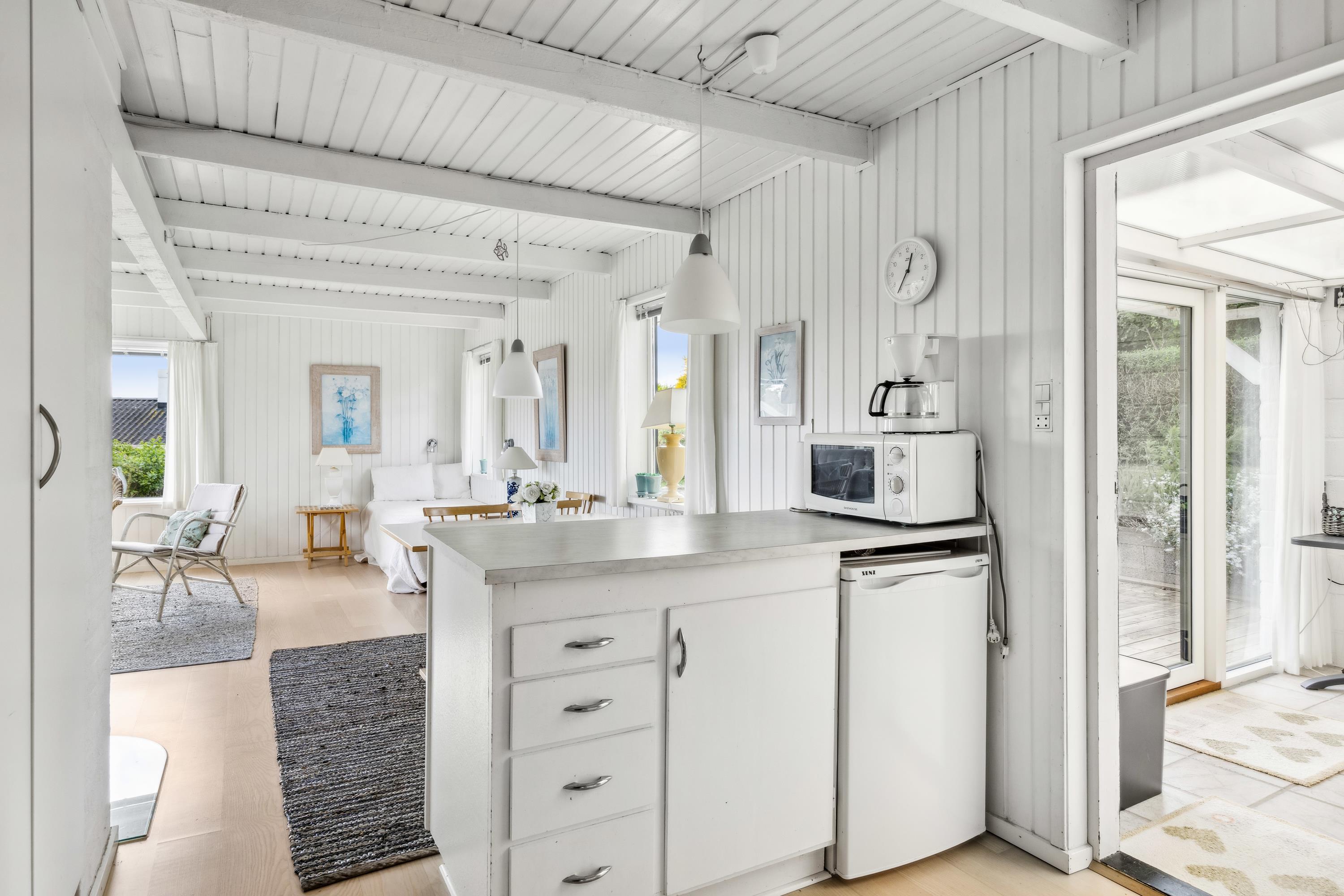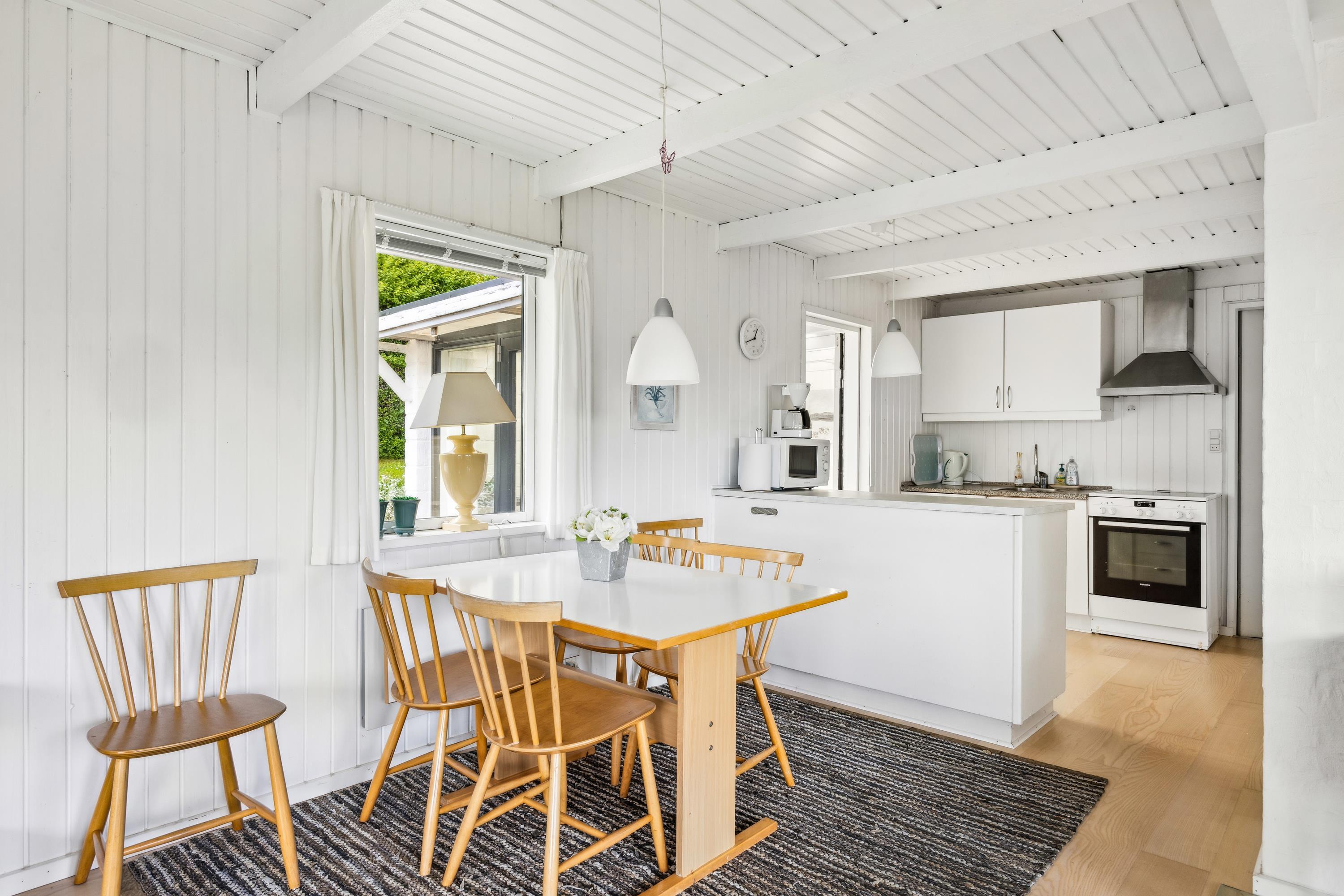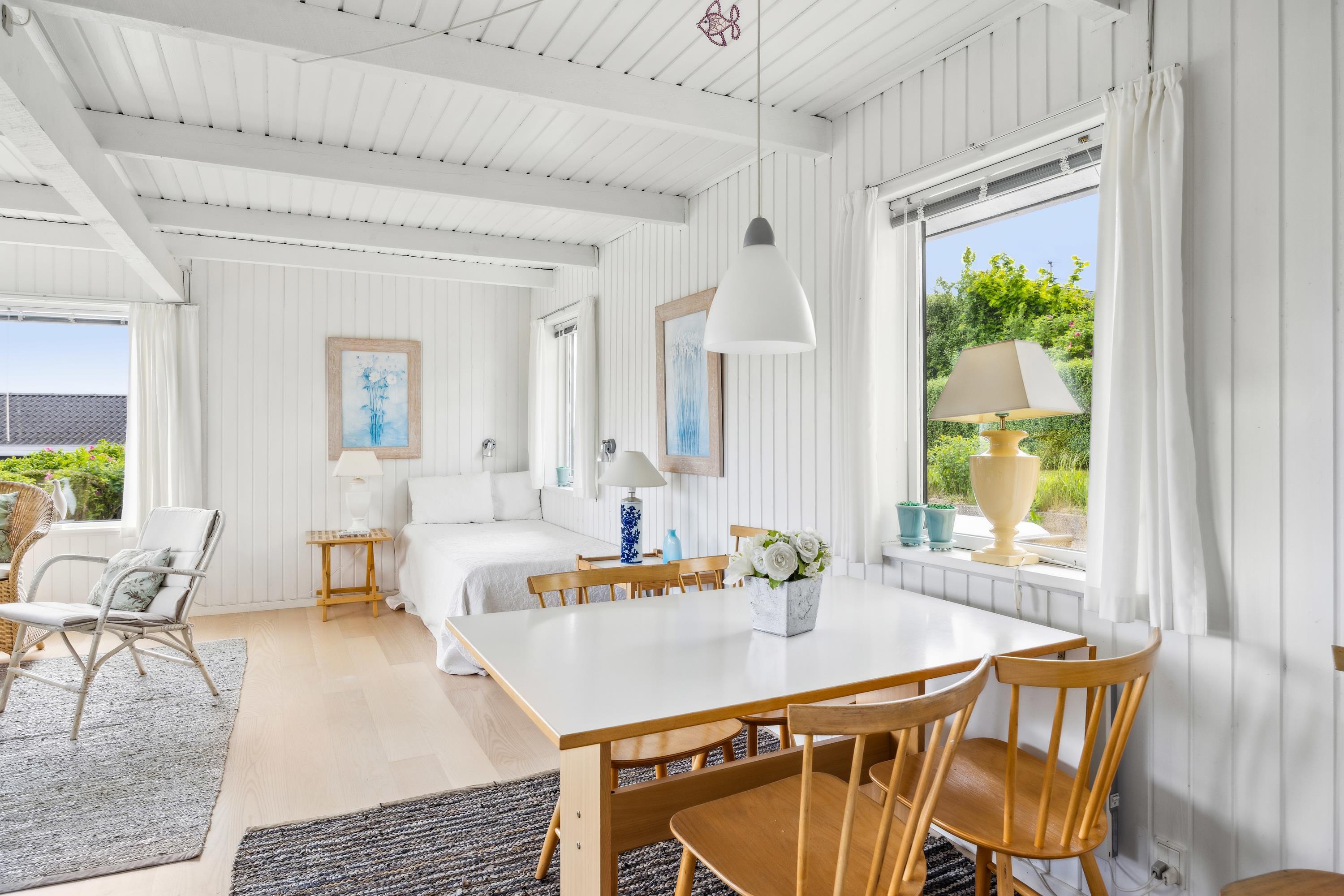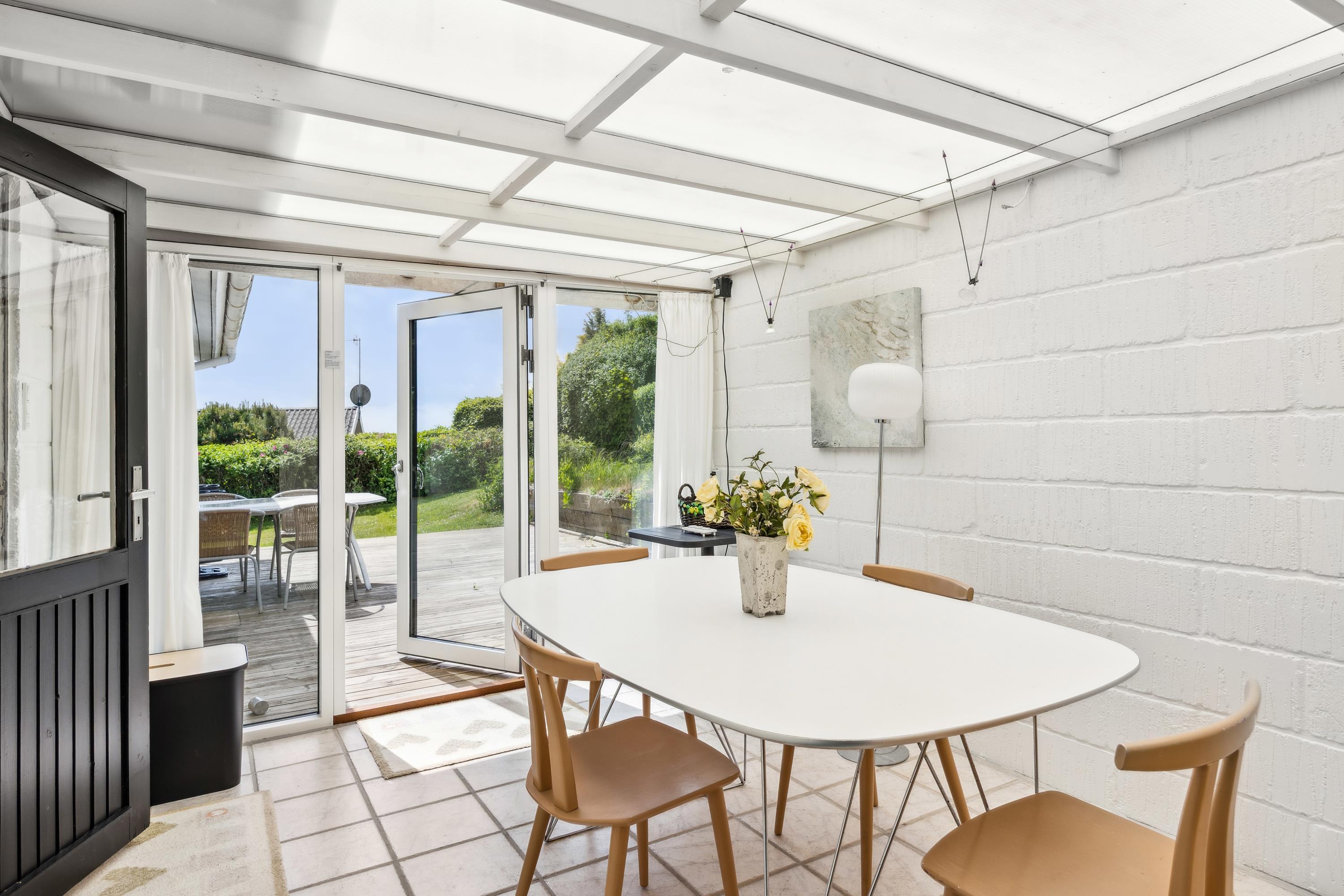 Ikke langt fra Ebeltoft finder man dette ældre, men velholdte hus. Huset er beliggende på en stor og velplejet grund, hvorfra der er kig til vandet. Her finder man en lys stue med brændeovn og med udgang til en dejlig terrasse med havemøbler og grill. Mindre men velfungerende køkkenafdeling med b.la.opvaskemaskine og mikrobølgeovn. Husets sovepladser fordeler sig i to hyggelige værelser, begge med to enkeltsenge. Derudover er der en god udestue med spiseplads. Badeværelse med bruseniche og gulvvarme. Internet kan lejes på vores kontor.