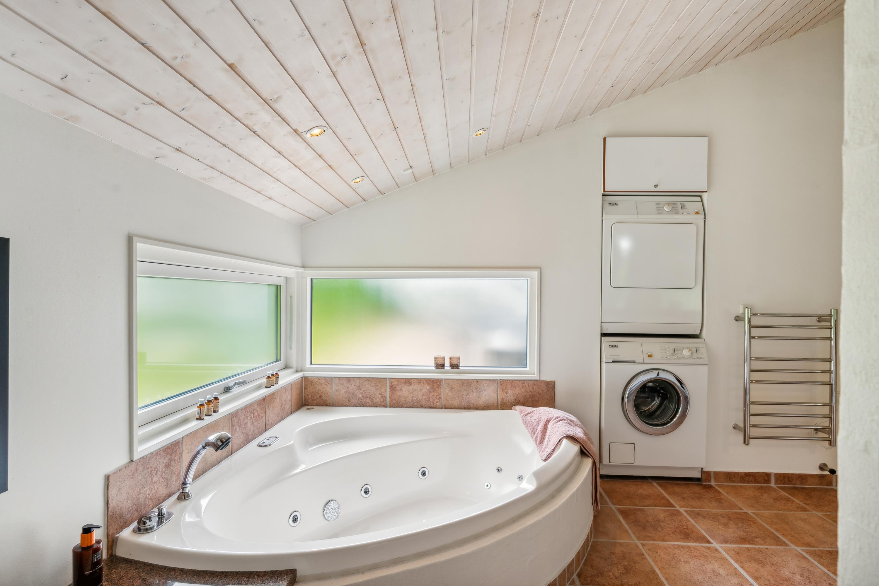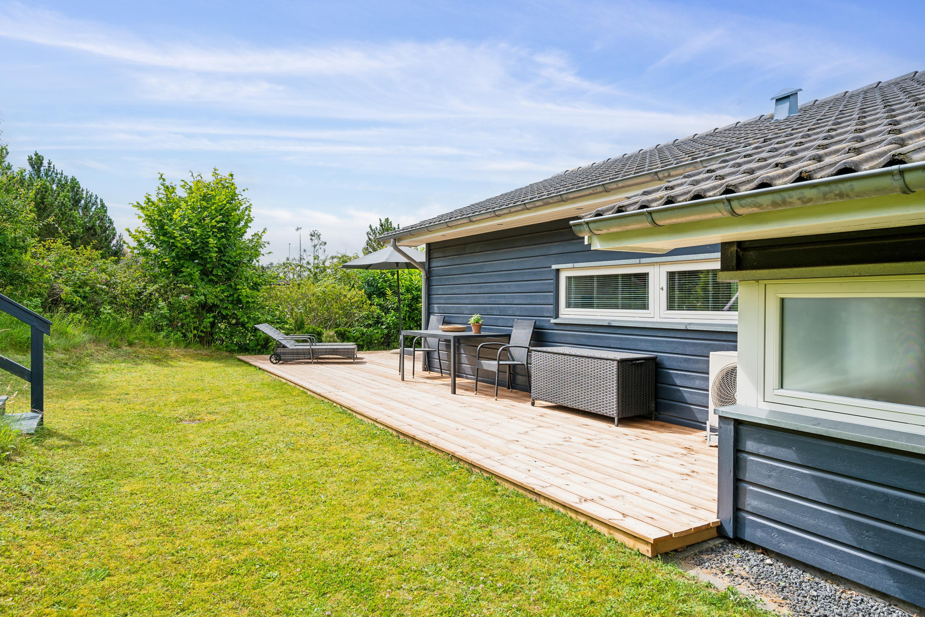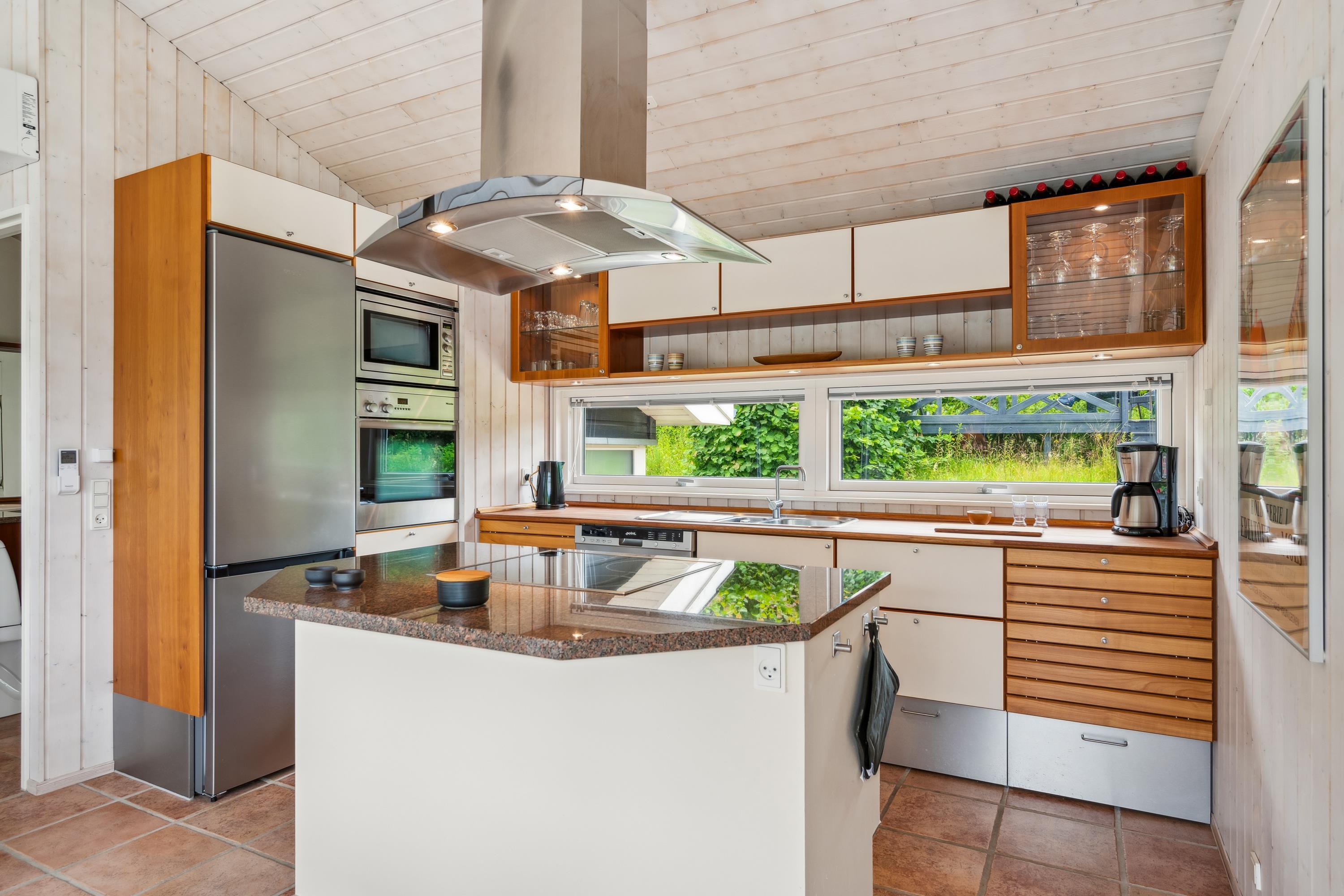 Højt beliggende med en fantastisk smuk udsigt over området, finder man dette flotte og velholdte feriehus. Her finder man en lys og hyggelig stue, smagfuld indrettet med gode møbler, varmepumpe og brændeovn, samt en skøn spiseafdeling med udgang til overdækket terrasse. I forbindelse med spiseafdelingen finder man det flotte køkken med b.la. opvaskemaskine og køkkenø. Stort flot badeværelse med spa-bad, bruseniche og gulvvarme, samt adgang til både vaskemaskine og tørretumbler. Der findes endnu et badeværelse med bruseniche og gulvvarme. Husets sovepladser fordeler sig i tre flotte værelser med dobbeltsenge. Der er masser af terrasseareal, havemøbler, liggestole og grill. TV foregår via chromecast og der kan lejes en box med tyske kanaler på vores kontor (hvis lager haves). Der er en Wii spillekonsol til rådighed. Til de små feriegæster er der en høj stol og en barneseng. Er man flere familier afsted så udlejer vi også nabohuset 15828