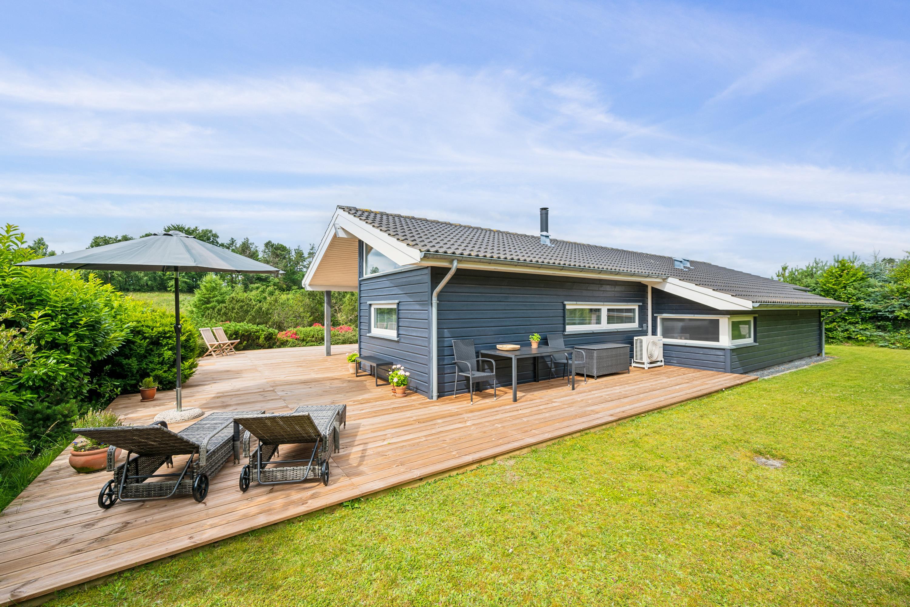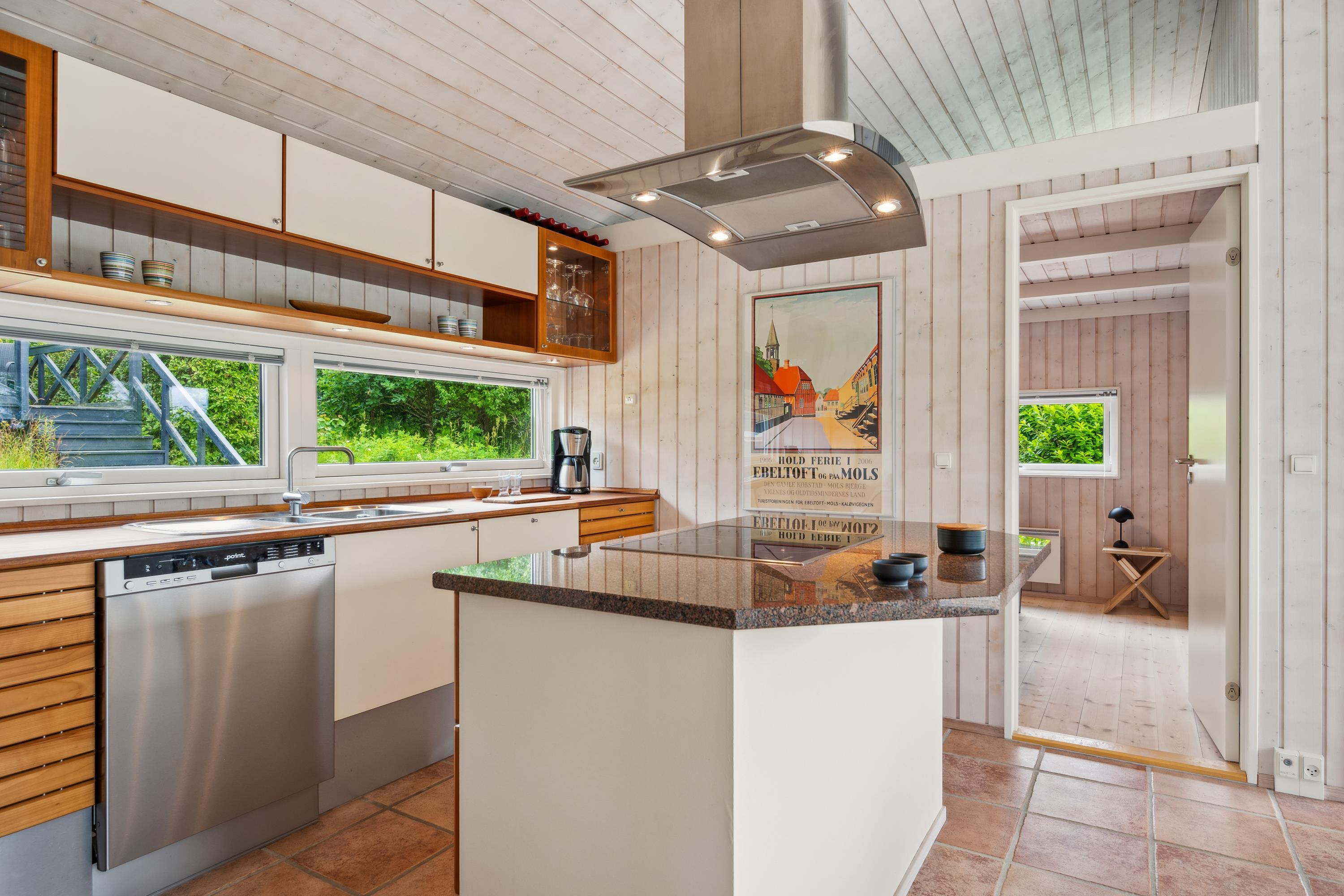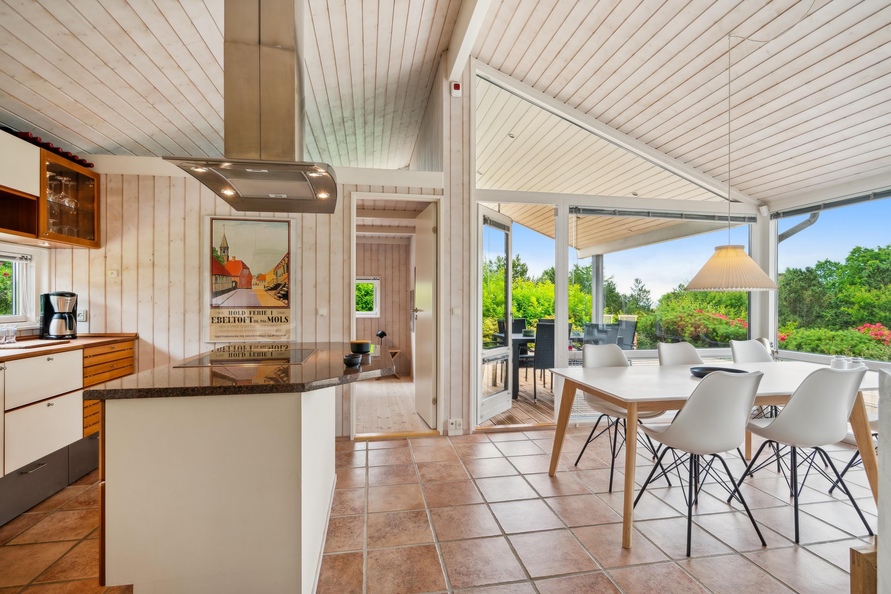 Flot feriehus med smuk udsigt, spa, brændeovn og tæt på Handrup Strand og Mols Bjerge.