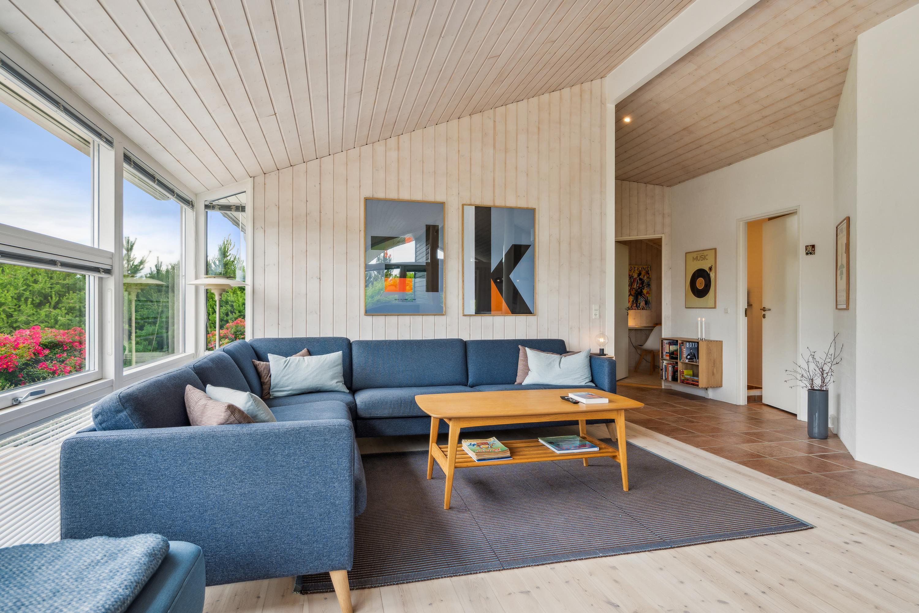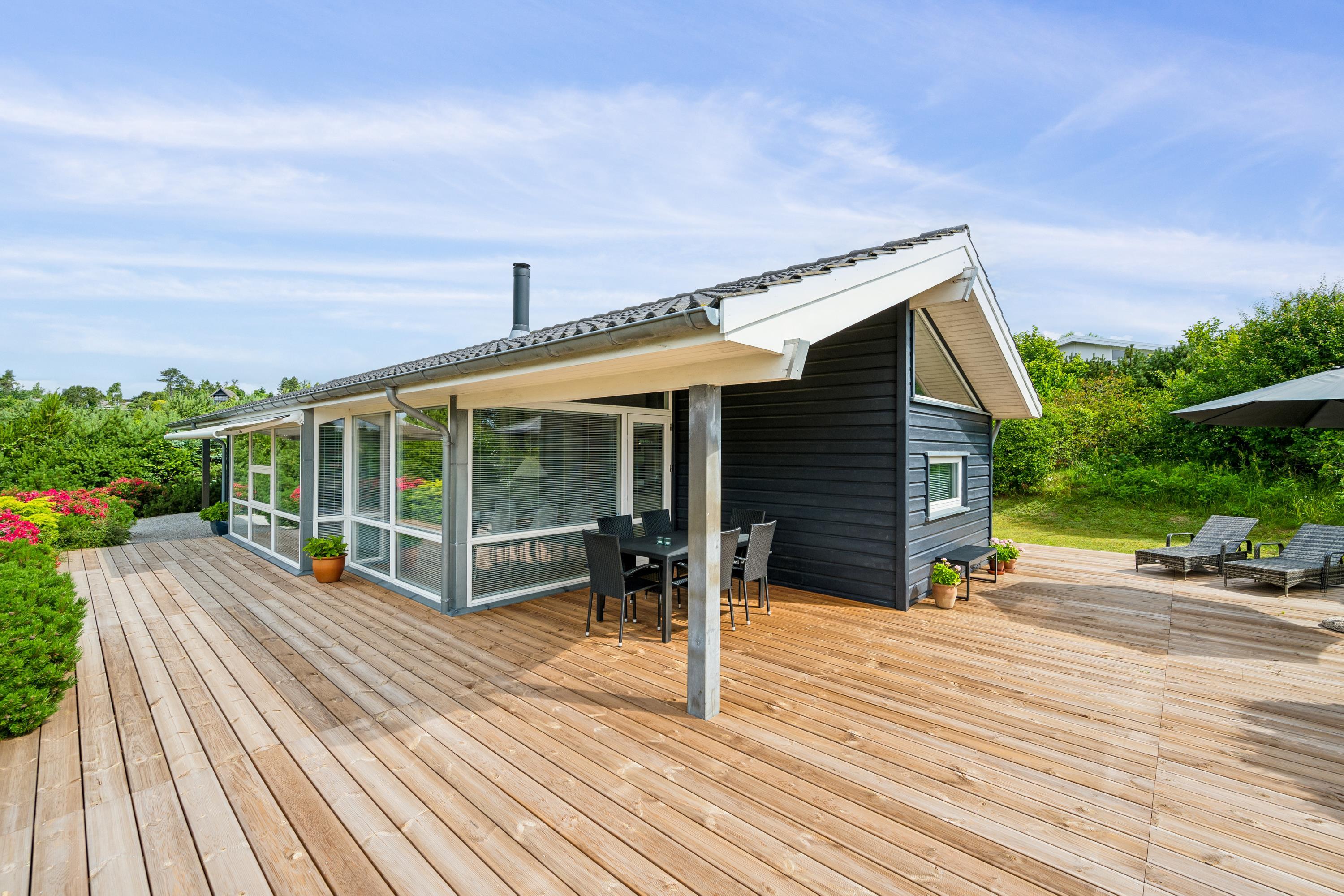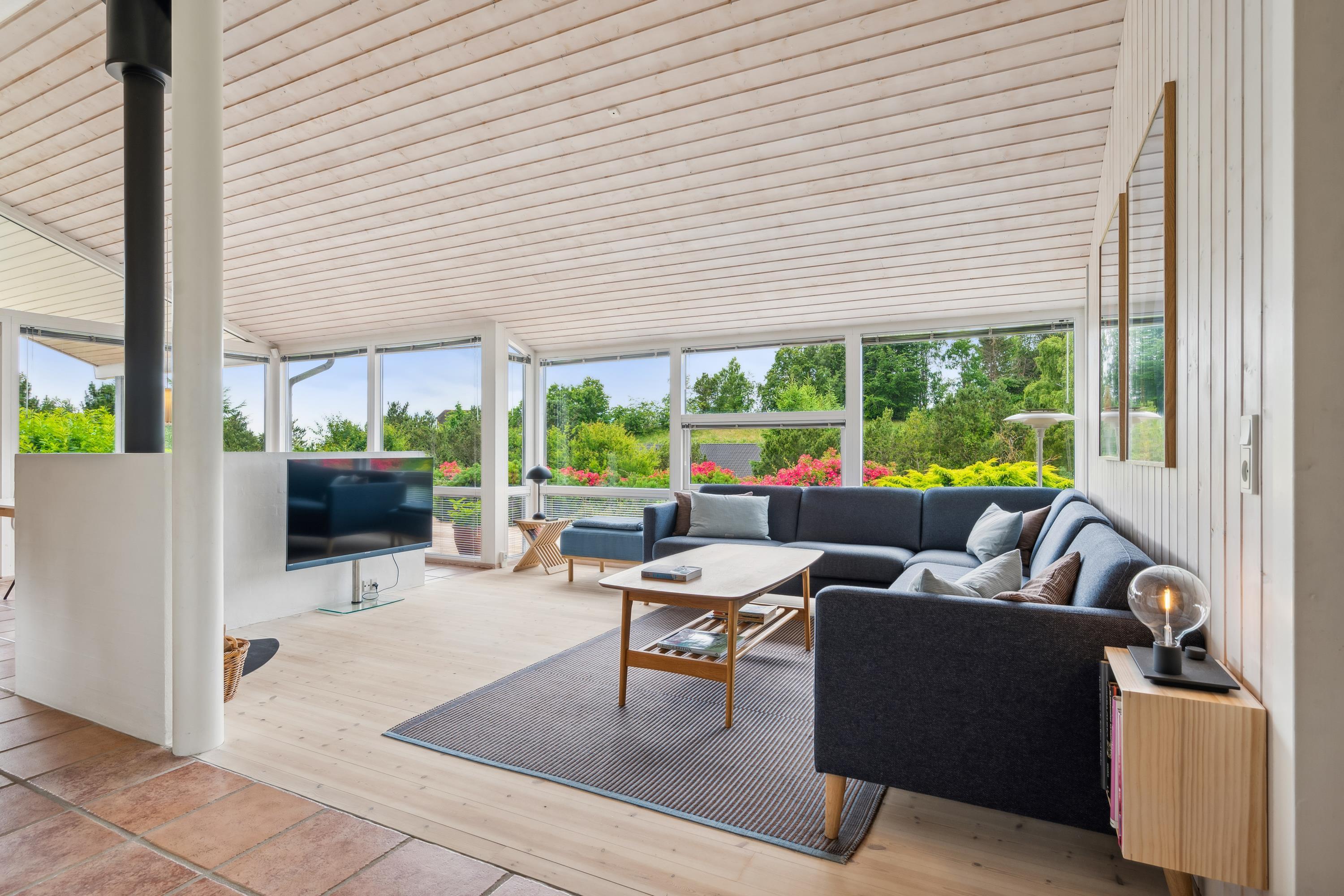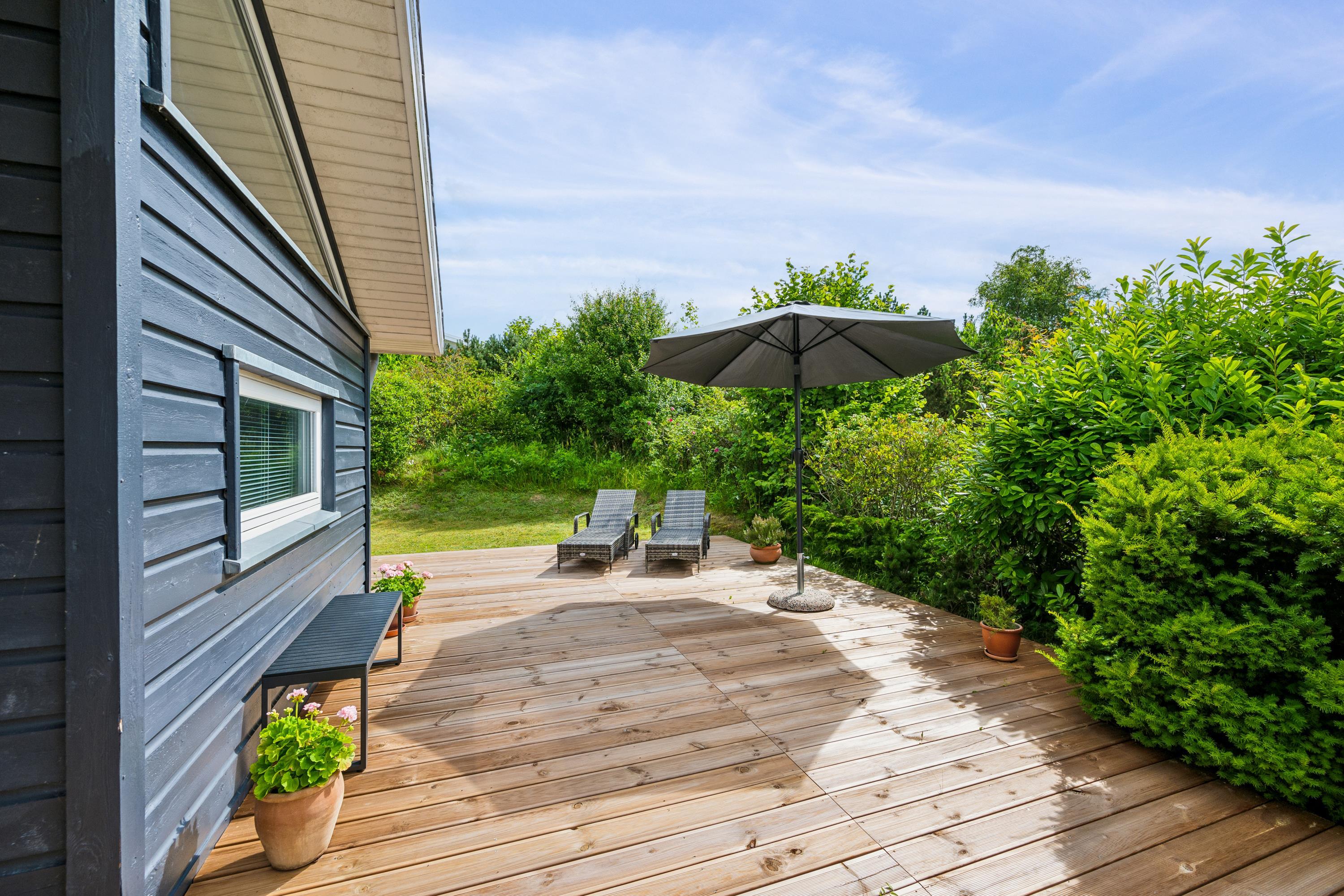 Flot feriehus med smuk udsigt, spa, brændeovn og tæt på Handrup Strand og Mols Bjerge.