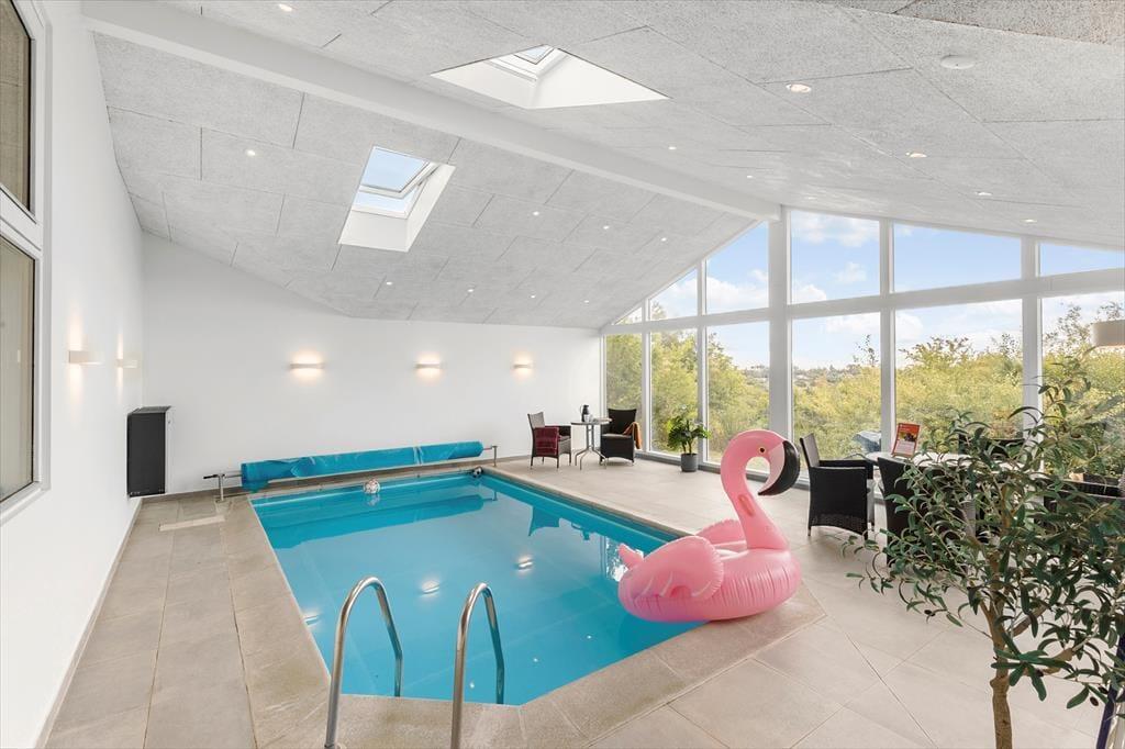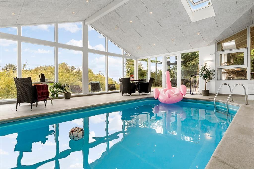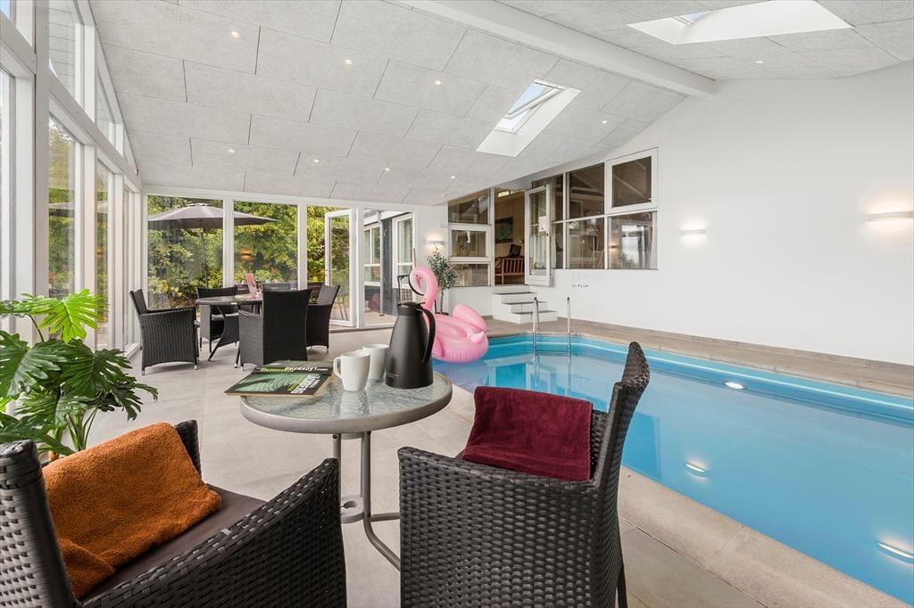 Hyggeligt sommerhus i Ebeltoft med sauna, indendørs pool og plads til hunde nær strand og natur.