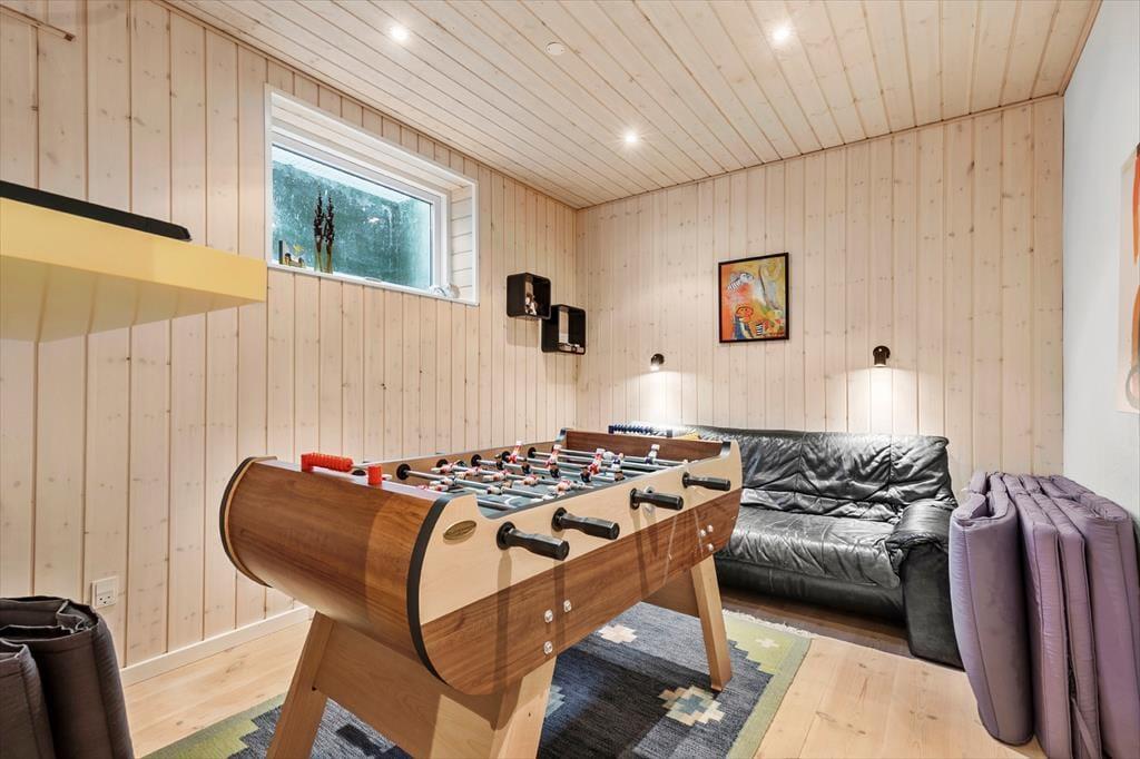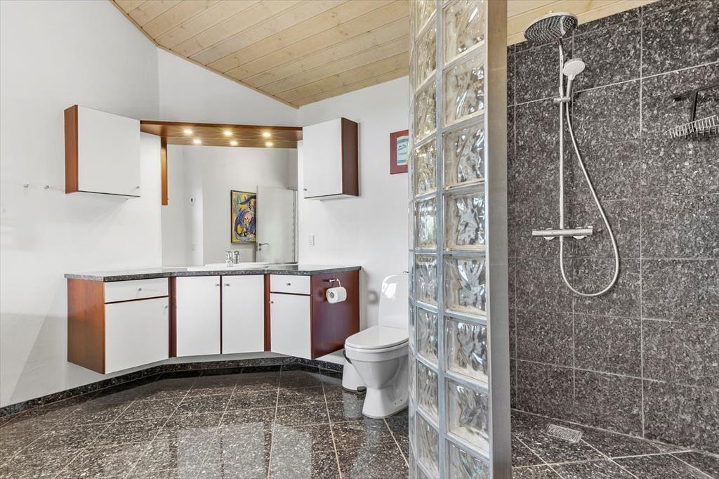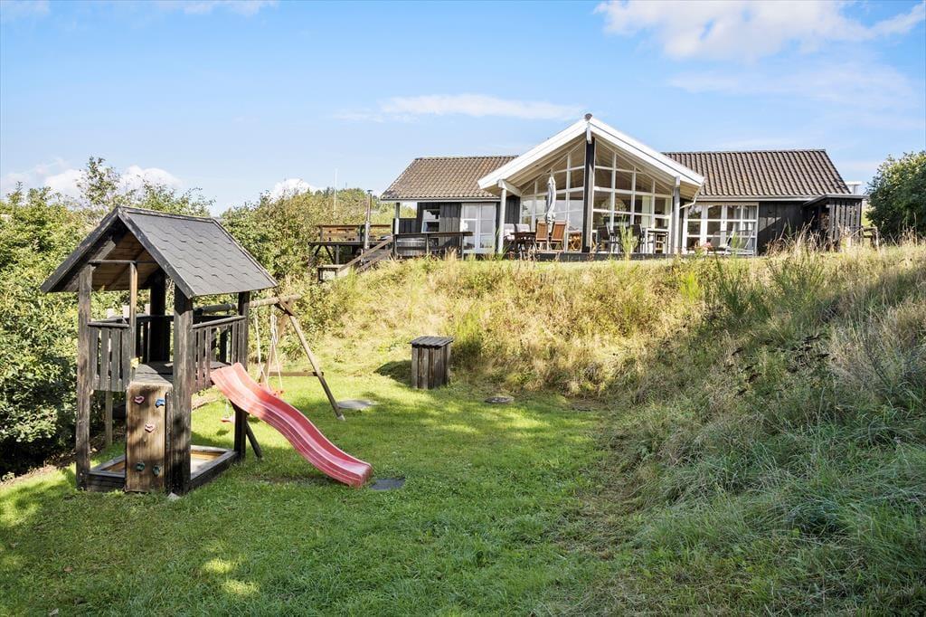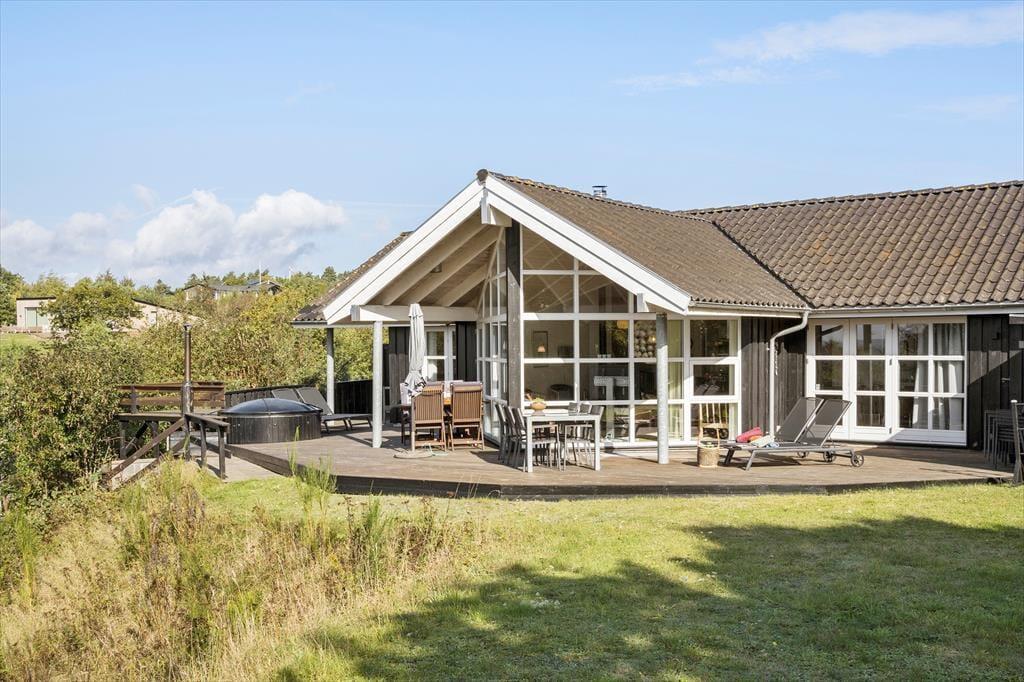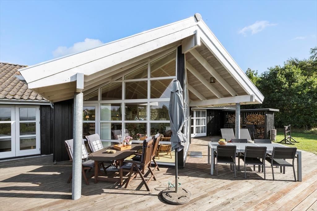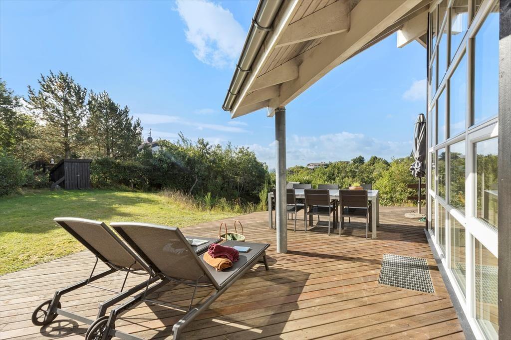 Udenfor venter naturen og det gode liv. Huset ligger på en rummelig grund med fuld udsigt til vandet, grøn beplantning og åbne arealer, så børn kan lege frit og alle kan finde deres yndlingsplads – om det er i solen med en kop morgenkaffe eller i skyggen med en kølig drink. Terrassen indbyder til grillmiddage under åben himmel, mens havemøbler og liggestole giver perfekte muligheder for afslapning. På solskinsdage vil der være sol hele dagen. Morgen- og aftentimerne bliver magiske, når lyset falder – måske med lyden af fuglesang og duften af bøgeblade eller lyng alt efter årstiden.