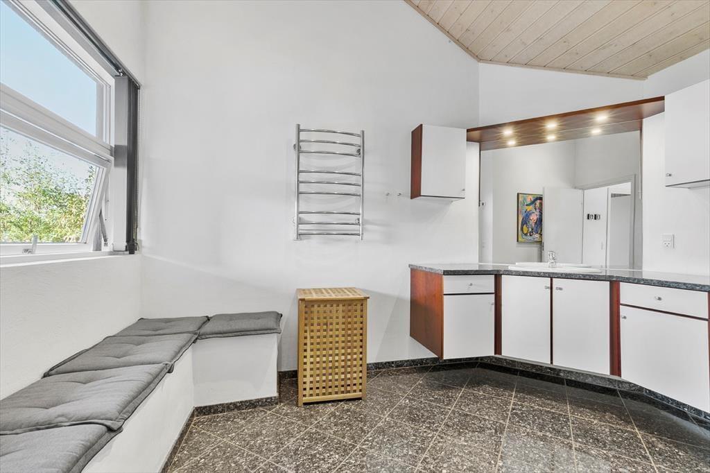 Træd ind i et lyst og indbydende feriehus, hvor atmosfæren straks inviterer til at sænke skuldrene. Her er rigelig plads til hele familien – eller dem I rejser med – med hyggelige opholdsområder, komfortable møbler og varme toner, der gør huset til et hjem, så snart døren lukkes. Køkkenet er funktionelt og veludstyret, perfekt til at kokkerere sammen om frokost og aftensmad, mens stuen giver mulighed for afslapning eller hygge med spil, udsigten til Ebeltoft vig, film eller en god bog. Komforten er i højsædet – alt fra sengene til de små detaljer omkring faciliteterne er tænkt for at skabe ro og velvære.