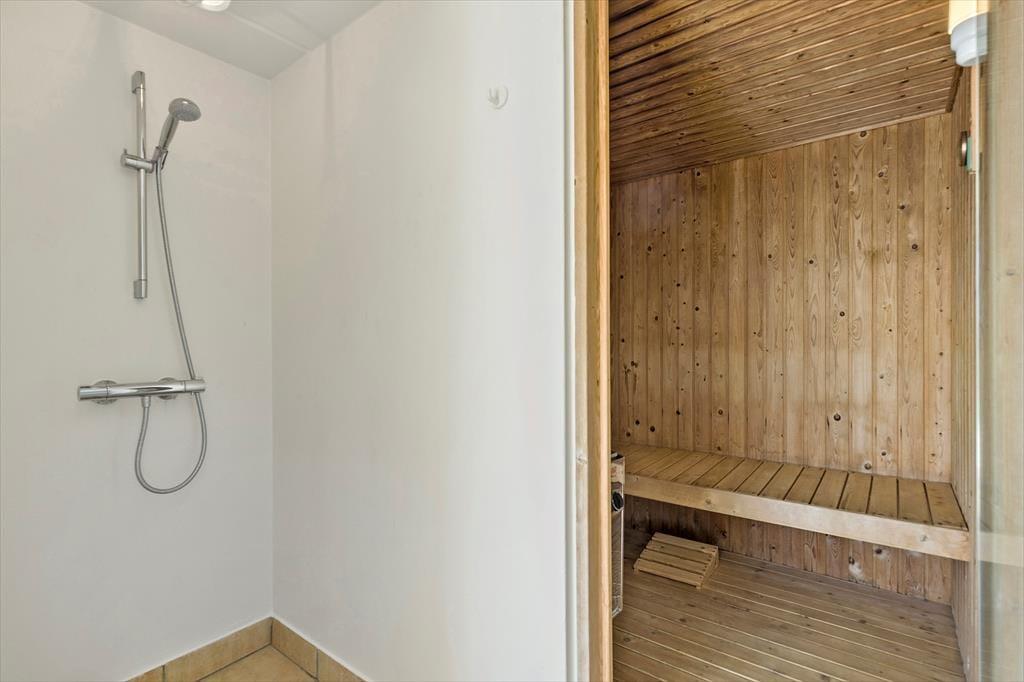 I underste etage ligger en wellness afdeling med en 26 m2 stor swimmingpool incl. Svømmetræner og rutsjebane en meget stor spa, bruser og direkte adgang til saunaen. Så her kan der slappes af eller leges, mulighederne for at forkæle sig selv er store.