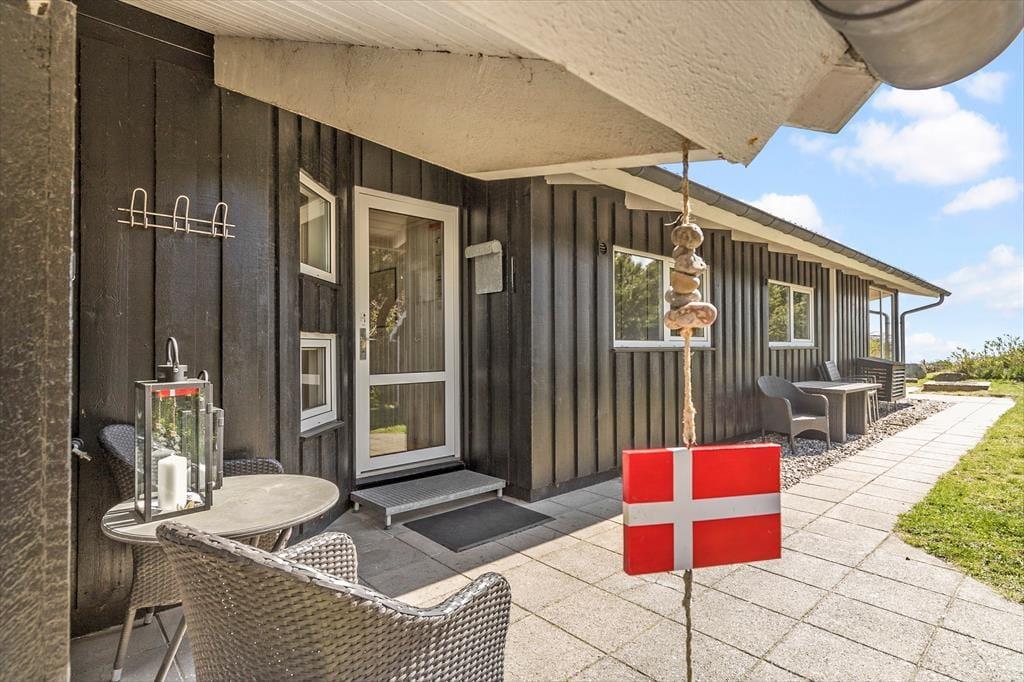 Huset har en stort flot terrasse med fine havemøbler og grill. Så her gælder det om at finde den bedste krog, at nyde udsigten fra og når vejret tillader det, kan middagen nydes udenfor. Her er der mulighed for at slappe af og spise sammen med familien, mens både morgen og aftensolen passerer forbi den smukkeste udsigt over Ebeltoft Vig.