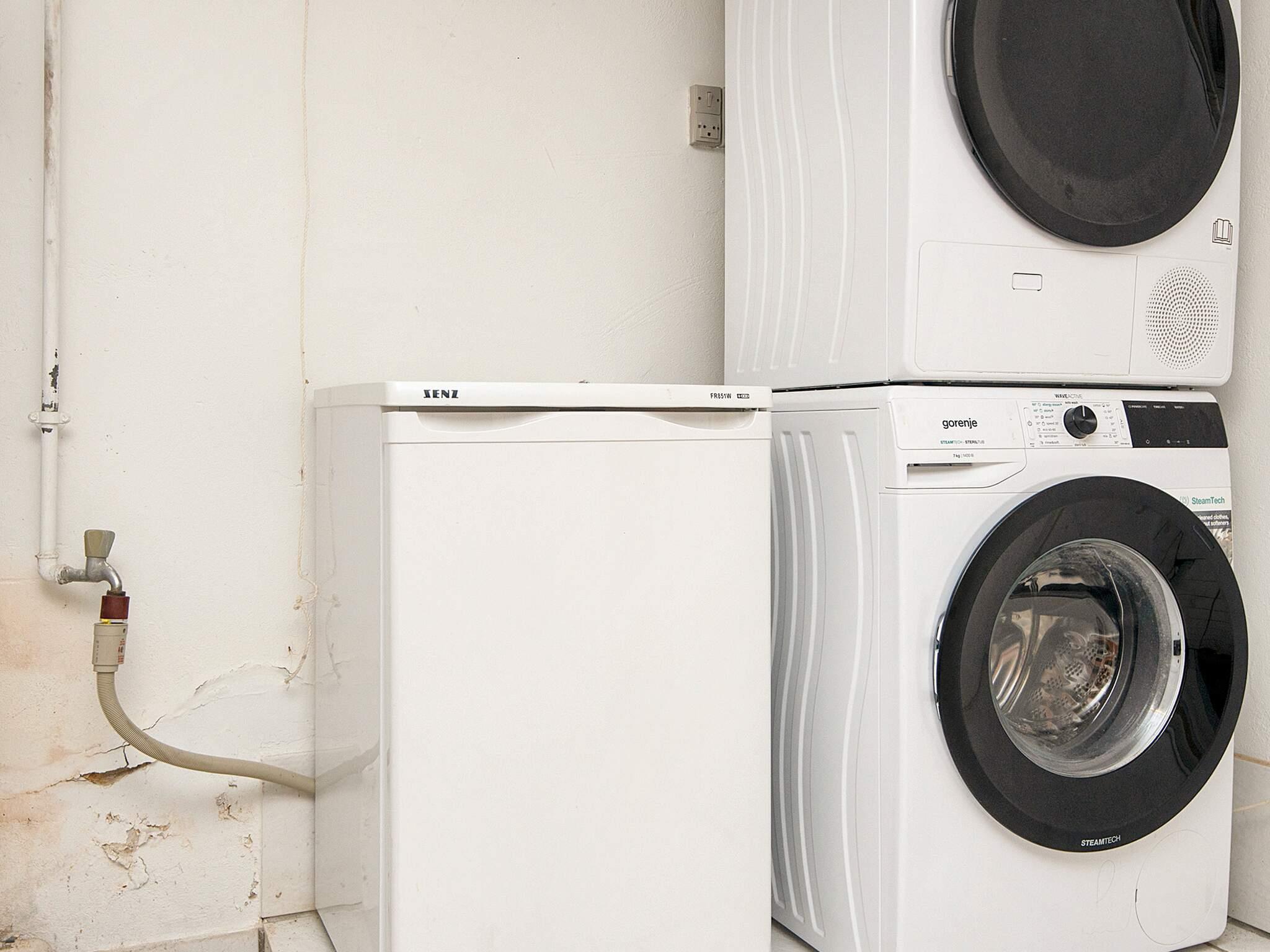 Køkken: Ovn, køleskab, fryser 1 - 59 l, mikroovn, induktionskomfur, kaffemaskine, opvaskemask.