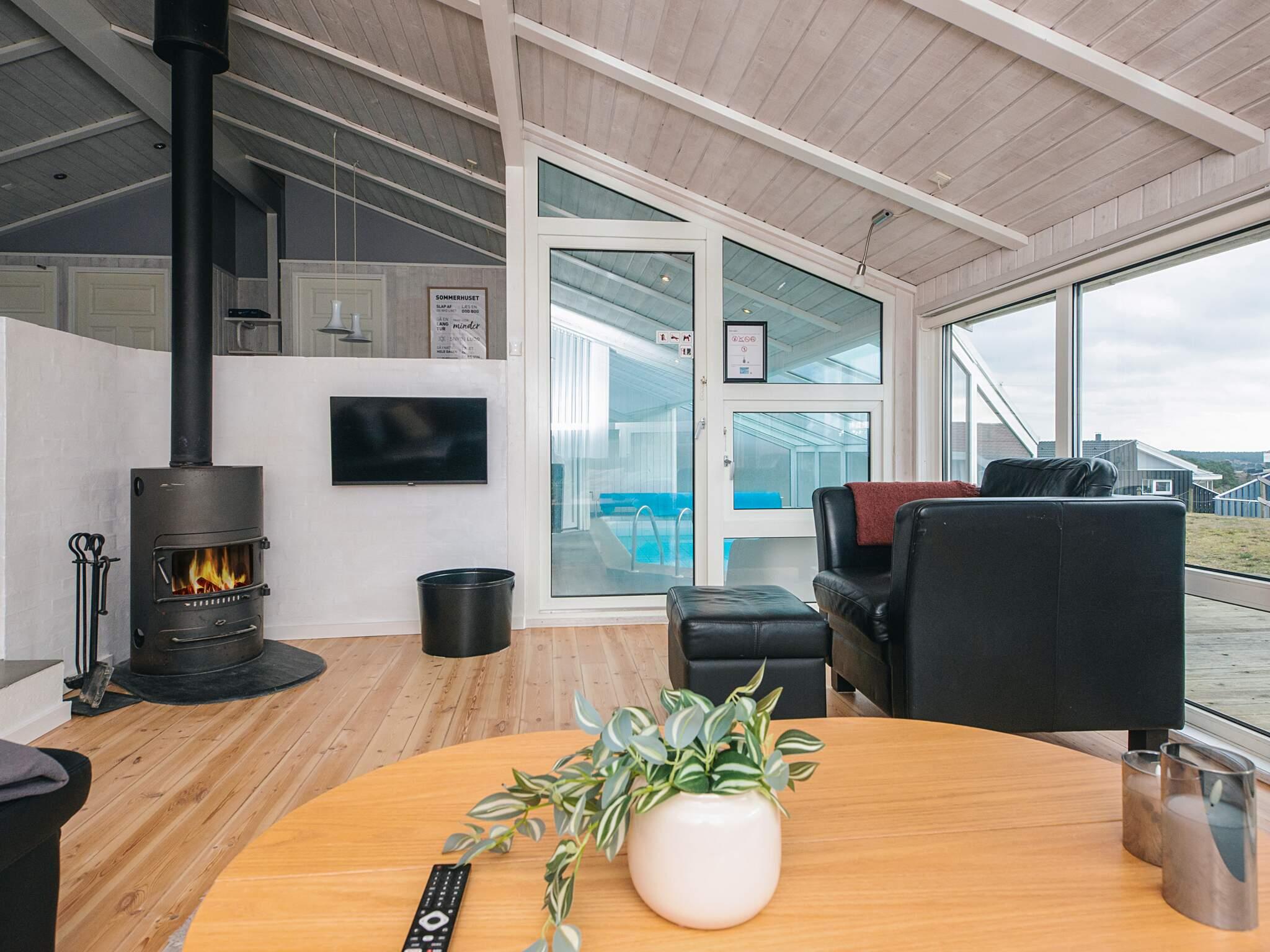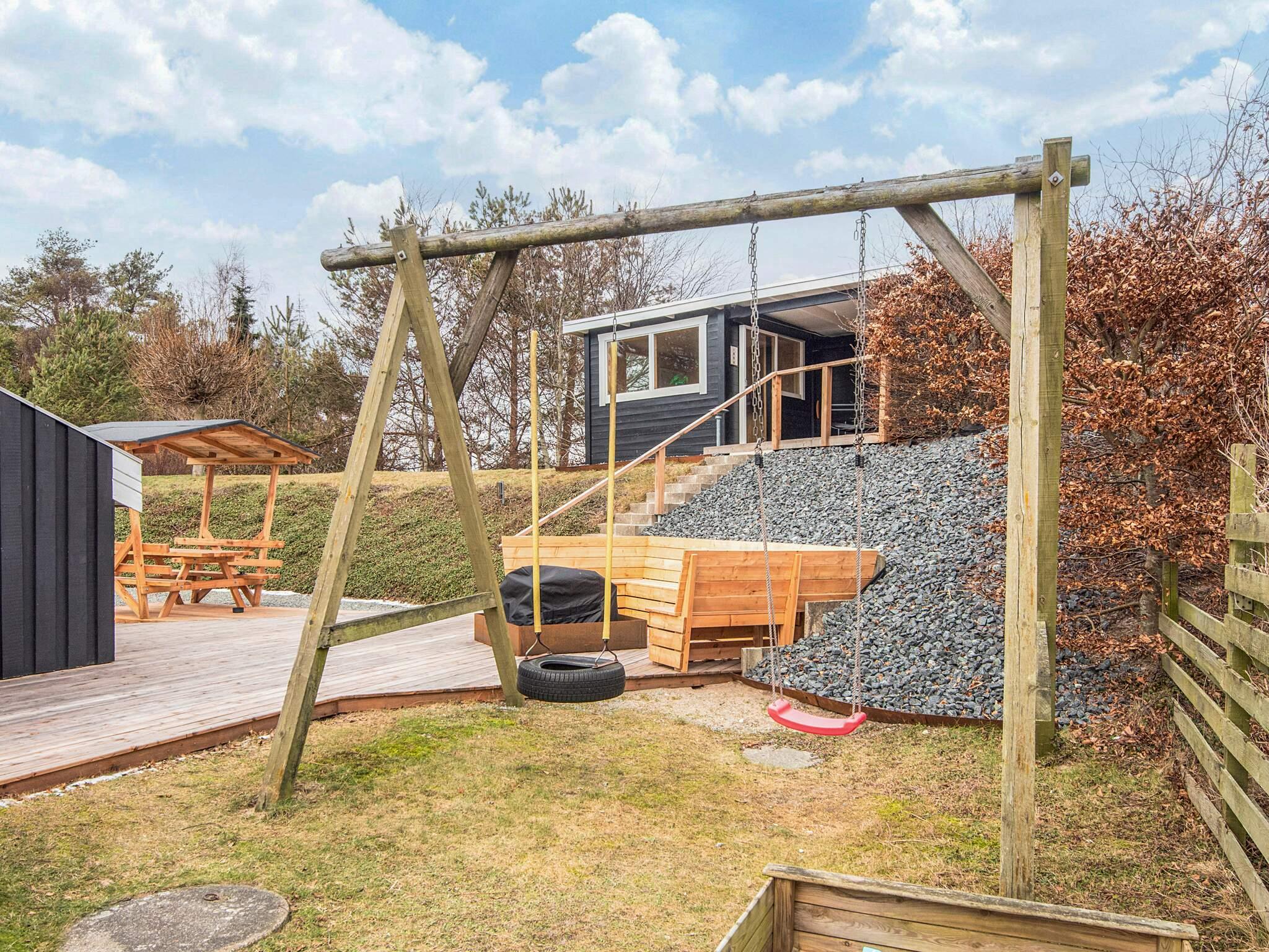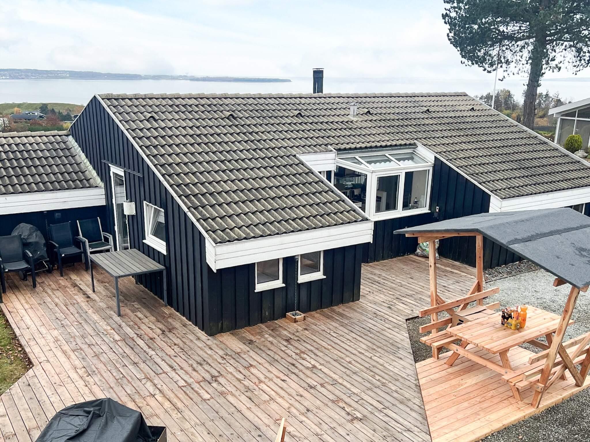 Velbeliggende feriehus med indendørs pool, sauna og panoramaudsigt ved Handrup Bakker Dette rummelige og velholdte feriehus ligger i det attraktive område Handrup Bakker tæt ved Ebeltoft. Huset har plads til op til 8 personer og egner sig godt til både familieferie og ophold med venner. Feriehuset er lyst og moderne indrettet med opholdsstue og køkken i åben forbindelse. Fra stuen er der flot panoramaudsigt over vigen, kystlinjen og Ebeltoft by, og i klart vejr kan Samsø ses i horisonten. Huset er udstyret med energivenlige løsninger, herunder varmepumpe og aircondition, som sikrer et behageligt indeklima året rundt. Der er luft-vand varmepumpe til opvarmning af poolen, hvilket giver lavest mulig pris på poolopvarmning. Der er 4 soveværelser og 2 badeværelser med gulvvarme. Husets indendørs swimmingpool og sauna giver mulighed for afslapning uanset årstid. Udendørs findes en 1.270 m² anlagt grund med gode terrasser mod både nord og syd, havemøbler, liggestole og grill. Her er god plads til både afslapning og leg, og på grunden er der desuden en hyggelig bålplads, som indbyder til snobrød og samvær på lune sommeraftener. For familiens yngste er der et aktivitetsrum med plads til leg og ophold – og samtidig en herlig udsigt, så både børn og voksne kan nyde omgivelserne. Der er gratis parkering på grunden, og én hund er tilladt. Området byder på gode badestrande, naturskønne vandre- og cykelruter samt restauranter i nærheden. Ebeltoft ligger ca. 6 km fra huset og tilbyder hyggelige gader, indkøb og seværdigheder. Feriehuset er desuden et godt udgangspunkt for udflugter i Djursland og resten af Østjylland. Et veludstyret feriehus i naturskønne omgivelser med fokus på komfort, udsigt og afslapning.