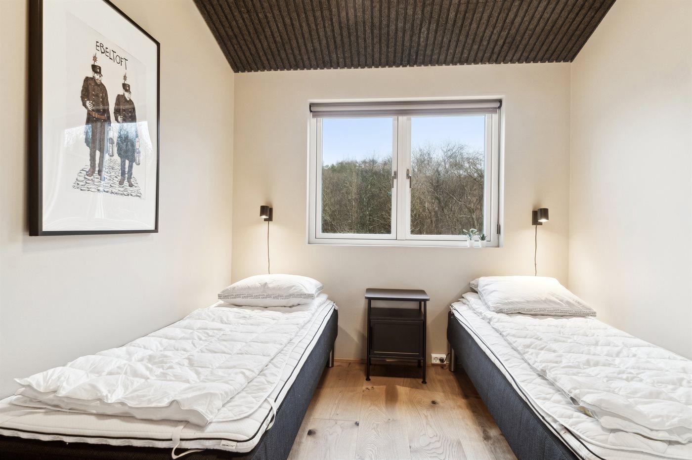 Der er i alt 4 soveværelser. Sovepladserne fordeler sig på: 4 sovepladser i dobbeltsenge. 4 sovepladser i enkeltsenge. Derudover er der 1 stk. barneseng.