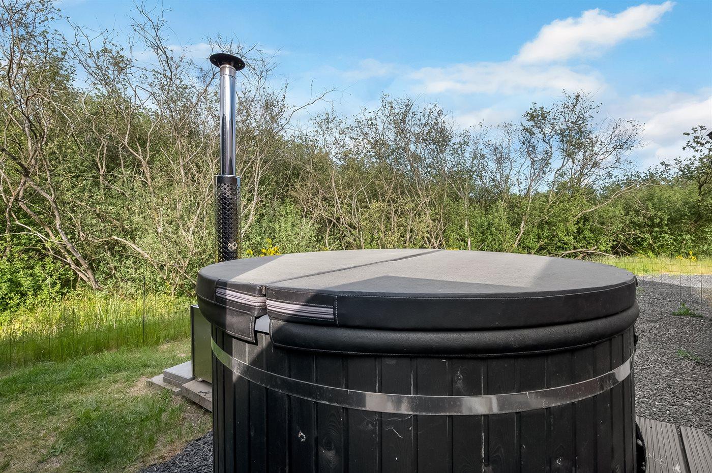 Der er mulighed for afslapning i det udendørs vildmarkskar til 6 personer.