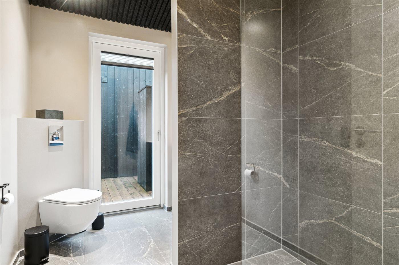 Der er 2 badeværelser med bruseniche og 2 toiletter. Der er gulvvarme på 2 badeværelser.