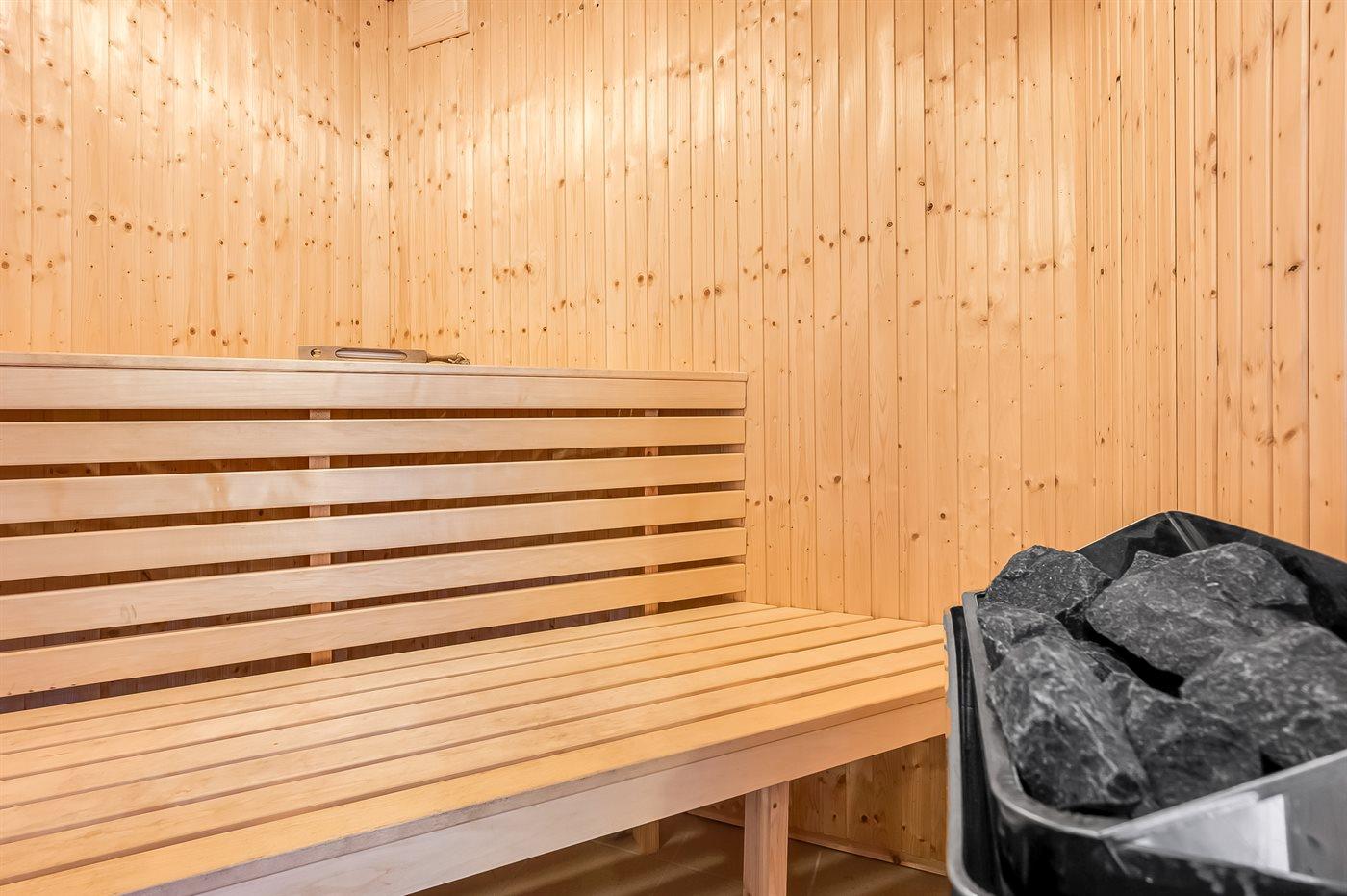 Der er 2 badeværelser med bruseniche og 2 toiletter. Der er gulvvarme på 2 badeværelser. I saunaen er der mulighed for afslapning.