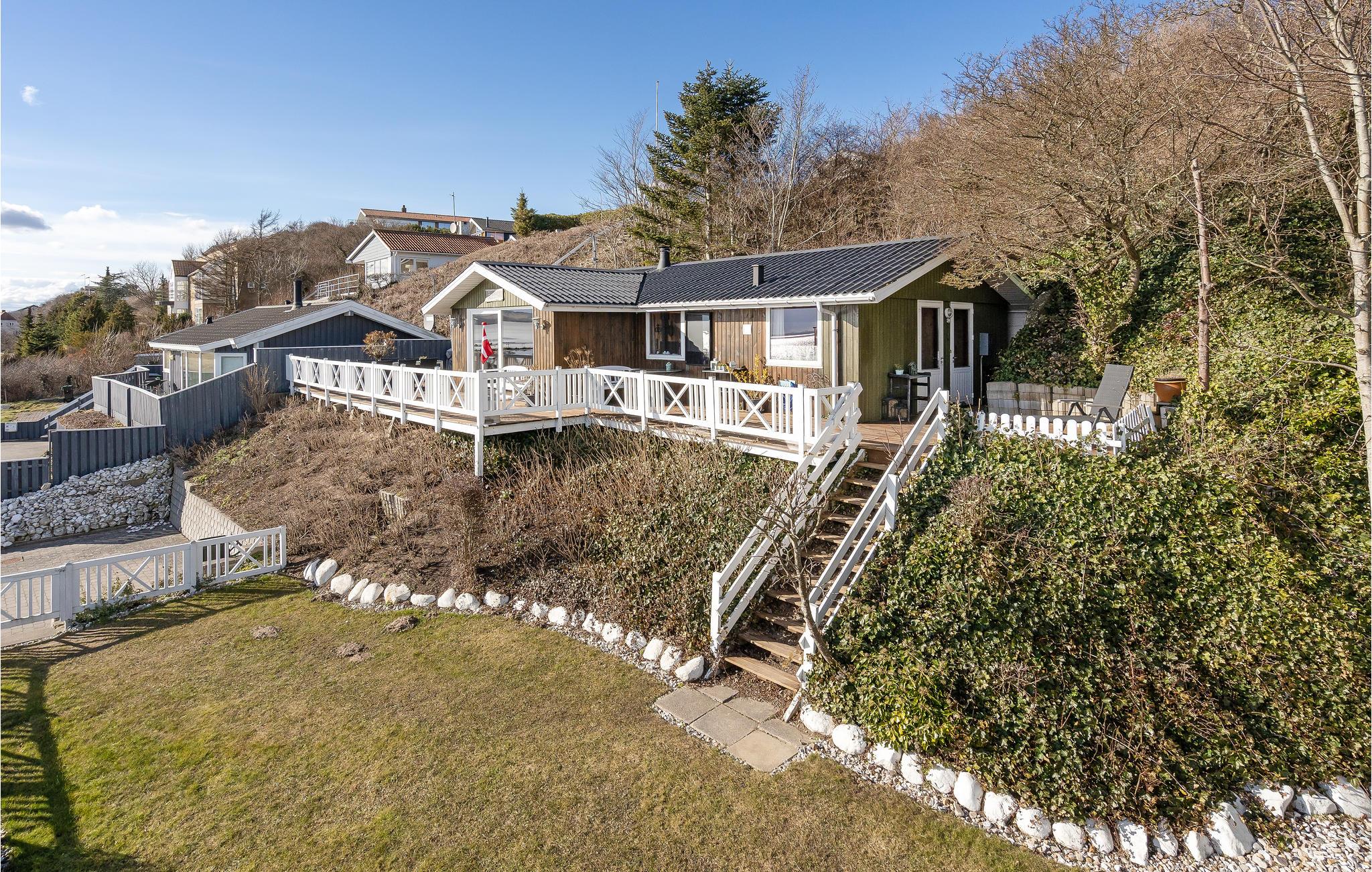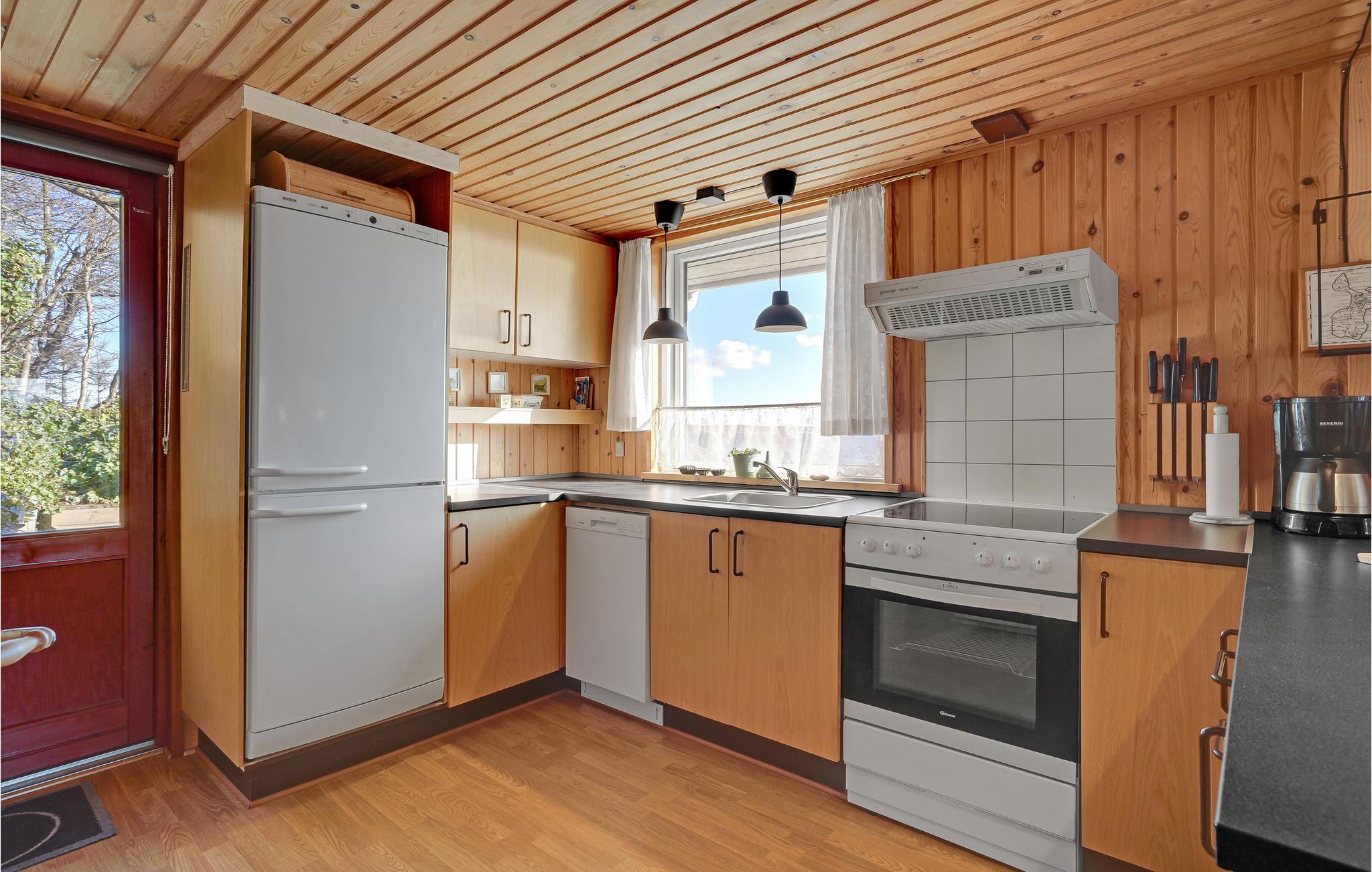 Velkommen til dette smukke sommerhus, der tilbyder ideelle betingelser for en ferie med familien og jeres kæledyr. Kun få skridt fra vandet venter huset på jer med en hyggelig atmosfære og en smuk udsigt. Hjertet i huset er stuen med spiseplads og åbent køkken, hvor I kan tilbringe mange hyggelige timer med familie eller venner. Fra sofaen og spisepladsen kan I nyde en fantastisk udsigt over vandet. På kølige dage spreder brændeovnen varme og hygge.