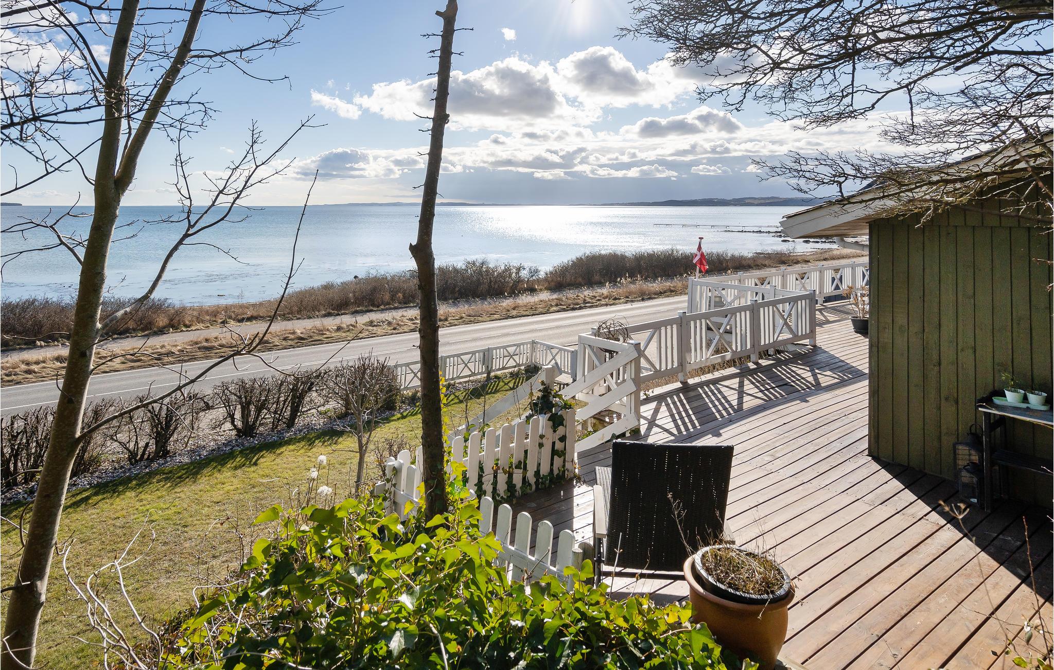 Charmerende sommerhus tæt ved vandet med panoramaudsigt og hyggelig terrasse.