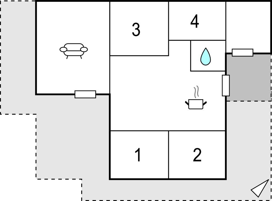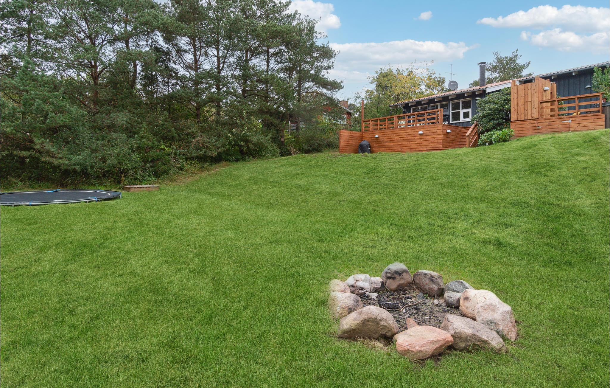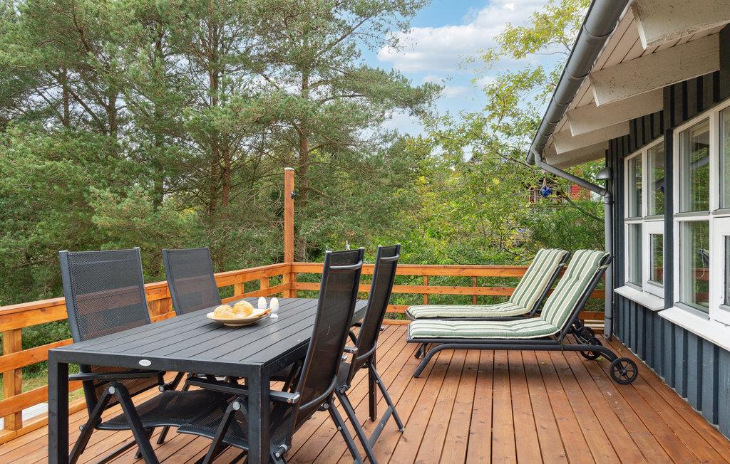 Rundt om huset strækker sig en træterrasse, der gør det let for jer at nyde feriens måltider udendørs, eller solbade på de varme dage. Her står havemøbler og grill til jeres rådighed.