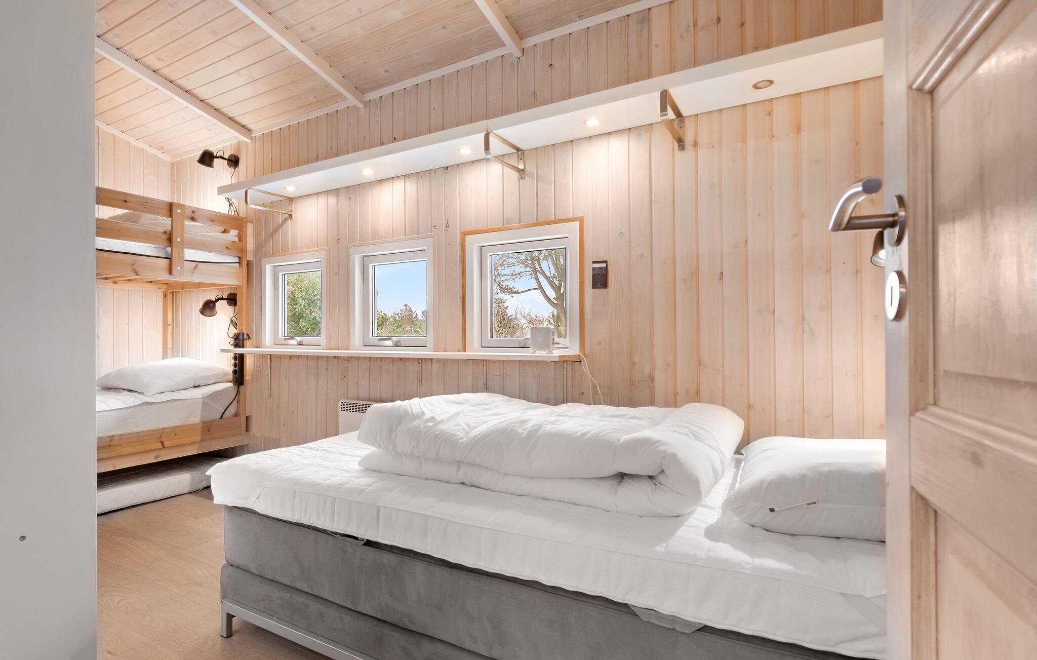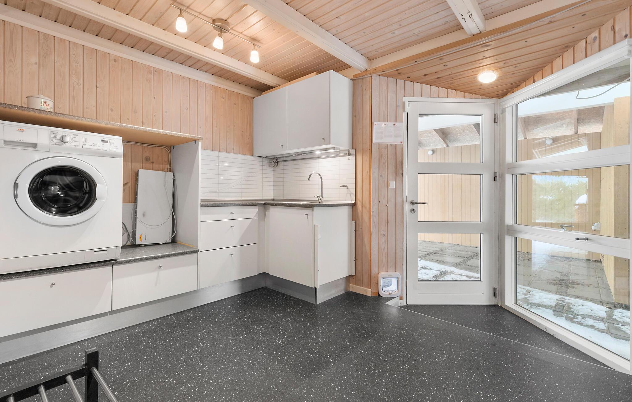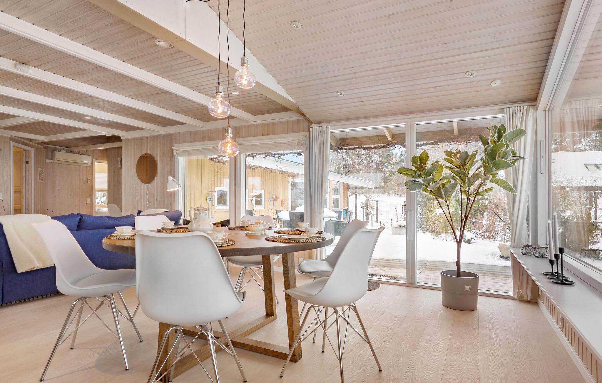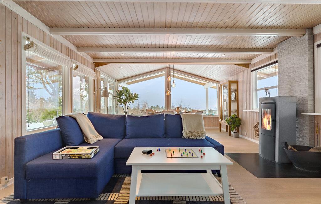 Smid fødderne op i havemøblerne og nyd udsigten! Den storslåede kulisse bliver jeres følgesvend på jeres ferie ved Handrup Strand. I kan også nyde udsigten fra stuen, der får et utrolig flot lysindfald gennem panoramavinduerne. Boligens indretning fremstår både varm, moderne og komfortabel, og ikke mindst i det store fællesrum har I mange hyggeaftener i vente. Nogen kan piske familiens livretter sammen i køkkenet, mens andre læser en god bog i sofaen eller lægger puslespil ved spisebordet.