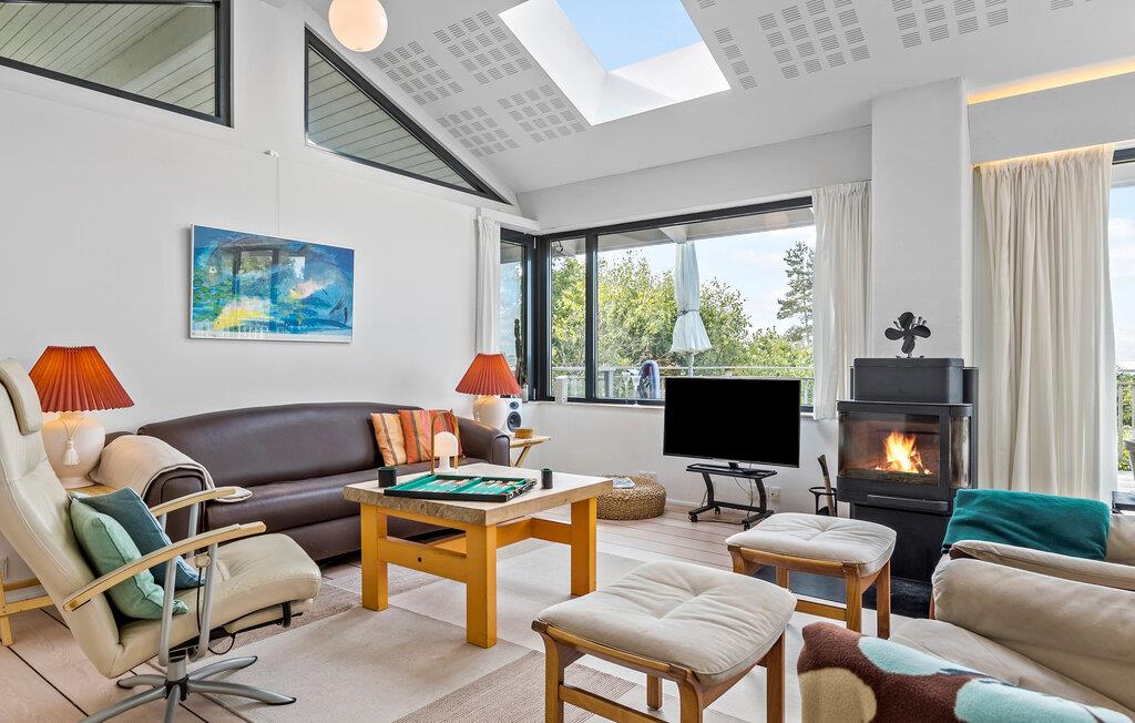 I får en perfekt oase i dette sommerhus ved Handrup Strand, som har en skøn stemning med brede vinduesfronter og en fantastisk udsigt over Ebeltoft Bugt. Boligen er lys, elegant og komfortabel, så her vil I straks føle jer hjemme. Den åbne udformning skaber en følelse af plads og høj komfort.