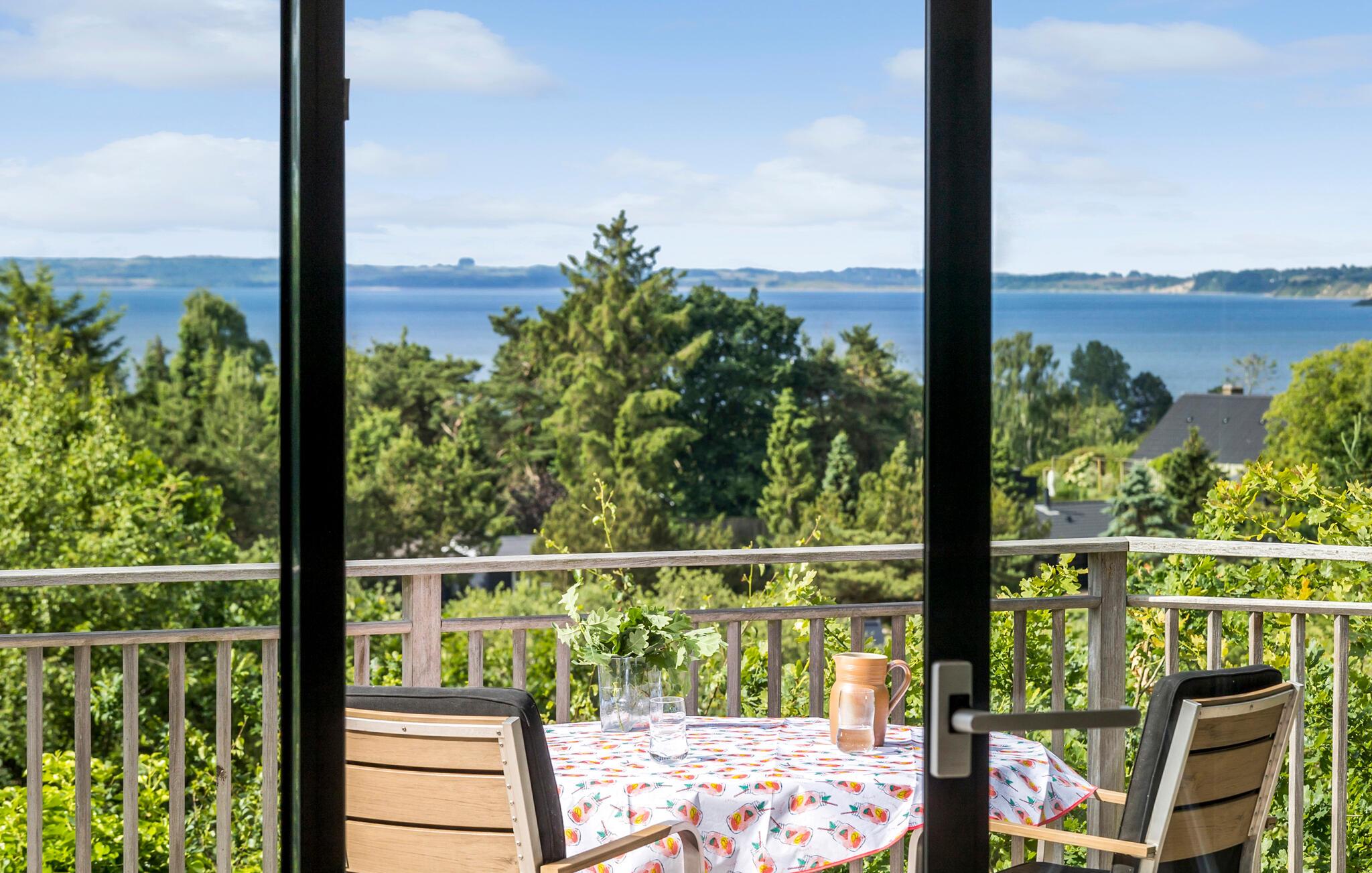 Sommerhus ved Handrup Strand med panoramaudsigt over Ebeltoft Bugt og stor terrasse til afslapning.
