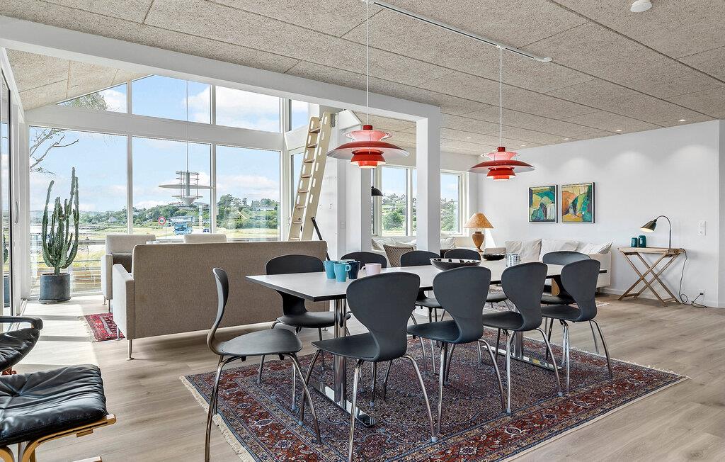 Hvis I er på udkig efter en komfortabel base for årets ferie, og vil I gerne rejse som en større flok, måske endda på tværs af generationerne, er dette luksushus ved Ebeltoft Vig det helt rette valg for jer. Udsigten over vandet er helt fantastisk, og indvendigt emmer det fuldt ud af kvalitet over to etager med materialer af høj kvalitet, et komfortabelt møblement og et fuldt udstyret køkken, hvor kokkene kan tage sig god tid med at kræse om livretterne. Prikken over i'et er dog udsigten, som kan nydes gennem de mange, store vinduespartier, der samtidig giver dejlige lysindfald til stuen. Efter aftensmaden kan I snuppe et slag bordtennis eller bordfodbold, inden I runder af med en snacks og en god film i stuen.