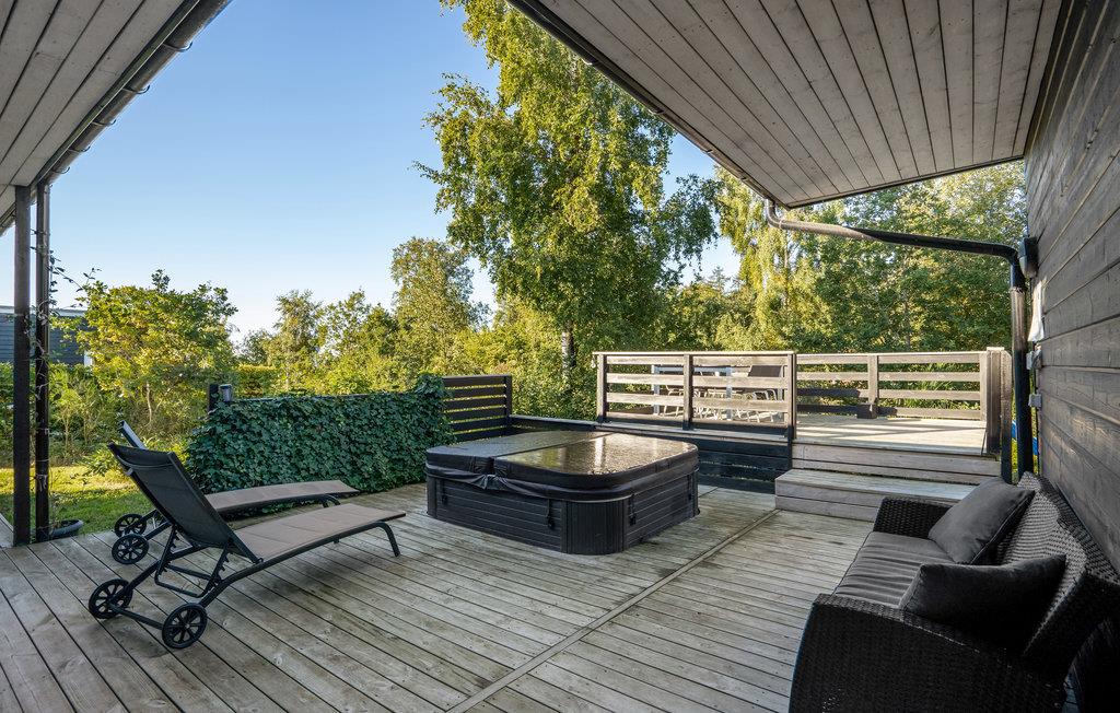 Nyt, moderne og super flot sommerhus med masse af kvalitet og udstyr. Optimal indretning med bl.a. tre gode værelser og dejligt badeværelse med udgang til terrassen. Huset har masse af plads, såvel ude som inde. Udendørs bydes på en kæmpestor træterrasse med integreret 4 pers. spabad . En stor oplevelse at sidde ude i det varme vand og nyde udsigten. Huset er højt beliggende i området, med en god udsigt. 5 min`s kørsel til stranden, købmanden og flere spisesteder. Med huset som udgangspunkt er der mange udflugtsmuligheder bl.a.National Park Mols Bjerge , Ree Dyrepark og Ebeltoft med de toppede brosten.