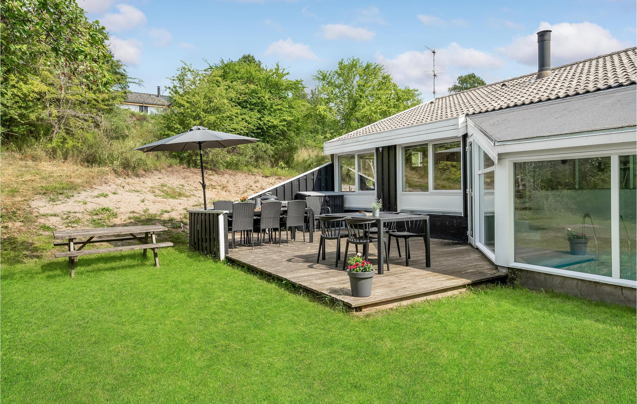 Hyggeligt familievenligt feriehus med pool, sauna og store terrasser i naturskønne Handrup Bakker.