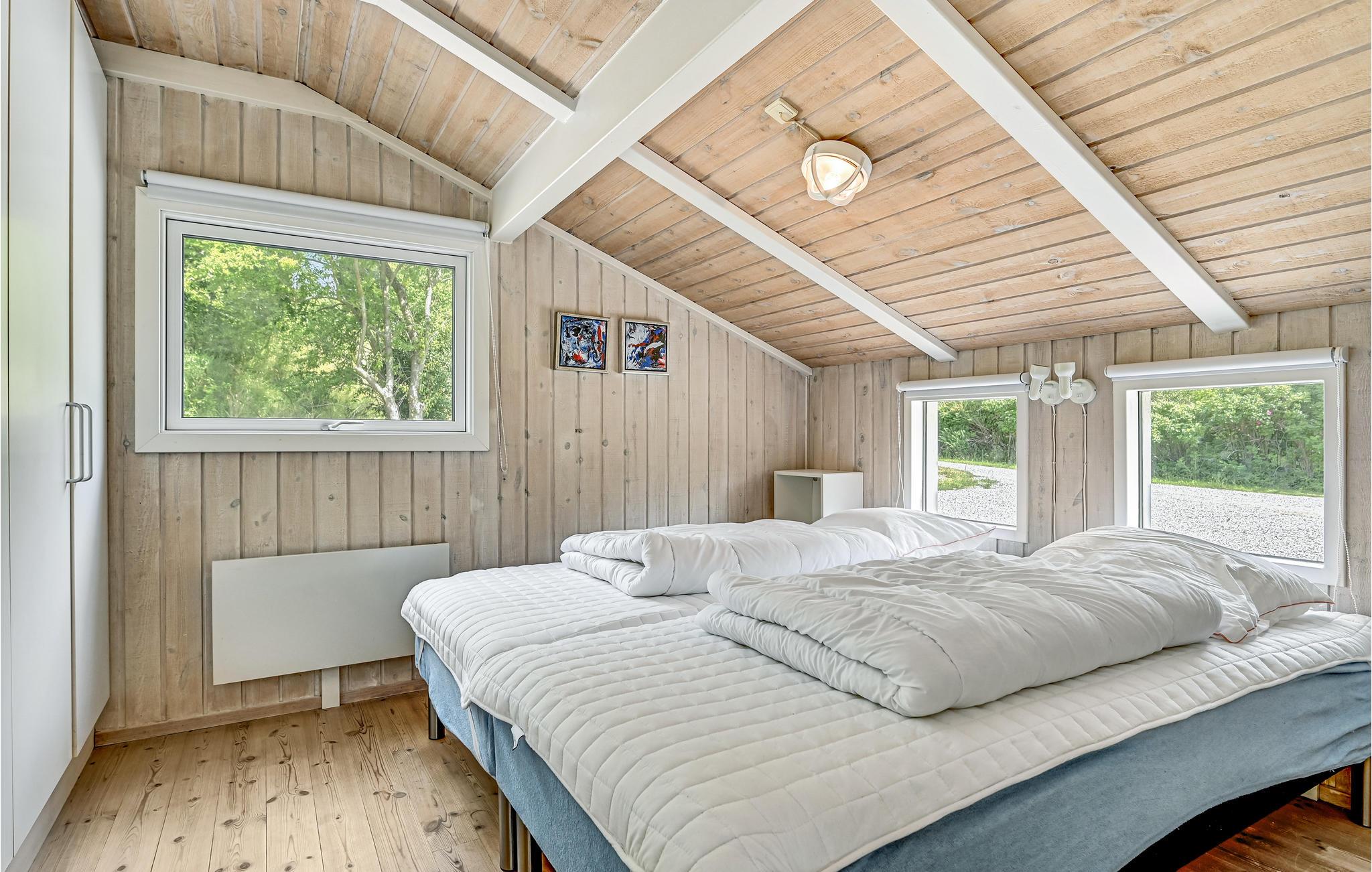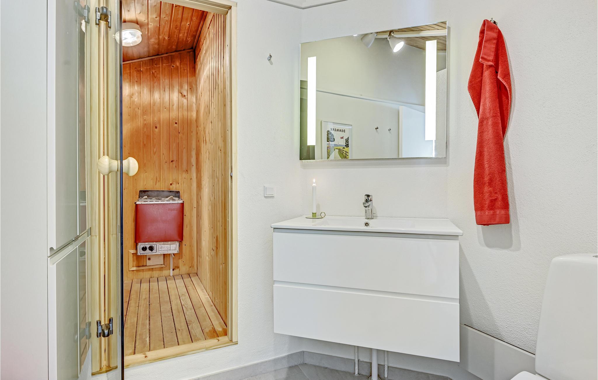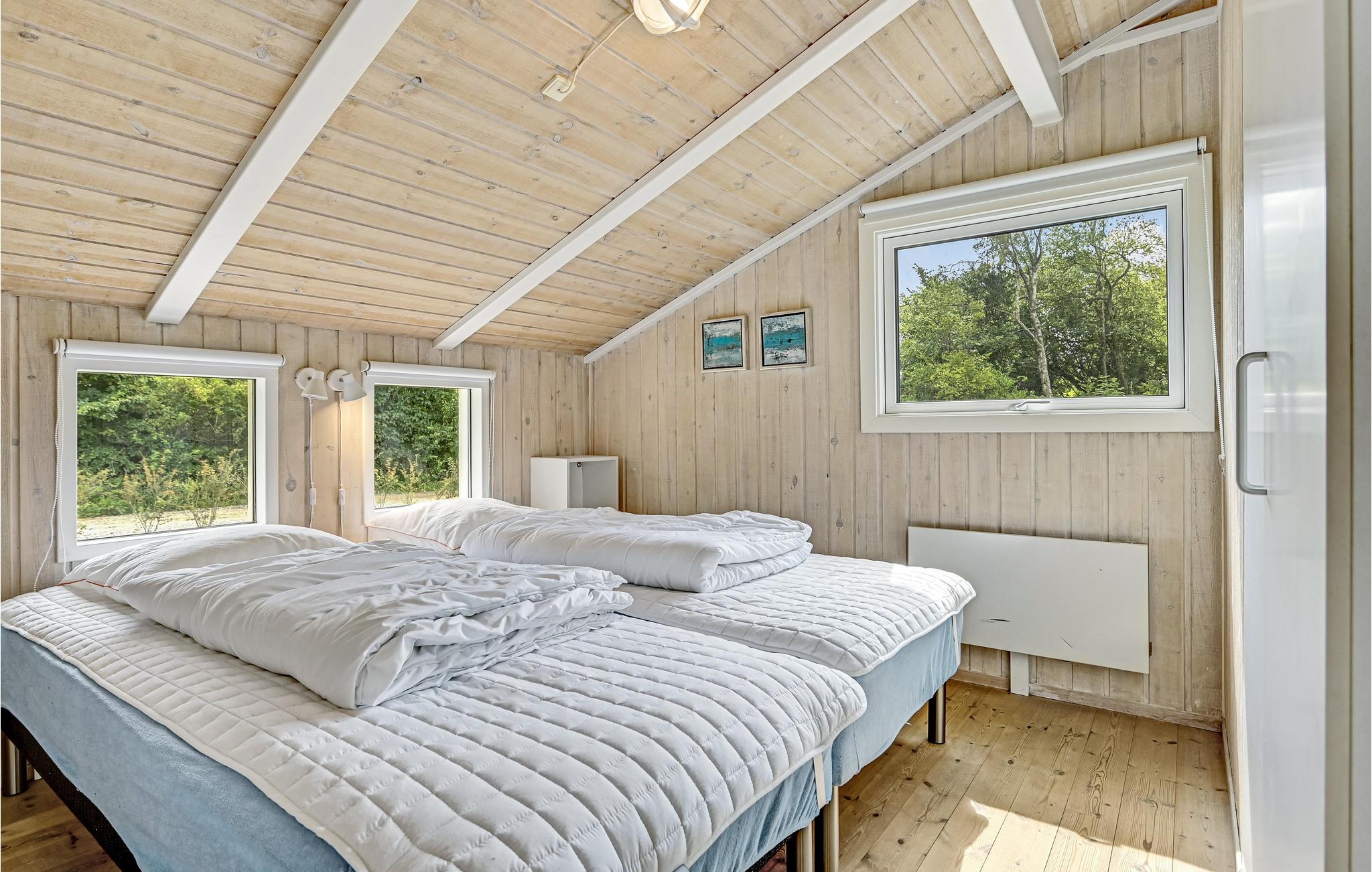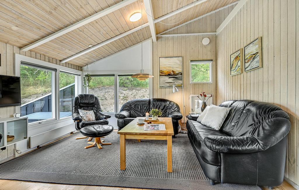 I familievenligt og roligt område med rigt dyreliv ligger dette feriehus. Huset er godt indrettet og byder på mange faciliteter, bl.a. swimmingpool og sauna. Såvel fra stuen som spisepladsen har I mulighed for at følge med i alle aktiviteterne i poolrummet. Hvad enten I er en eller to familier der ønsker at holde ferie, er der god plads til alle. Udendørs er der masser af plads til leg og boldspil og de tre gode træterrasser giver optimale betingelser for at nyde det dejlige vejr hele dagen. Området er et godt udgangspunkt for ture rundt på det naturskønne Mols eller egnens mange attraktioner.