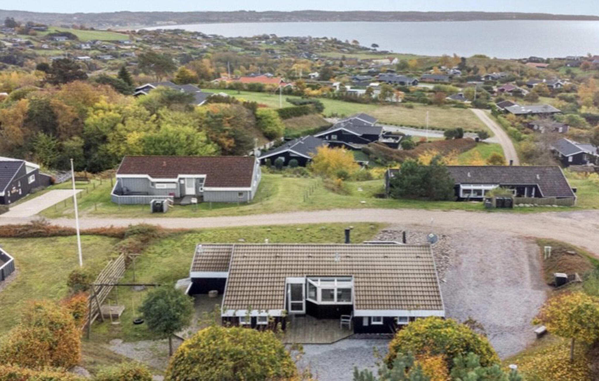 Den enestående udsigt over hele vigen nydes især fra den flot anlagte udsigtsterrasse, i klart vejr er der udsigt helt til Nordspidsen af Samsø. Fra stuen er der bl.a. udsigt til kystlinien/stranden og Ebeltoft by. Det er lyst og moderne indrettet og råder over alle tekniske faciliteter med lavt energiforbrug, deriblandt aircondition. Desuden er der to badeværelser med gulvvarme. Der er to store, gode terrasser mod henholdsvis nord og syd. Huset ligger i et meget populært område med fine strande og flere gode restauranter. Der er muligheder for lange vandre- og cykelture i det store naturskønne område, der støder op til Handrup Bakker, hvor skove og marker strækker sig milevidt. Ebeltoft er et perfekt udgangspunkt for dagudflugter til hele landet.