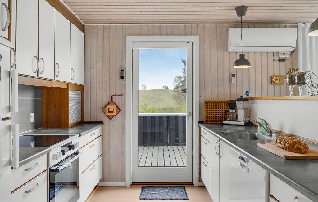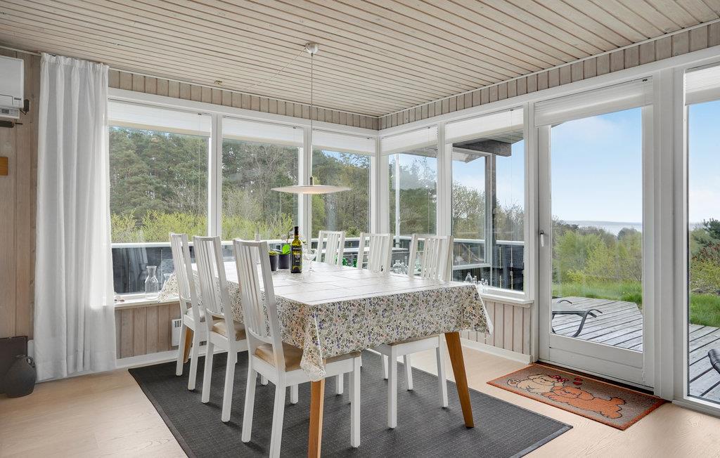 Dette feriehus inviterer dig og din familie til en afslappende ferie langt væk fra hverdagens stress og jag. Huset er fint indrettet med lyse, rummelige værelser. I den store stue kan I tilbringe hyggelige timer sammen, og i de køligere årstider kan I lytte til brændeovnens knitrende ild. Fra huset har I en fantastisk udsigt over vandet, mens terrassen er det ideelle sted at nyde morgenkaffen og måltiderne i det fri.
