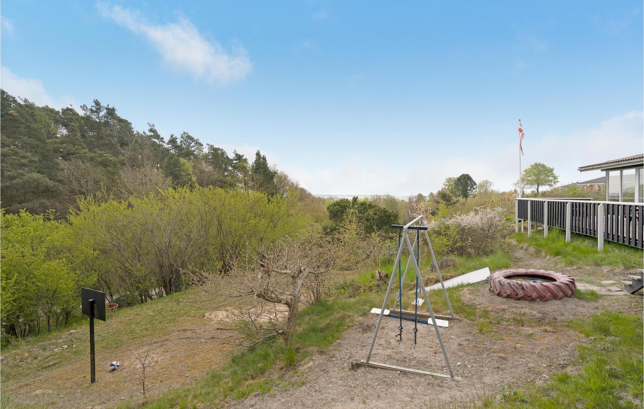 Huset har en stor grund med masser af plads til at lege og slappe af i naturen. Børnene kan lege i legehuset eller sandkassen eller underholde sig med et slag basketball eller badminton. Lav snobrød og rist skumfiduser over bål sammen med børnene. Flere hjørner på ejendommen er oplagte til afslappet ferielæsning og til at runde aftenen med udsigt over vandet.