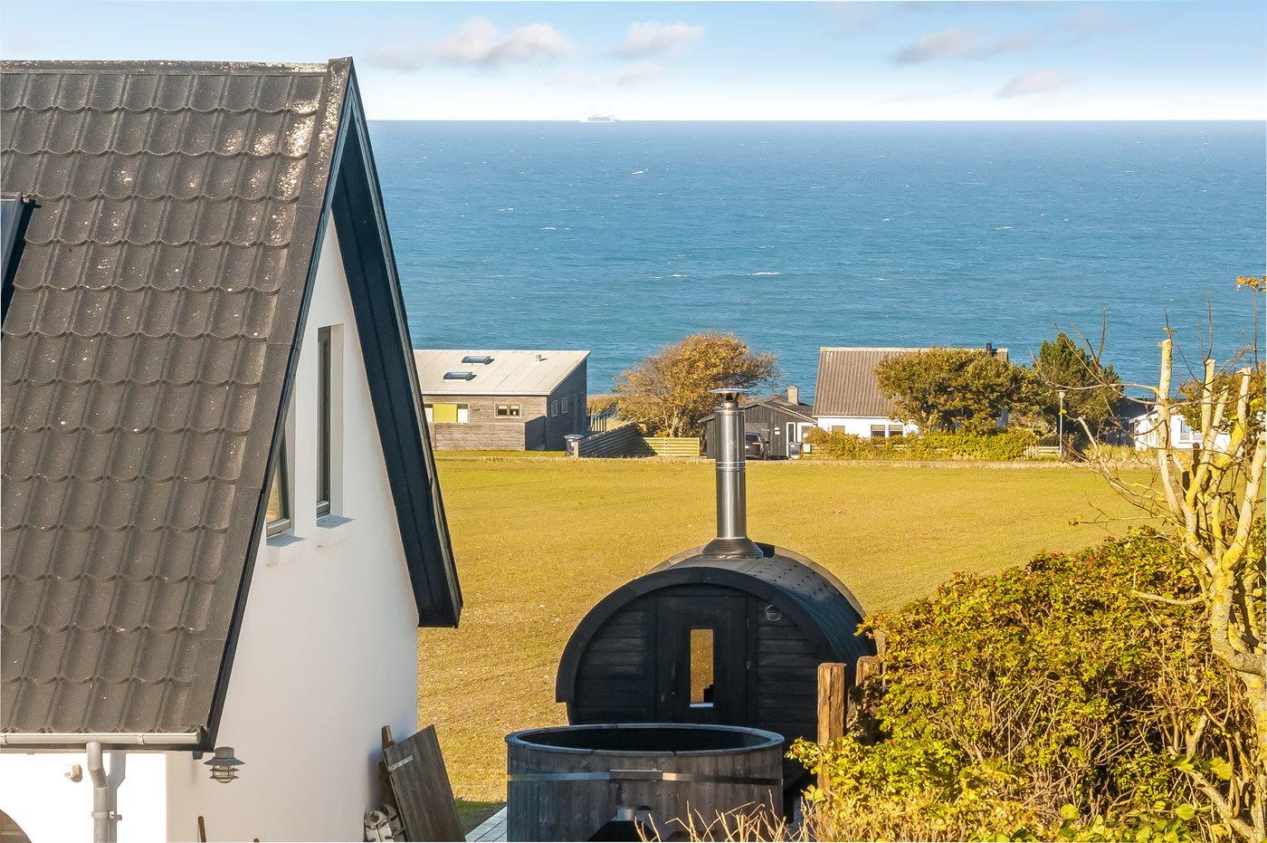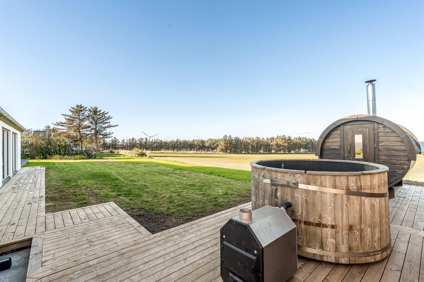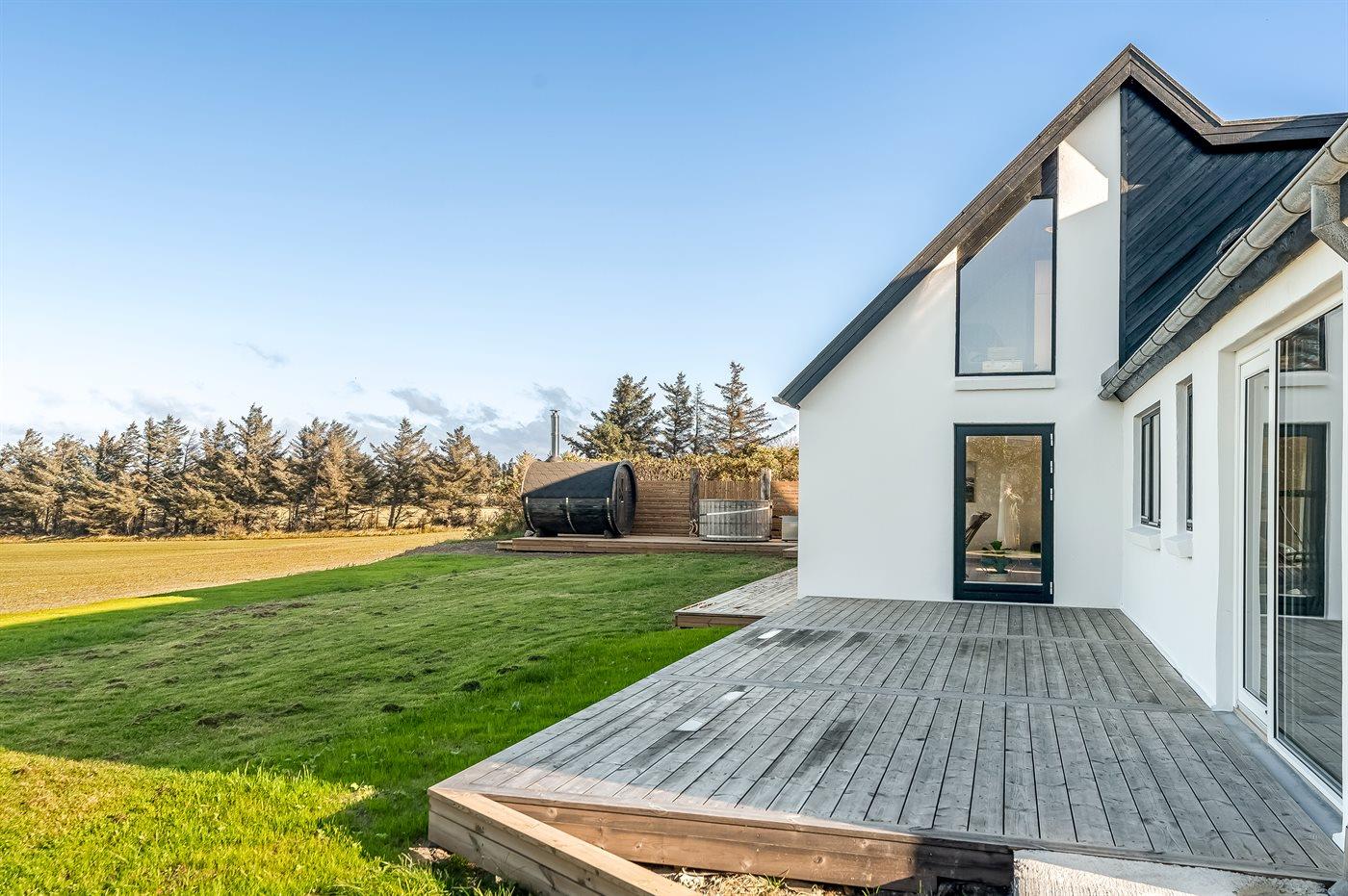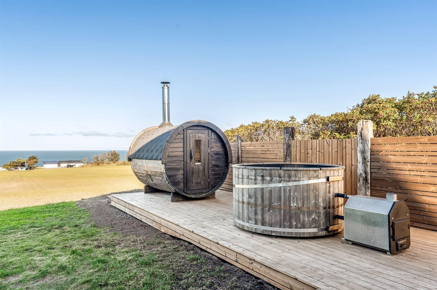 Stort aktivitetshus med vildmarkskar, udendørs sauna og fantastisk udsigt til Vesterhavet i Hanstholm.