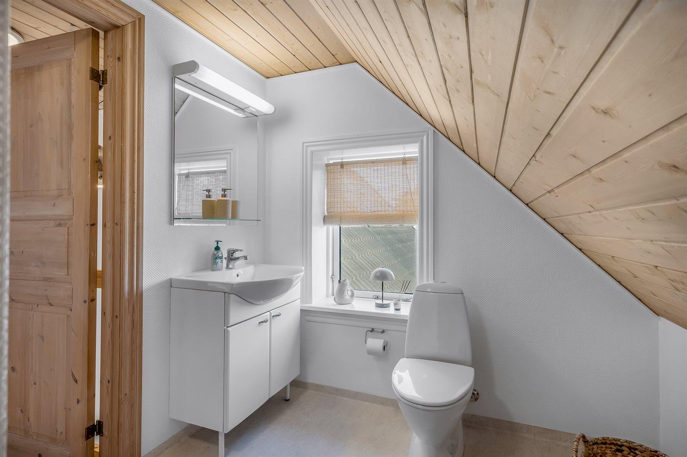 Der er 2 badeværelser med bruseniche og 2 toiletter. Badekar.