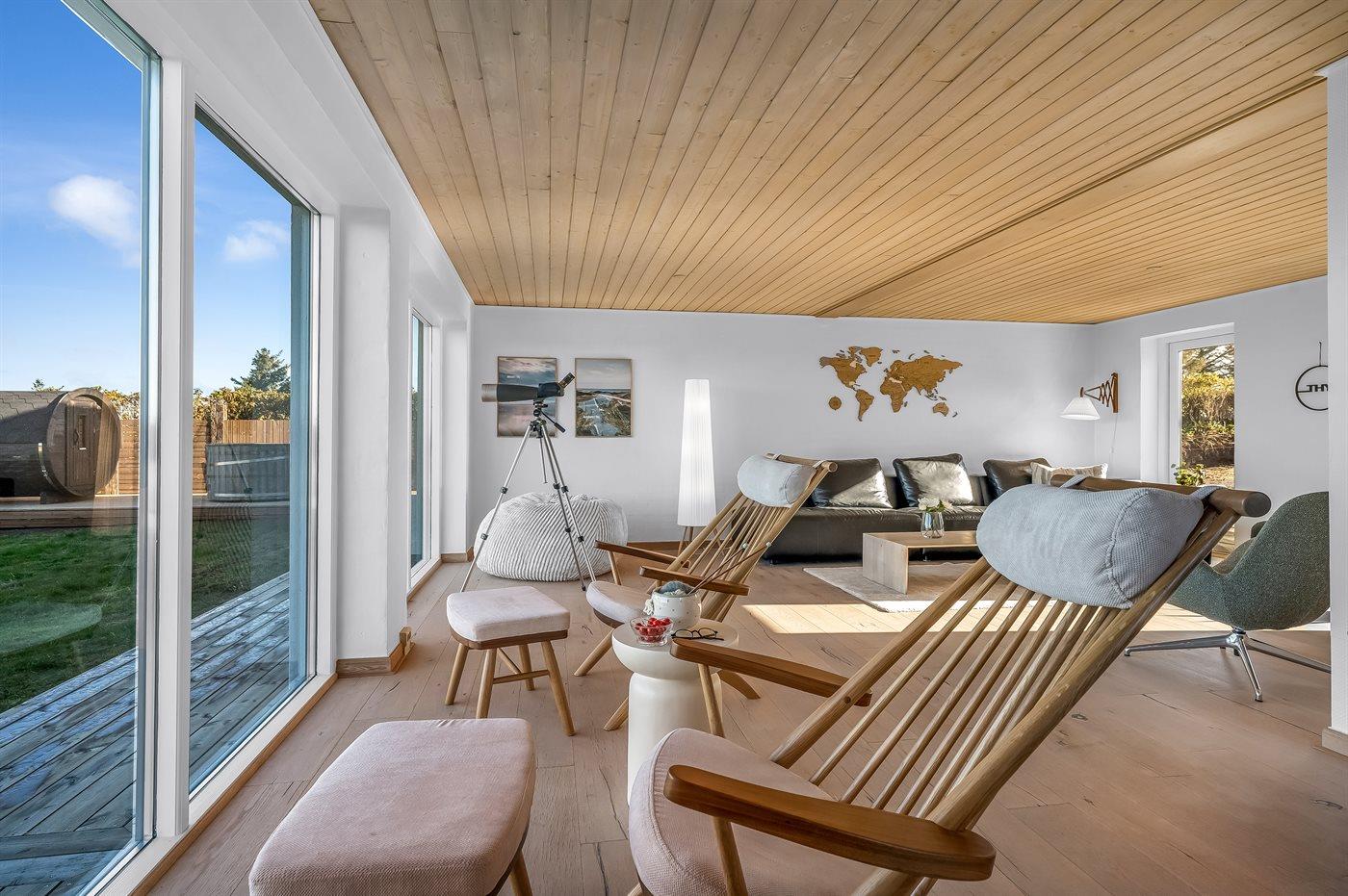 Med den flotteste udsigt til Vesterhavet finder du dette store, skønne aktivitetshus med bl.a. vildmarkskar og udendørs sauna. Huset er gennemrenoveret i 2025.