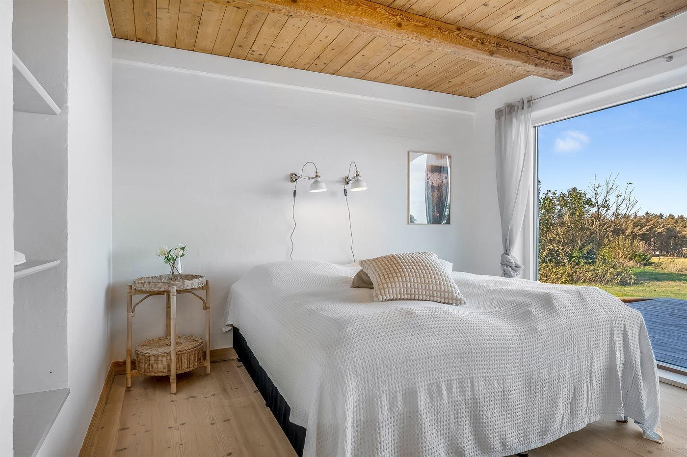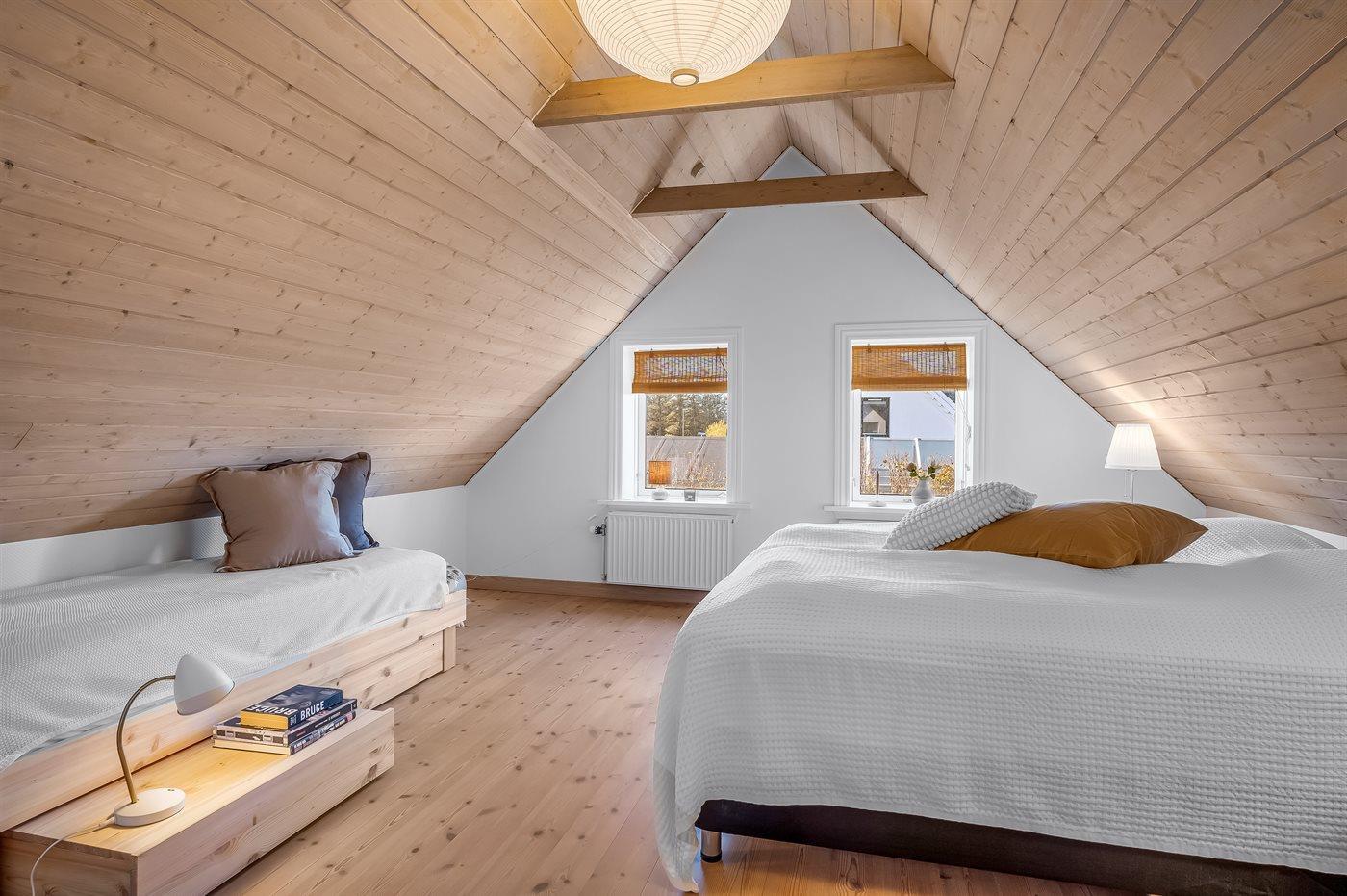 Der er i alt 4 soveværelser. Sovepladserne fordeler sig på: 8 sovepladser i dobbeltsenge. 2 sovepladser i enkeltsenge. Derudover er der 1 stk. barneseng. Der er gulvvarme i 4 af soveværelserne.