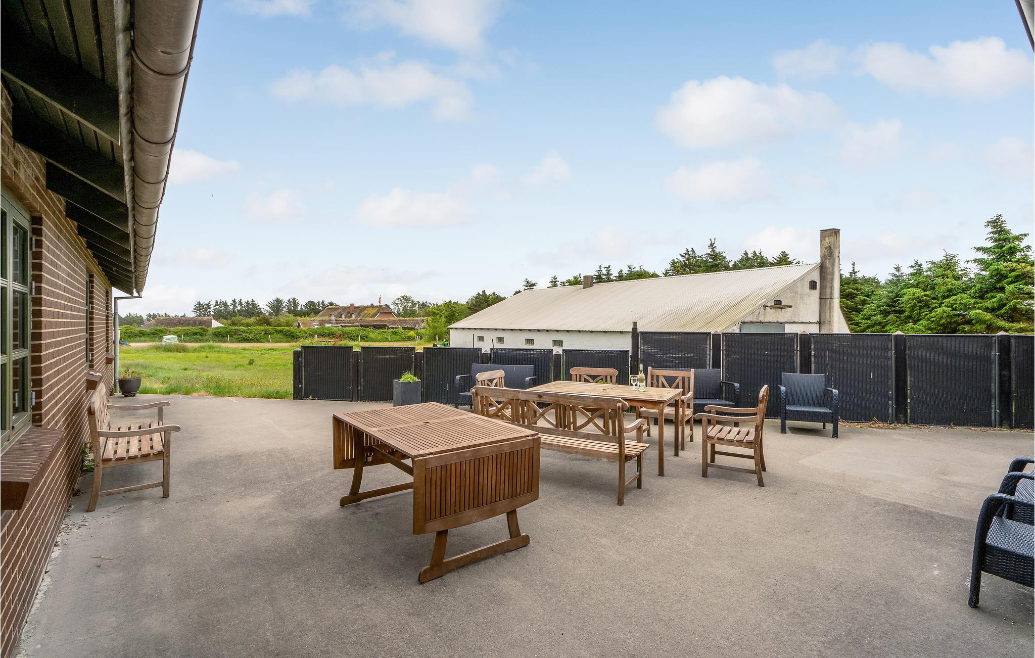 Udendørs finder I en stor terrasse med havemøbler, hvor I let kan nyde morgenkaffen eller et glas vin på de lune sommeraftener.