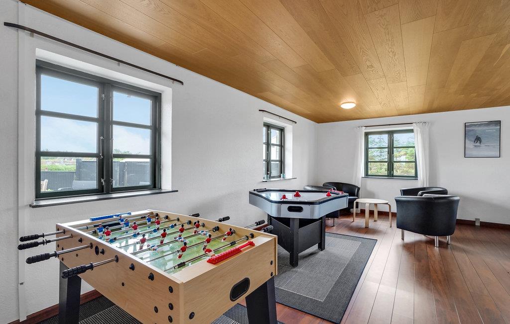 Her er der tjek på underholdningen, huset er nemlig udstyret med blandt andet bordfodbold, bobspil, TV og WiFi. Komforten er i top i dette hus, hvor der er gulvvarme i hele huset, så I roligt kan lade hjemmeskoene blive hjemme.