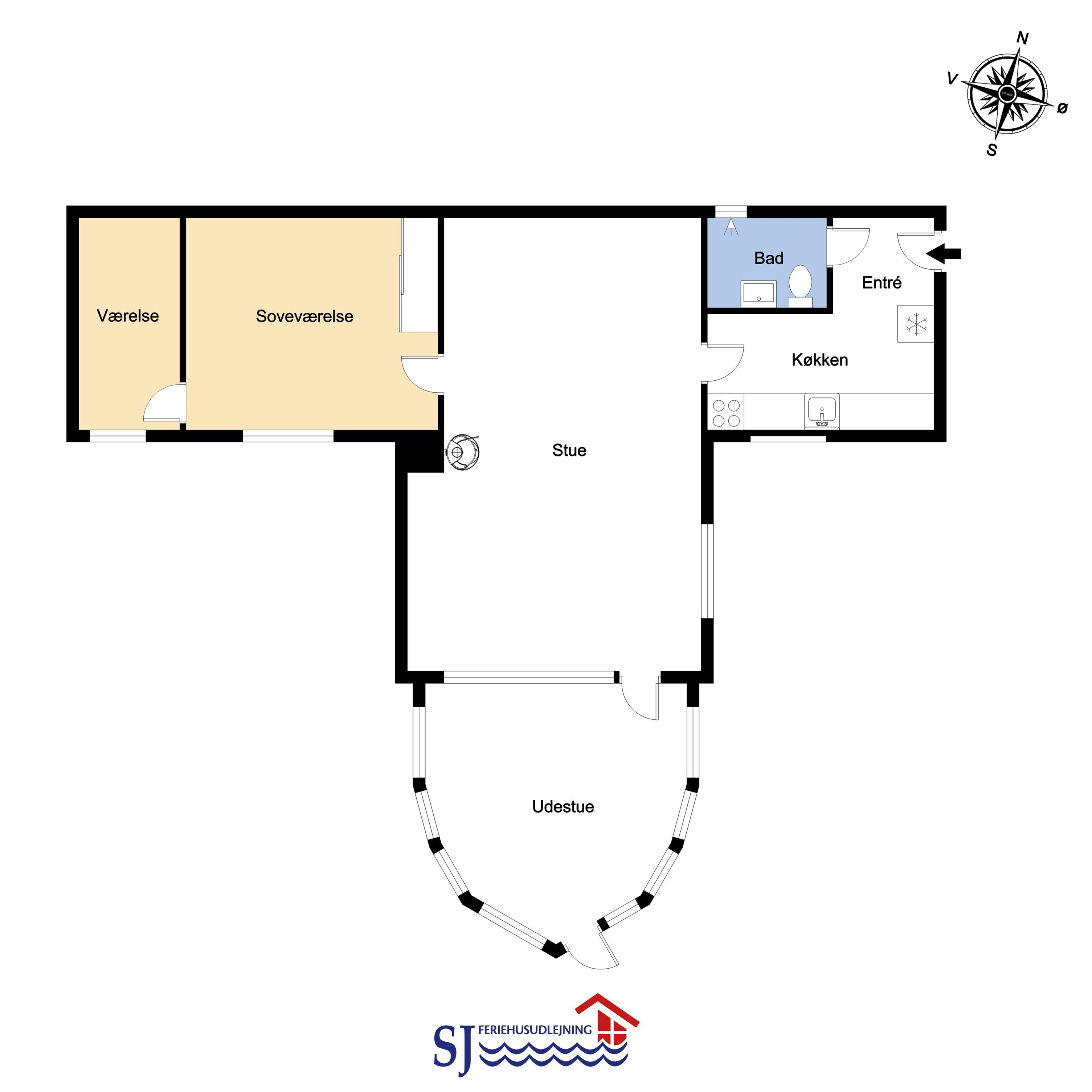 Der er ydermere et viktualierum udenfor hvor der forefindes håndvask. Perfekt til lystfiskeren til opbevaring af grej og rensning af fisk.