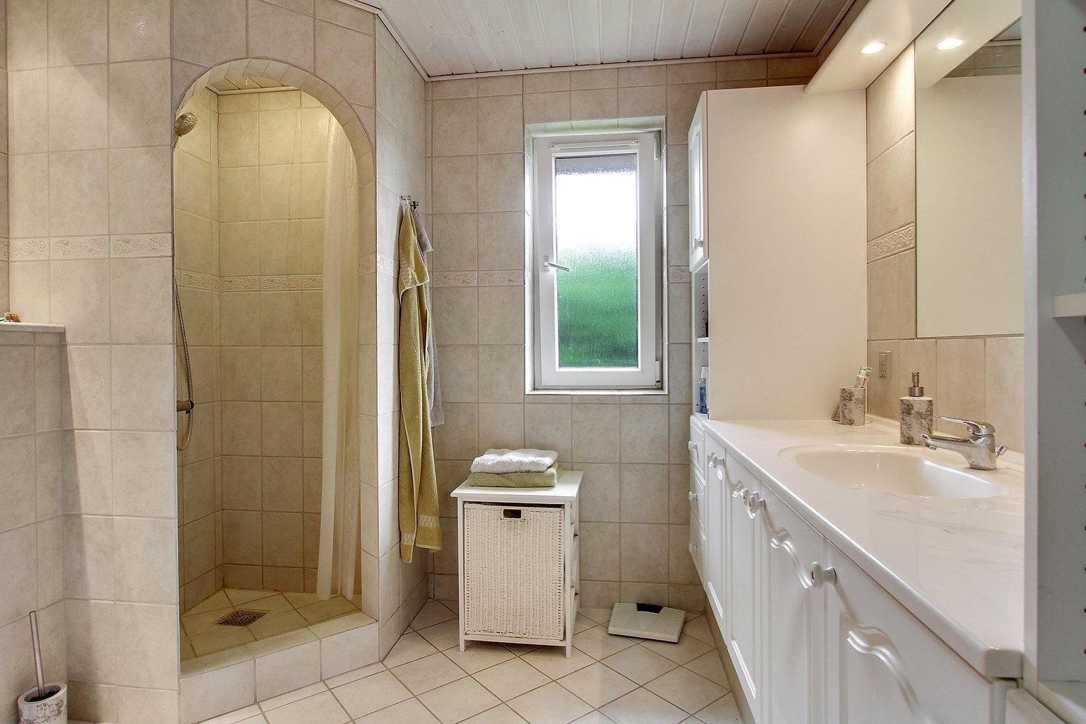 Huset er velegnet til 2 familier. I huset er der indgang via stort bryggers, køkken/alrum, 2 toiletter med bad og 5 soverum. Der er ugenert lukket have og god terrasse.