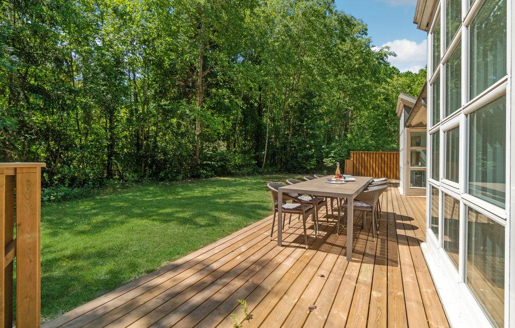 Dejlig stor træterrasse med nydelige havemøbler, og hvor I kan nyde ferien i rolige og afslappende omgivelser. Området er meget børnevenligt, og husene i området ligger parvis. Huset høje komfort og moderne faciliteter gør det velegnet til ferieophold uanset årstid. i