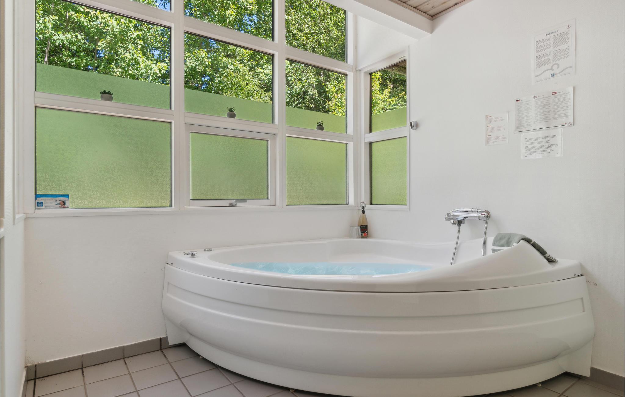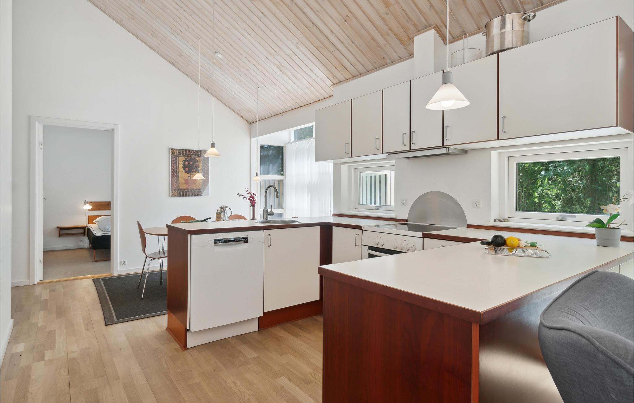 Nydeligt og rummeligt træsommerhus i moderne stil og beliggende i det populære området kaldet Rubinsøen Skovhuse, nær skønne vandre,- løbe- og cykelstier og god sandstrand. Her venter der oplevelser, man sent glemmer. Stuen på 42 m2 er kombineret med det åbne køkkenmiljø, hvor tilberedning af feriens mange måltider bliver en leg. Overalt hersker der en dejlig fri atmosfære, der understreges af den gode og praktiske indretning. Sæt stemningen med jeres yndlingsmusik på Sonos-højtalerne, der tilkobles med bluetooth. De store vinduer giver god mulighed for at nyde den smukke natur. I det store badeværelse venter der et pragtfuldt 2-personers spabad, og der er også mulighed for en svedetur i saunaen. Spabadet er elegant placeret i en karnap med glas på de 3 sider.
