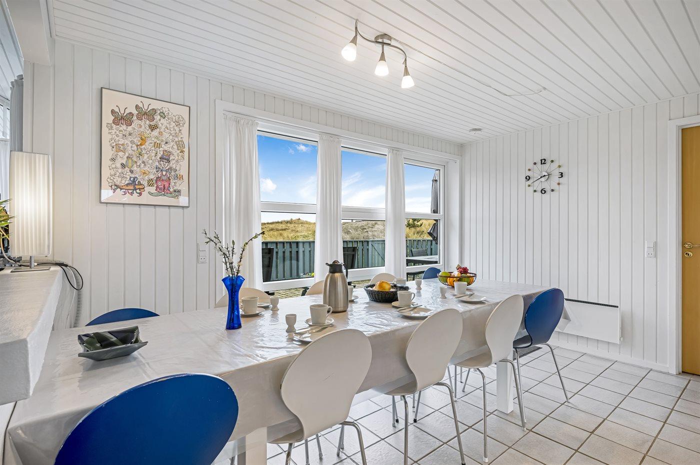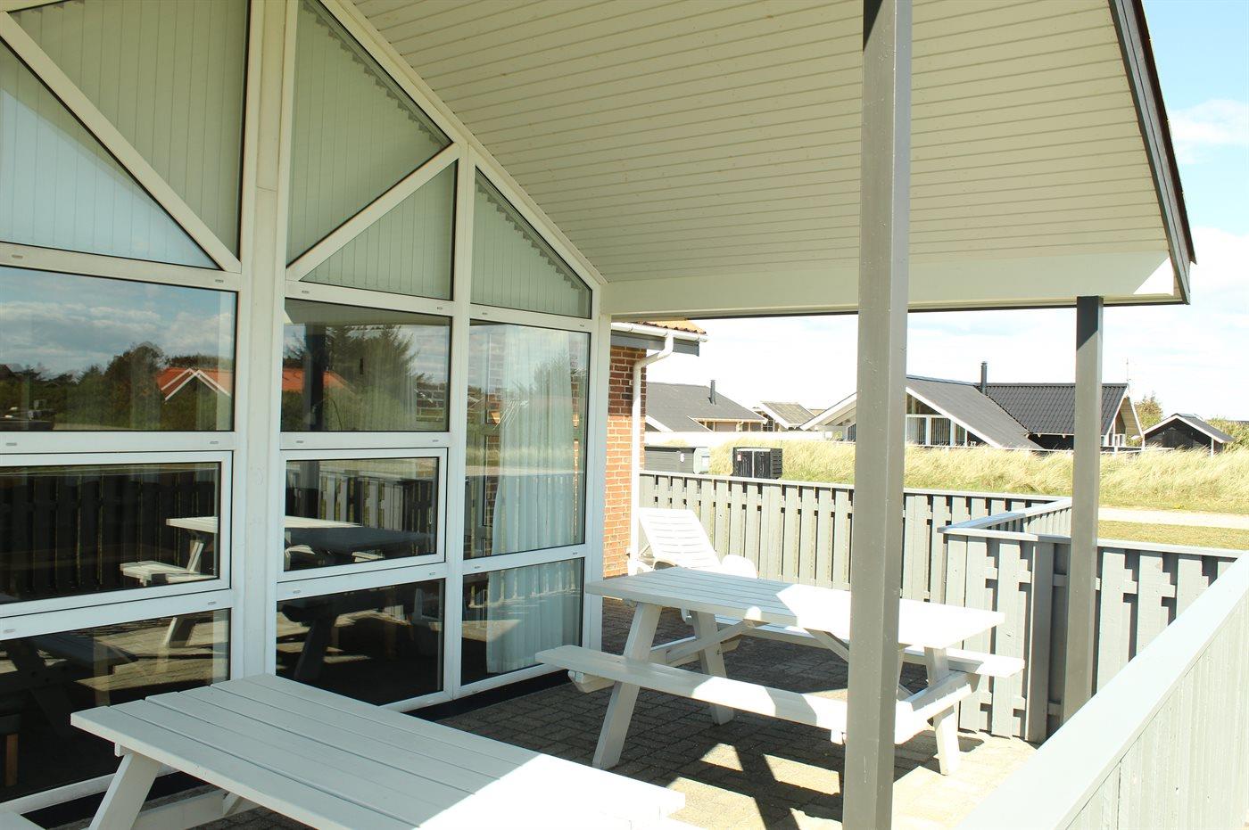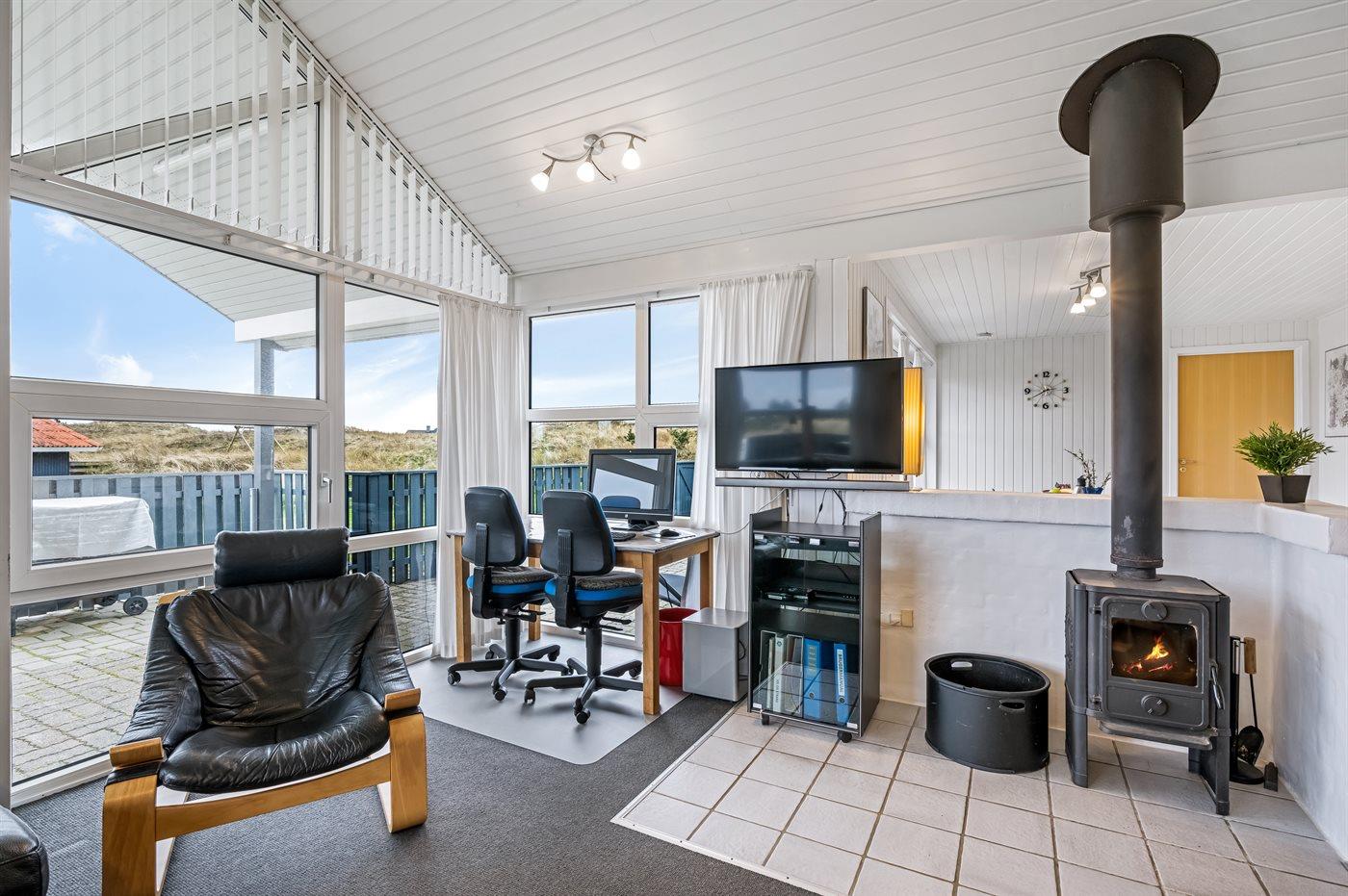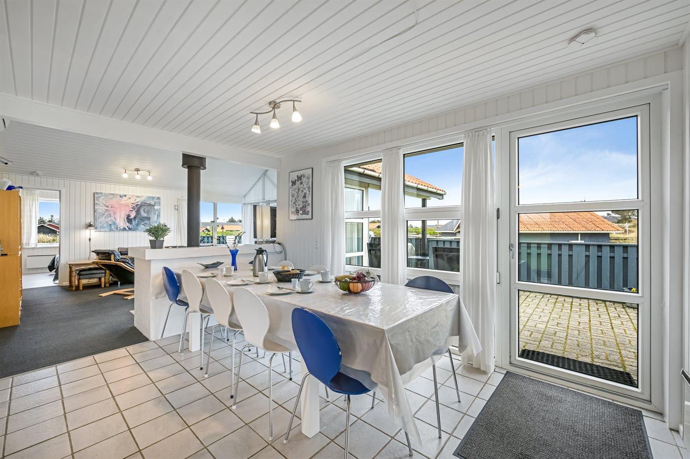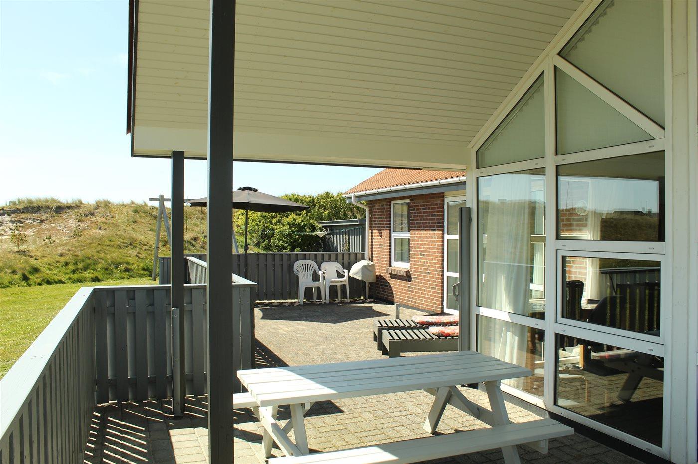 Sommerhus beliggende med udsigt fra grunden over Ringkøbing Fjord og med dejlig lukket terrasse. Huset er meget handicapvenligt med bl.a. køreplader for kørestolsbrugere ved hoveddør samt terrassedør.