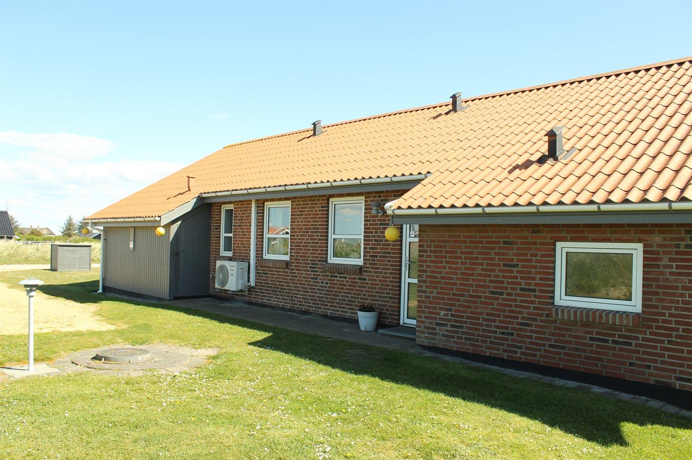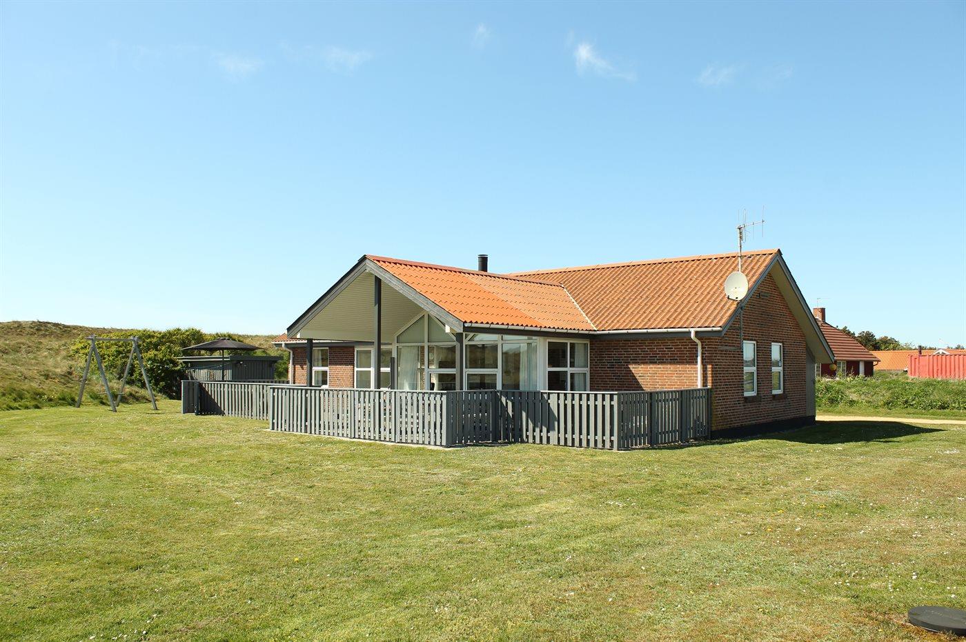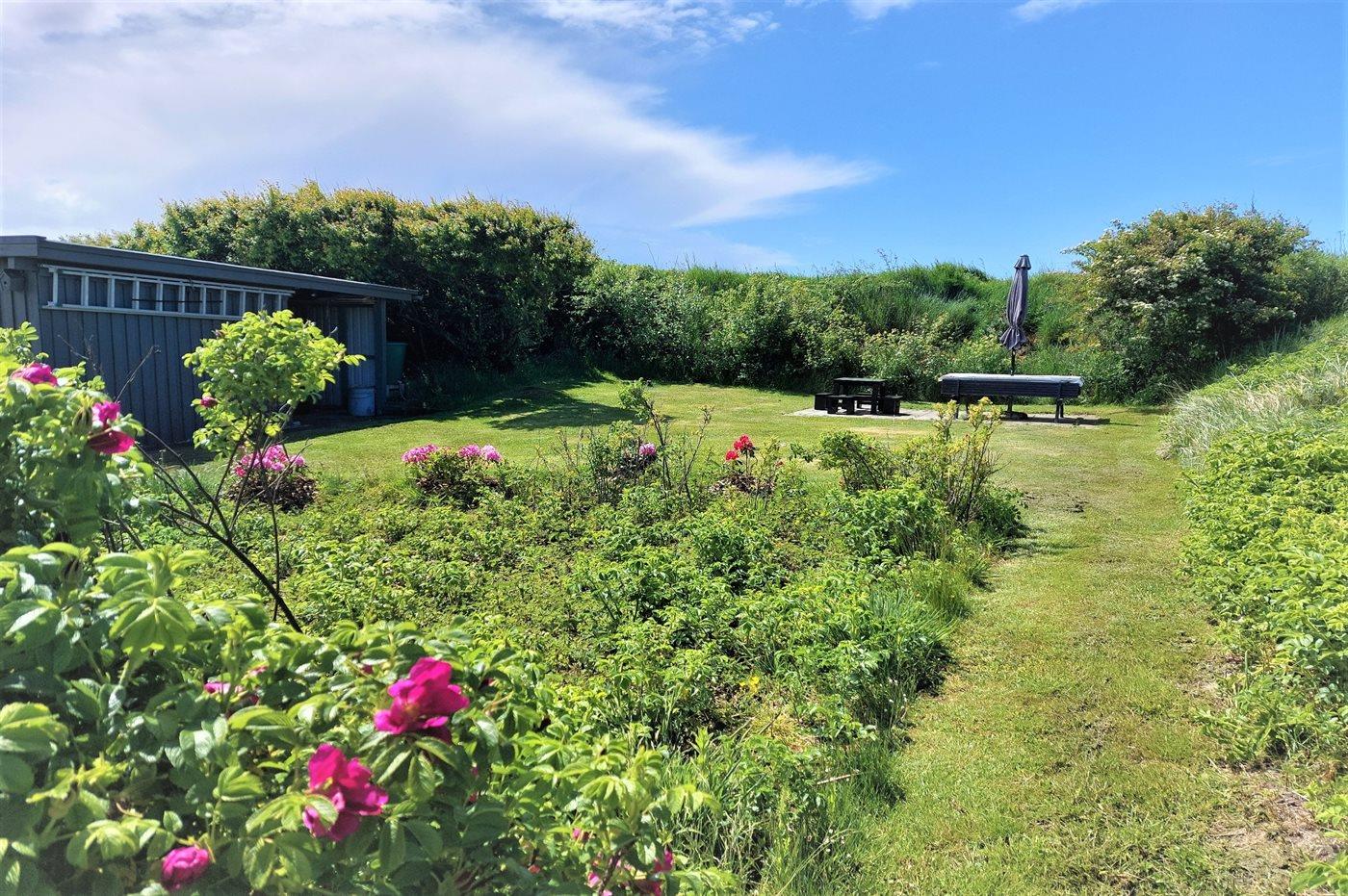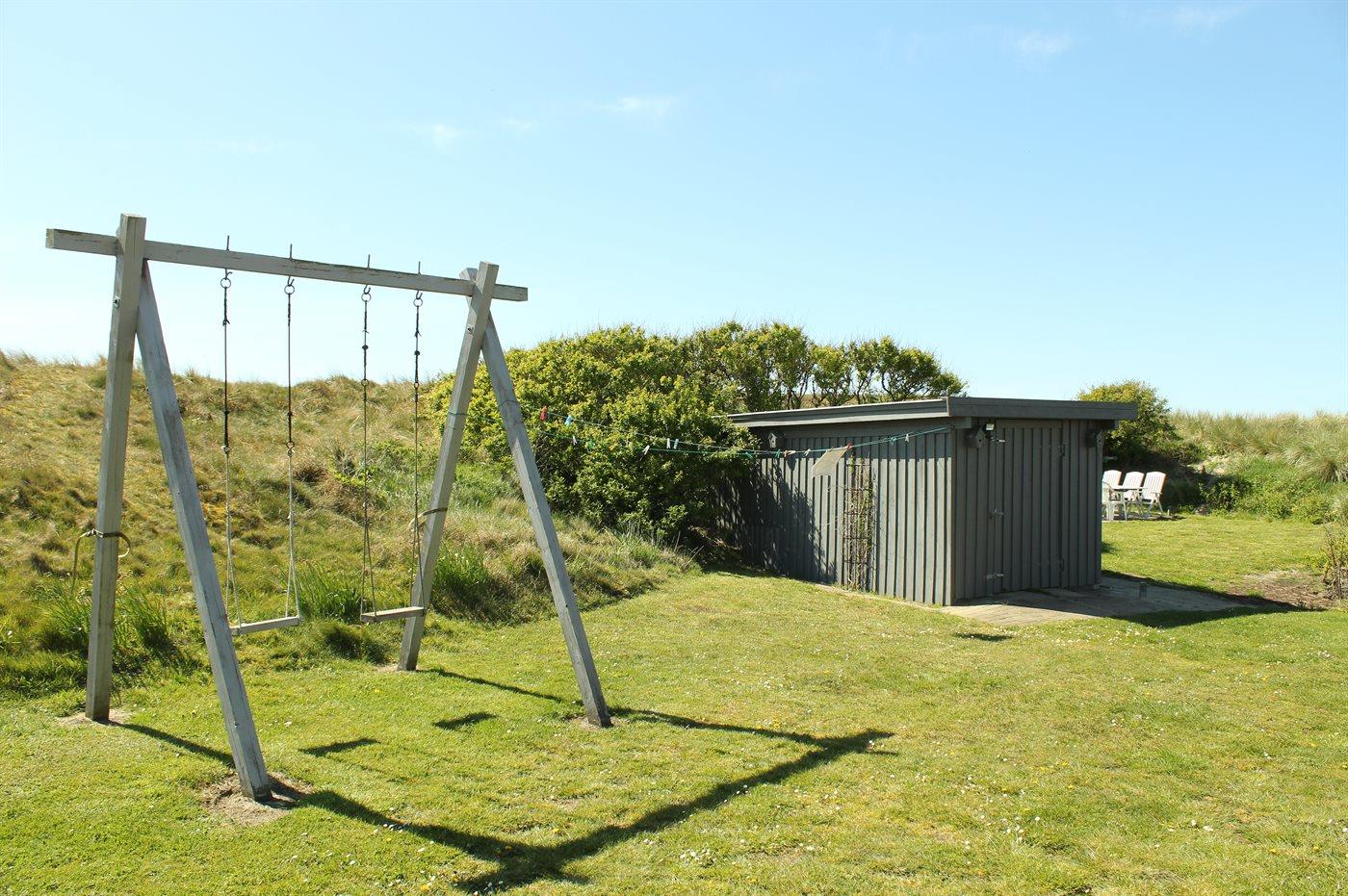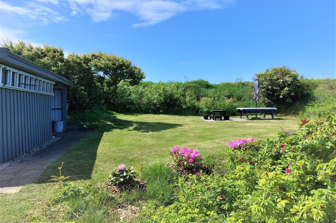 Ferieboligen er beliggende på en 2500 m² stor naturgrund. Der er 930 m til havet. Der er 330 m til fjorden. Nærmeste forretning er beliggende i en afstand af 3000 m. Til ferieboligen hører 32 m² terrasseareal. Desuden er der 18 m² overdækket terrasse. Der er redskabsrum. Gynge. Sandkasse. Der er installeret stik til opladning af elbil. Med 11 kW ladeeffekt. Parkering ved ferieboligen.