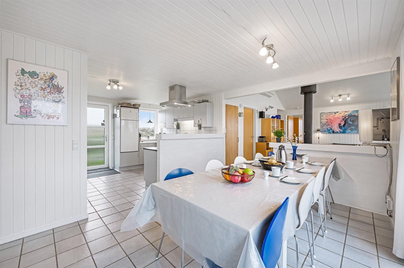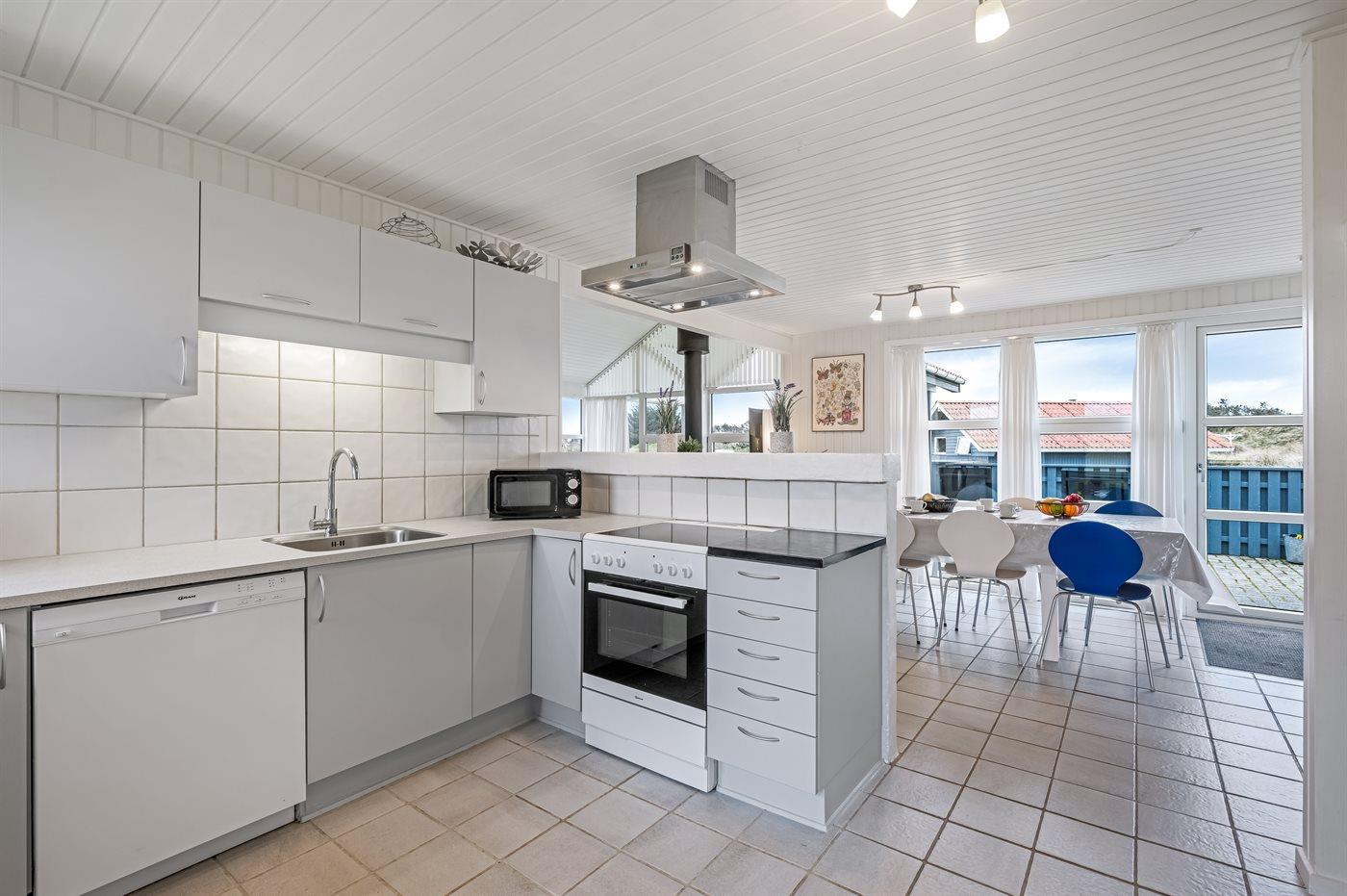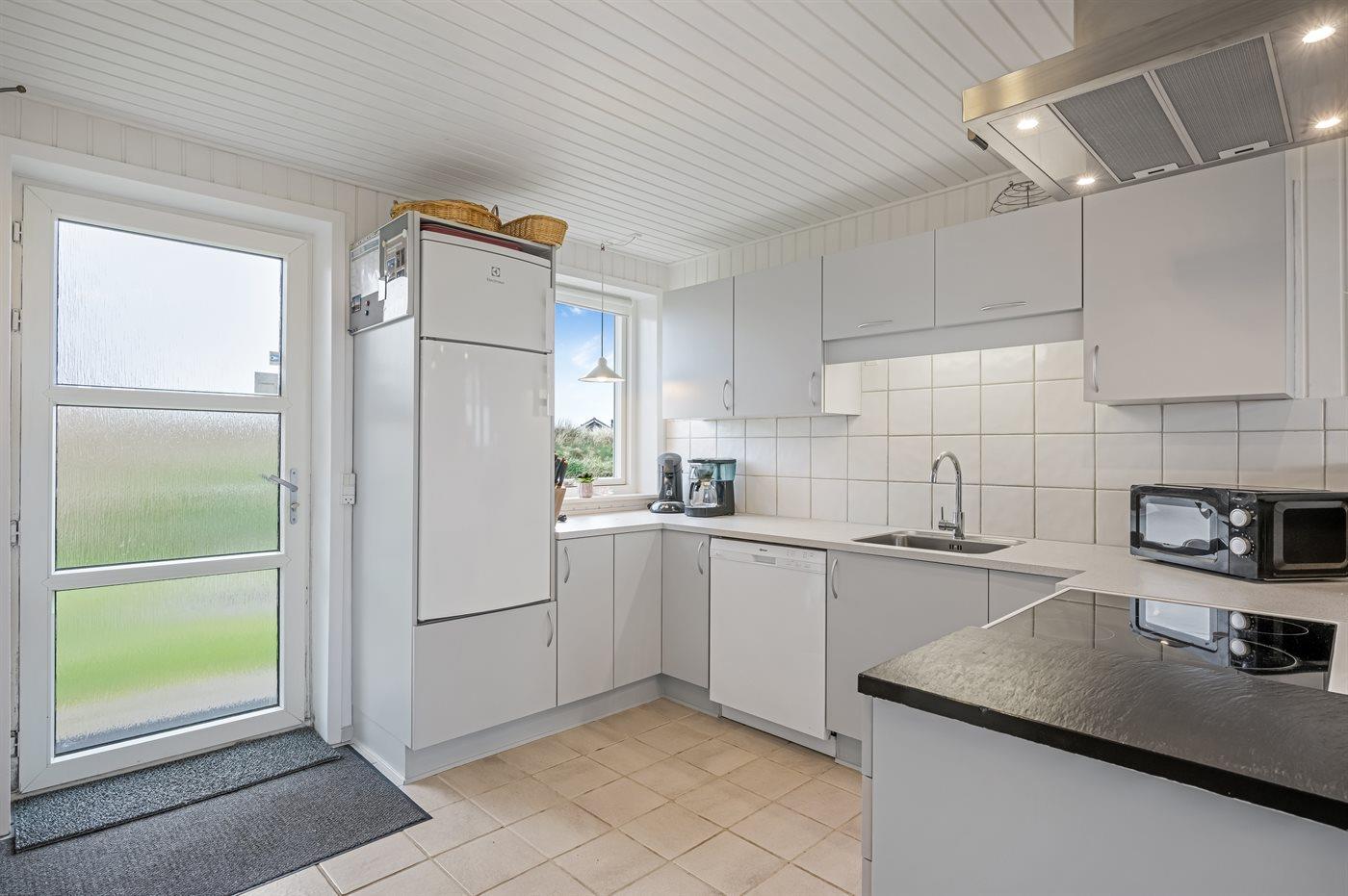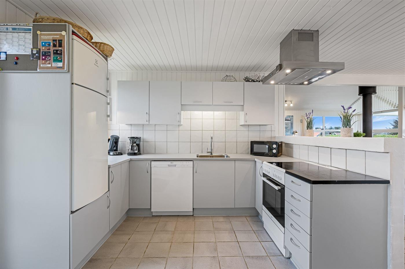 Køkkenet er udstyret med 1 køleskab. Der er 4 keramiske kogeplader, varmluftovn, mikrobølgeovn samt opvaskemaskine.