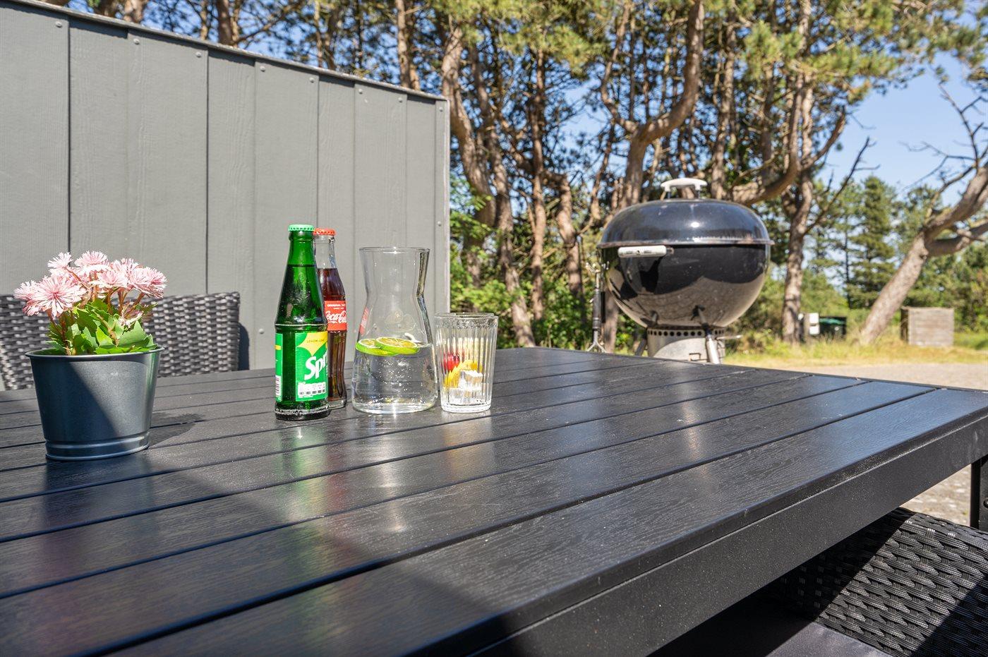 Ferieboligen er beliggende på en 737 m² stor naturgrund. Der er 2000 m til havet. Der er 100 m til Vadehavet. Nærmeste forretning er beliggende i en afstand af 250 m. Der er en golfbane i en afstand af 500 m. Til ferieboligen hører 40 m² terrasseareal. Desuden er der 20 m² overdækket terrasse. Gynge. Parkering ved ferieboligen.