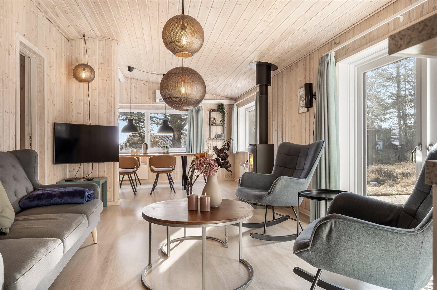 Sommerhuset egner sig til 5 personer samt 1 barn op til 3 år. Ferieboligen er på 107 m² og er bygget i 1952. I 2011 gennemgik ferieboligen en delvis renovering. Det er tilladt at medbringe 1 husdyr. Ferieboligen er udstyret med 1 energibesparende luft til luft varmepumpe. Ferieboligen har vaskemaskine. Tørretumbler. Frysekapacitet på 84 liter. Der er desuden brændeovn. Til de små er der 1 stk. barnestol.