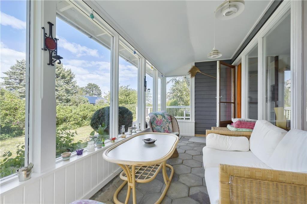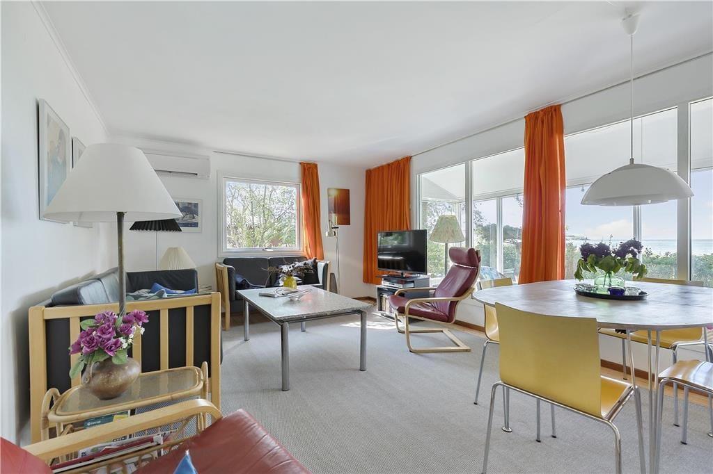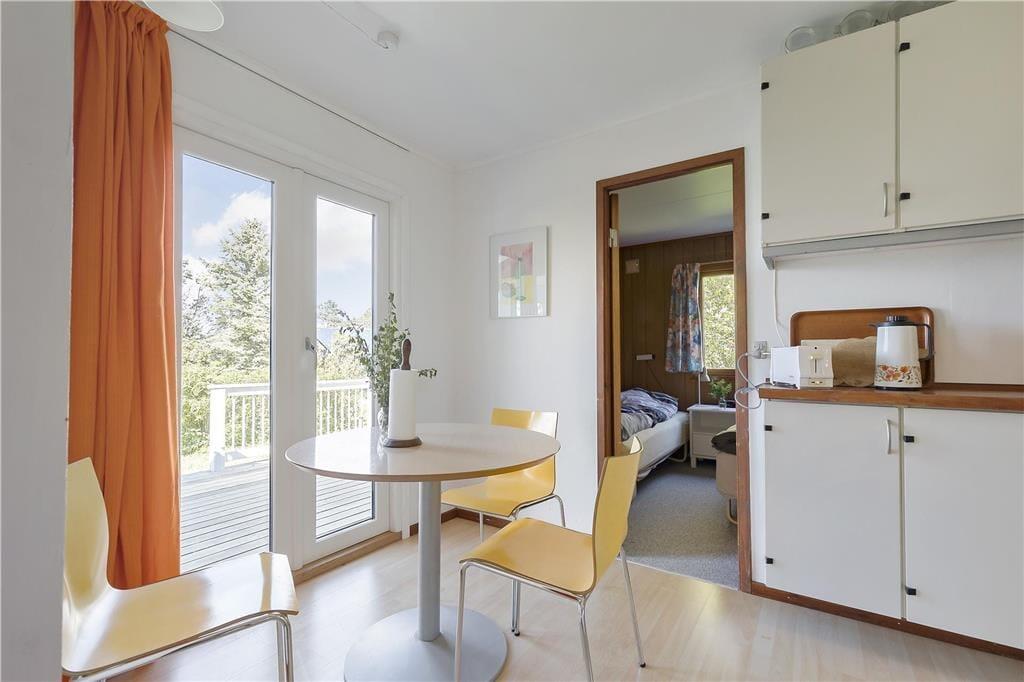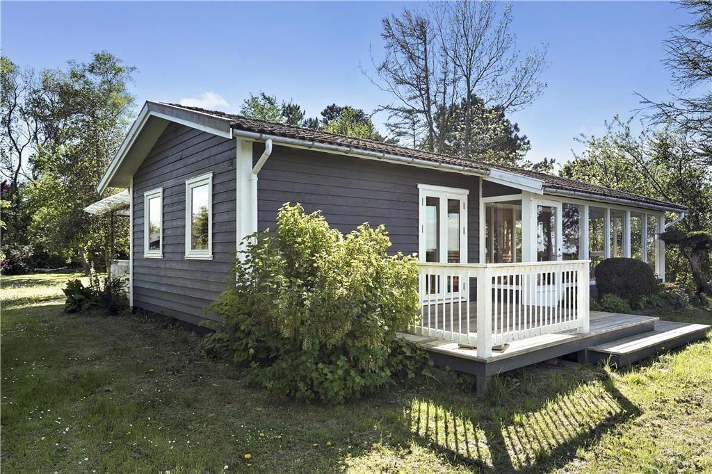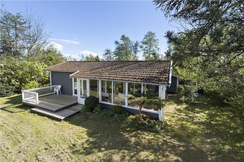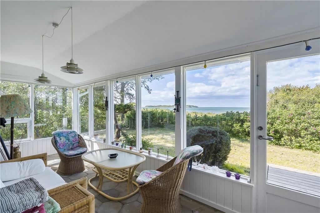 Feriehuset indeholder opholdsstue i forbindelse med køkken, 3 soveværelser, badeværelse, entre, glasinddækket udestue og overdækket terrasse. I køkkenet er der spisekrog,keramiskkomfur, mikroovn, opvaskemaskine og køleskab med fryser. I opholdsstuen, hvorfra der er udgang til em 12 m2 udestue med godt lysindfald fra vinduespartierne, er der spiseplads og et sofahjørne. tv med Chromecast. I udestuen er der en hyggelig sofagruppe og en fantastisk havudsigt. Badeværelset er enkelt med håndvask, bruseniche og flisegulv. Der er tre soveværelser, et med dobbeltseng, et med 2 enkeltsenge og et med en dobbeltsovesofa. Huset opvarmes med varmepumpe og elvarme.