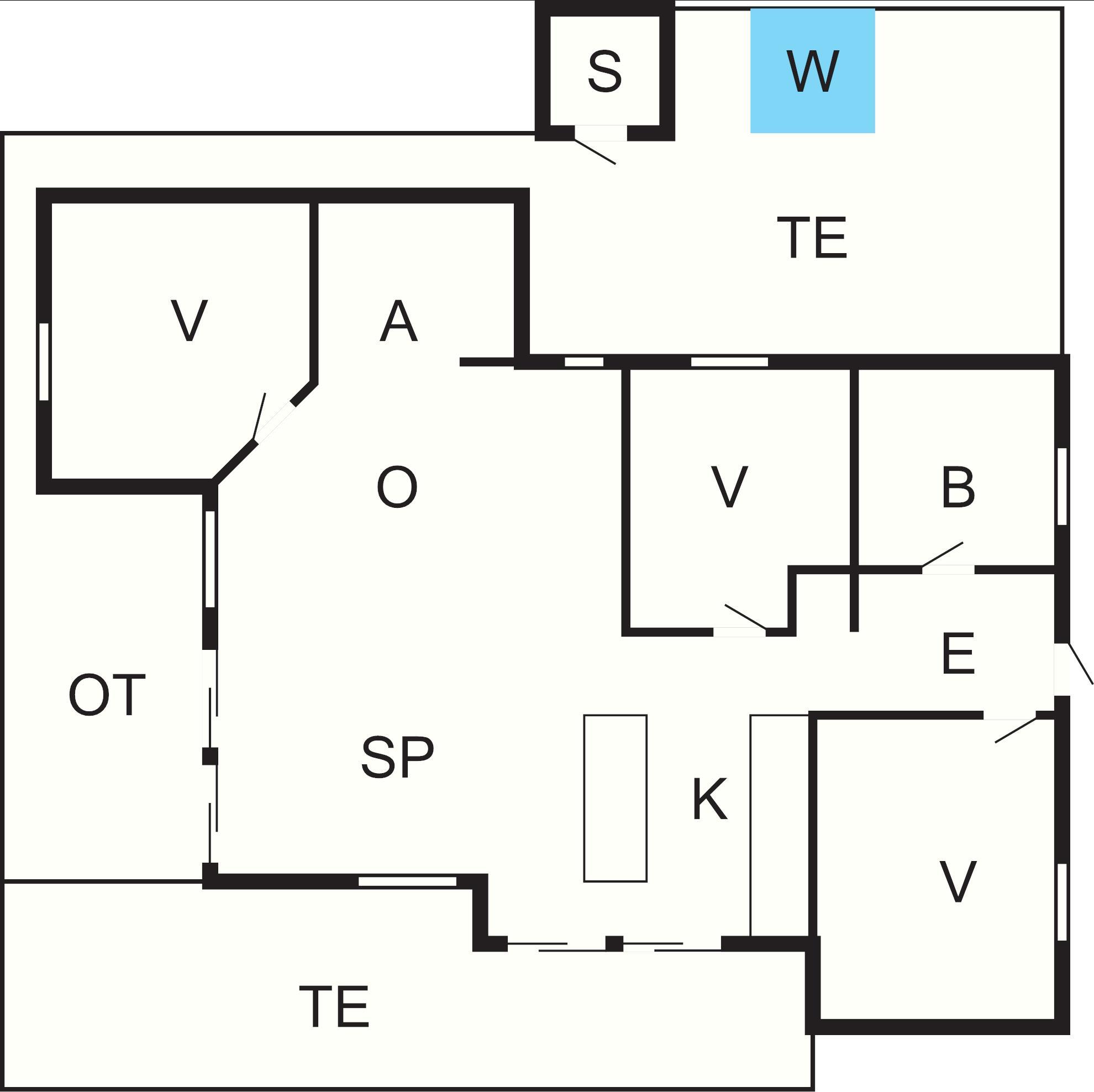 Åbent og veludstyret køkken i forbindelse med spisepladsen. Stue med alkove og adgang til soveværelse med dobbeltseng. I stuen er der et tv, der kan bruges til at streame dine egne tv-udbydere via husets internetforbindelse. De store vinduespartier og skydedøre giver masser af lys ind i stuen. Foran er der en 13 m² overdækket terrasse med liggestole. Fra køkkenet er der desuden udgang til den åbne terrasse med havemøbler, liggestole og gasgrill. Ugeneret af naboerne kan du nyde det udendørs saunaområde i ro og mag, mens børnene hygger sig på havetrampolinen (brug på eget ansvar).