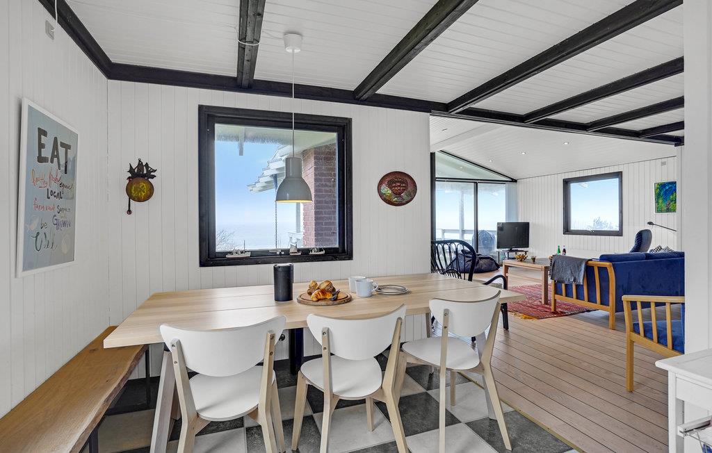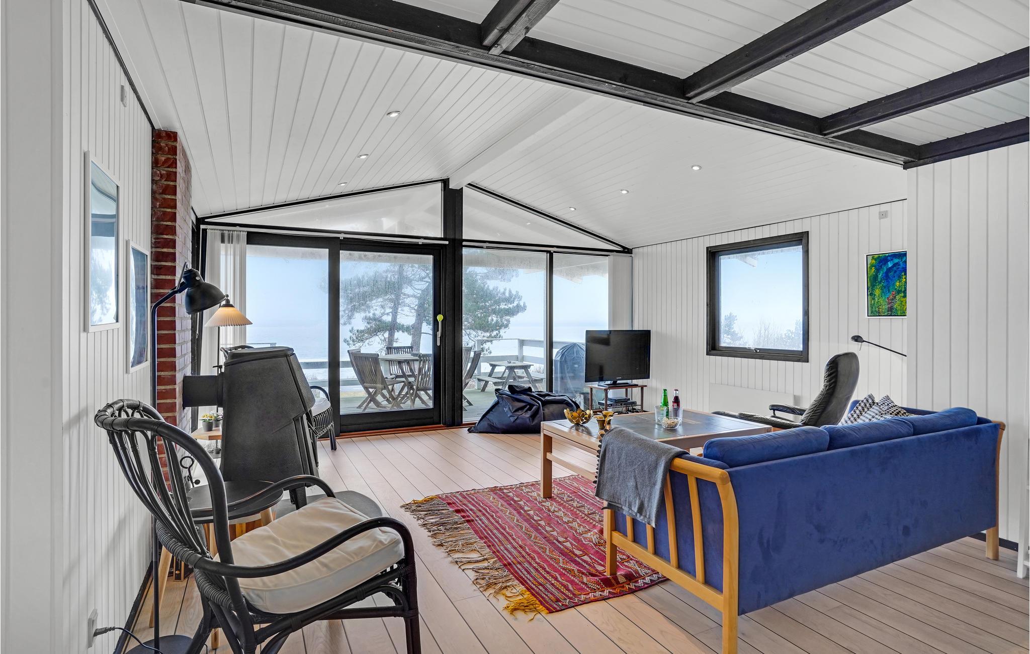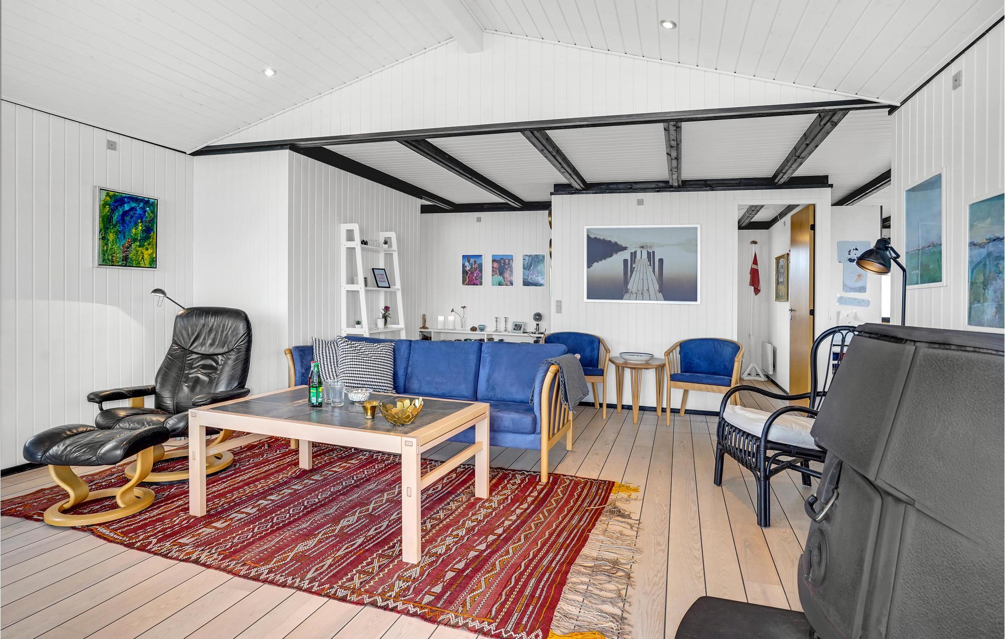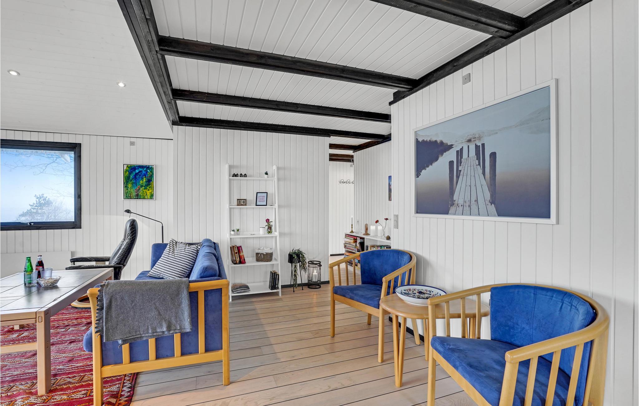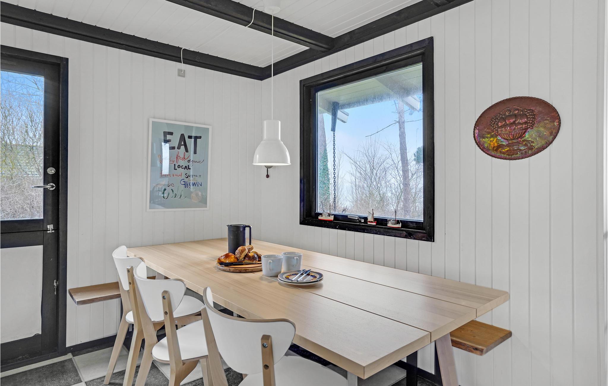Glæd jer til dette skønne sommerhus, som har en behagelig atmosfære med åbne, lyse rum med flotte, opmalede bjælkelofter og skakternede fliser i køkkenet. Huset emmer af feriestemning, så her kommer I hurtigt til at sænke skuldrene og føle jer hjemme. Sæt jer til rette i skyggen eller solen på terrassen, mens I nyder dagens måltider, find en god bog frem eller tænd op i grillen, mens børnene leger i haven. I aftentimerne kan I bage snobrød over åben ild.