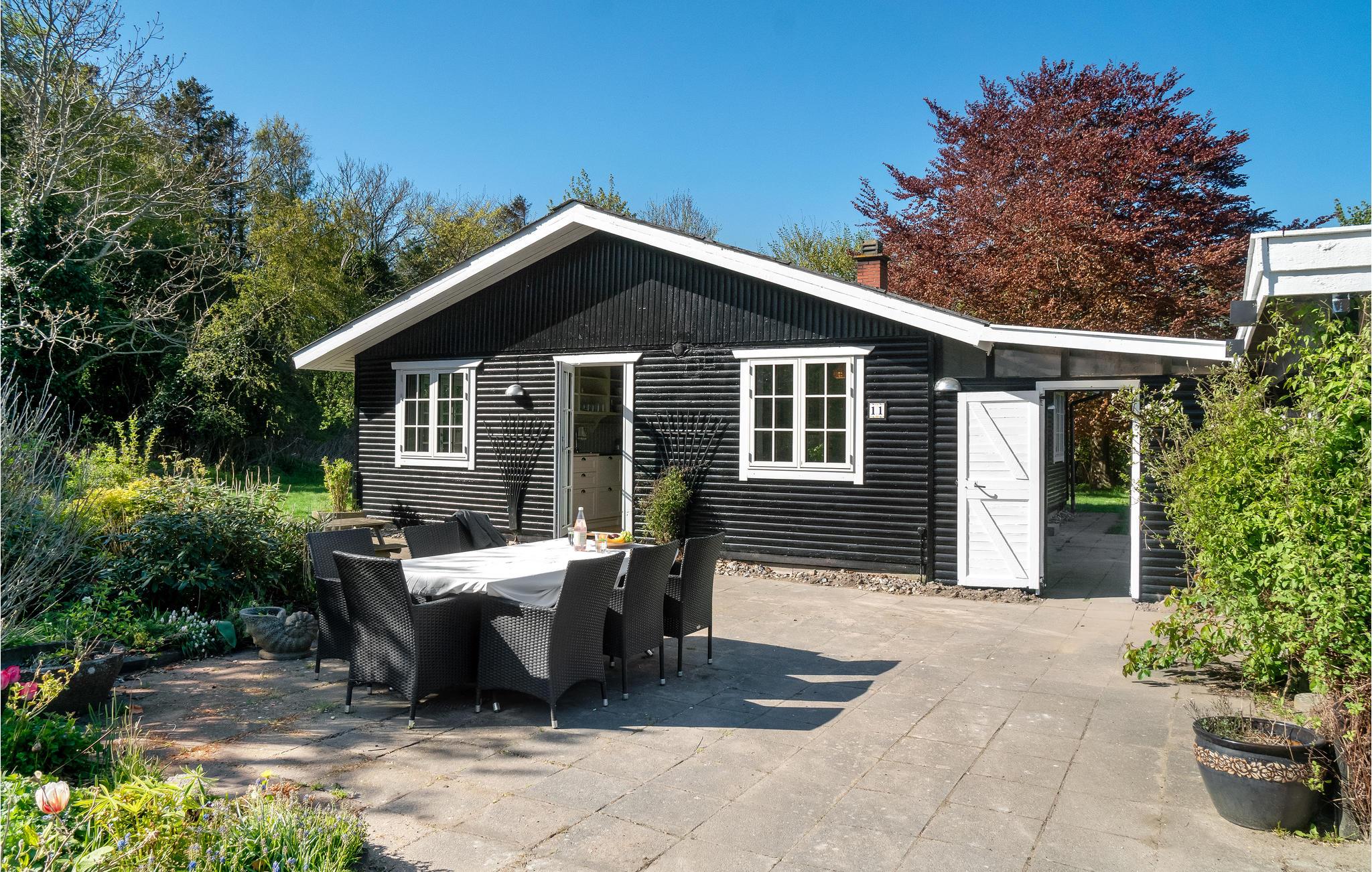 Hyggeligt og eksklusivt feriehus nær Havnsø strand med stor have, bålplads og shelter til afslapning.